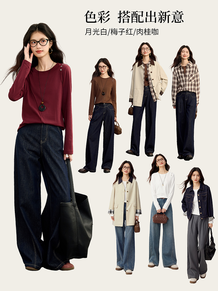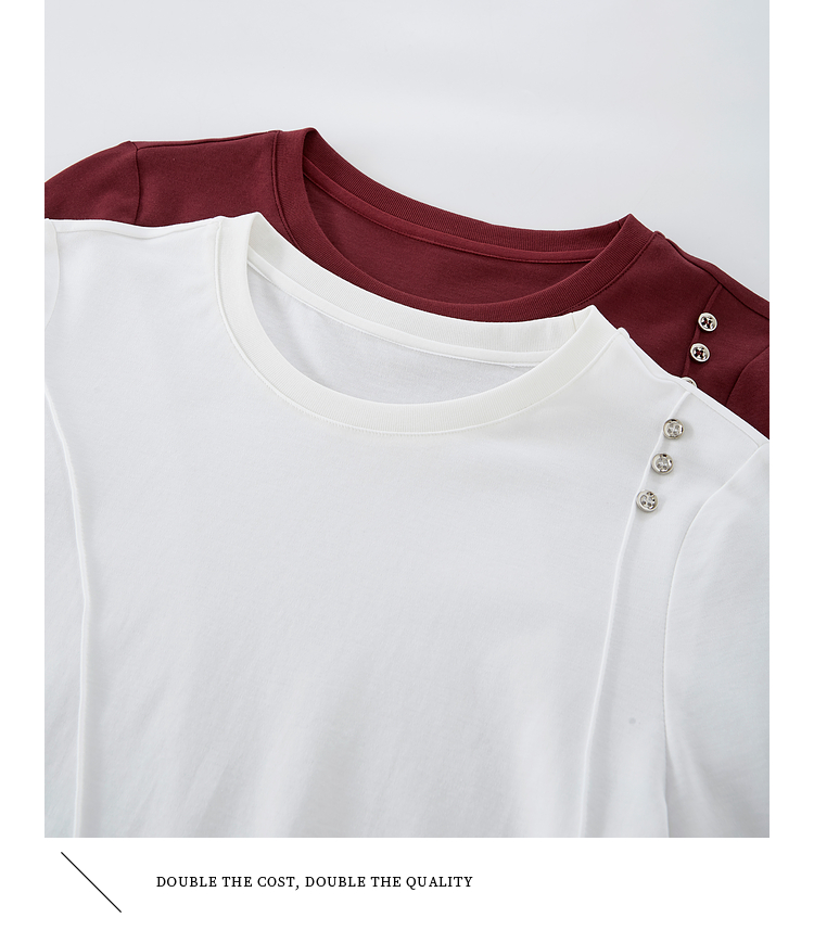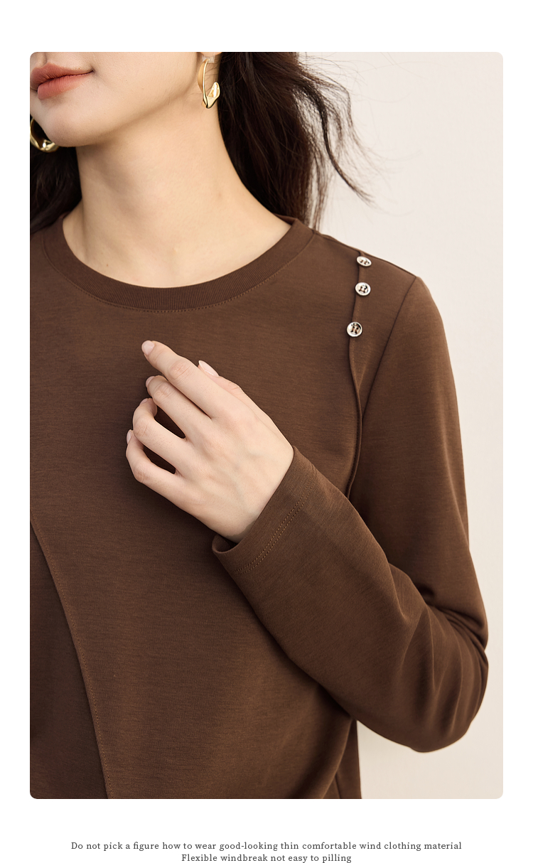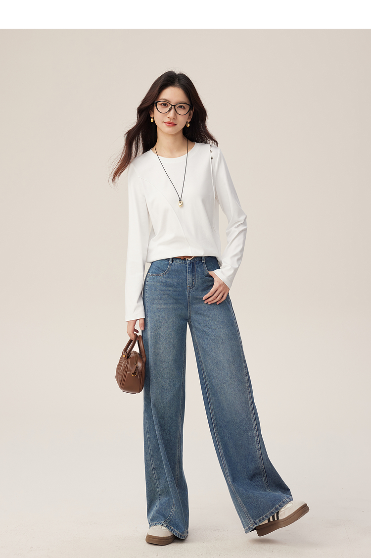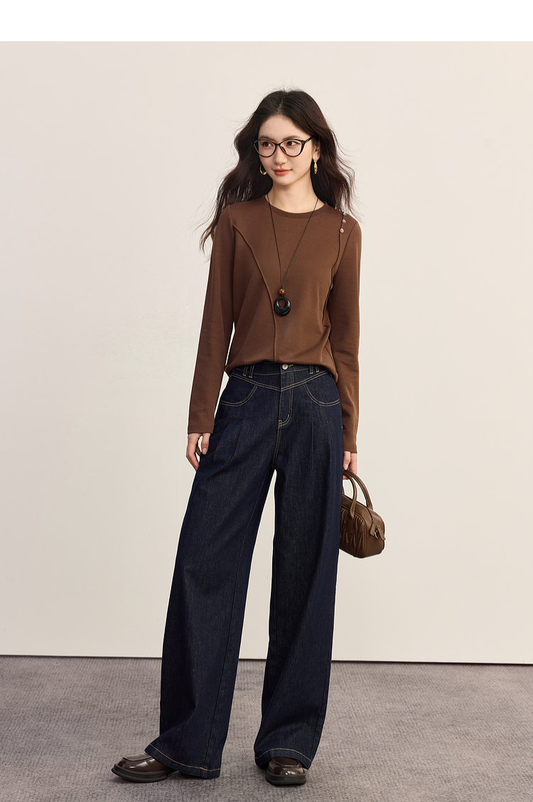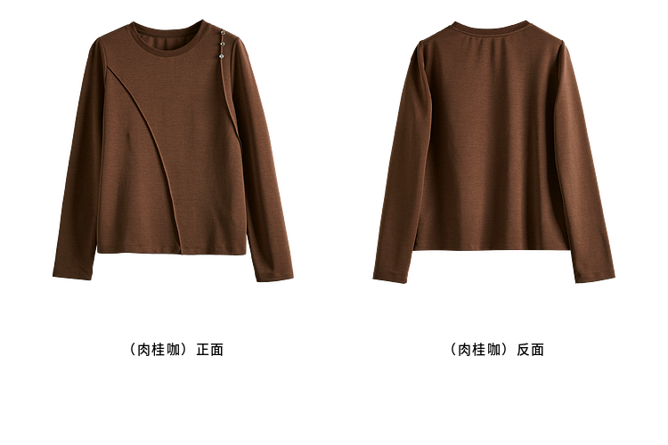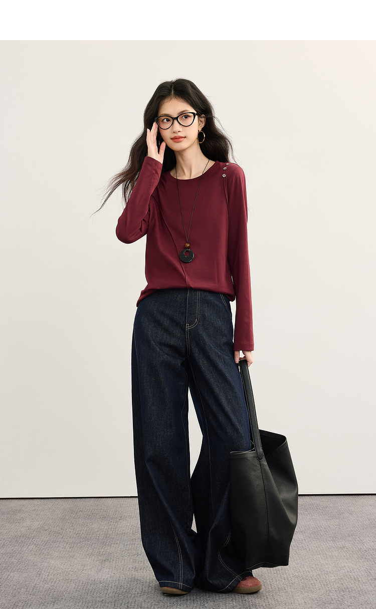 【08/27新品】熙世界全棉正肩长袖T恤上衣女2025年秋季新款通勤内搭圆领打底衫