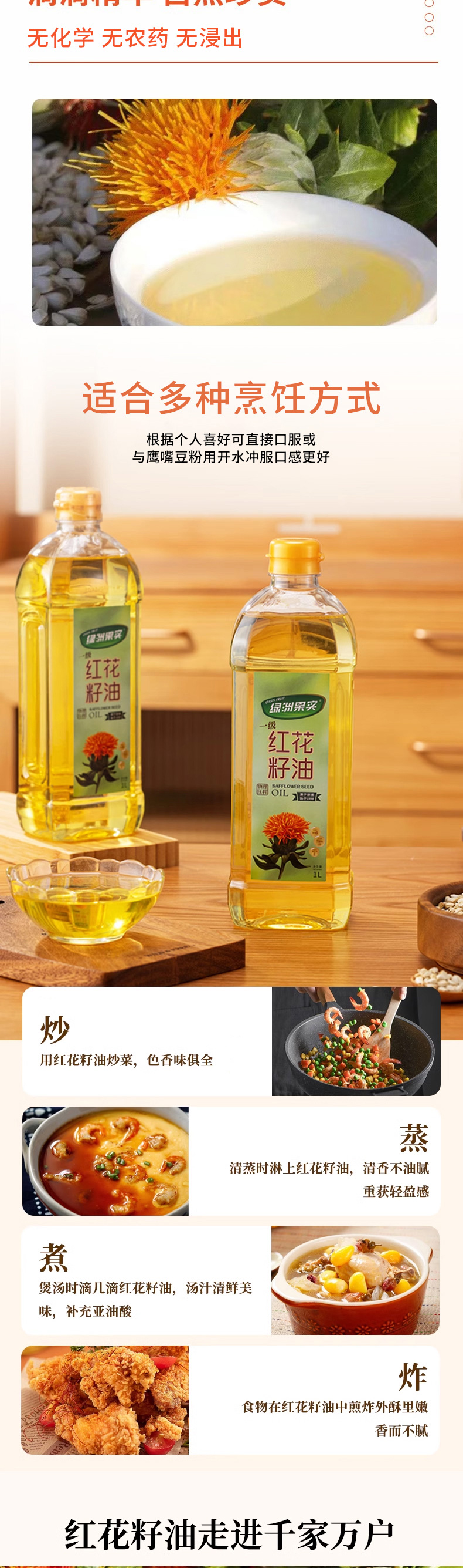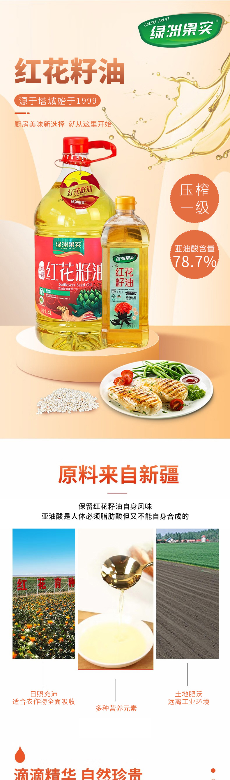 绿洲果实一级红花籽油 I 压榨一级红花籽油1L-4L