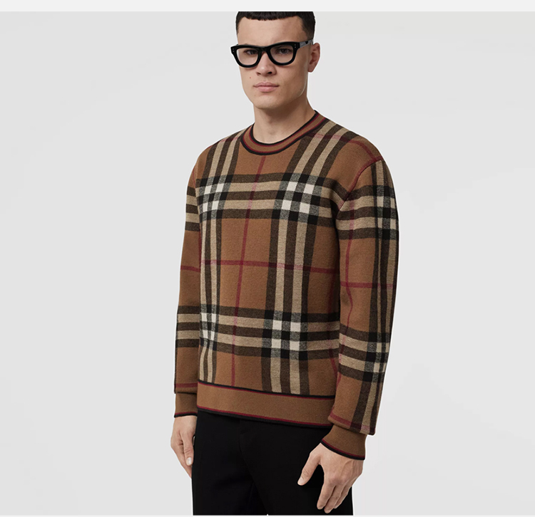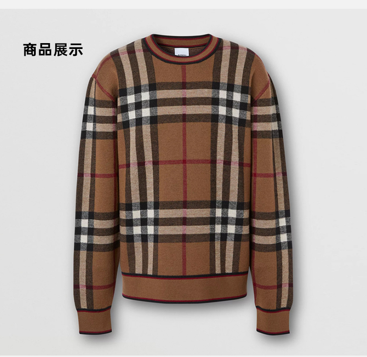 BURBERRY 巴宝莉 男士格纹羊毛提花圆领长袖针织衫 格子 8036603 A7028