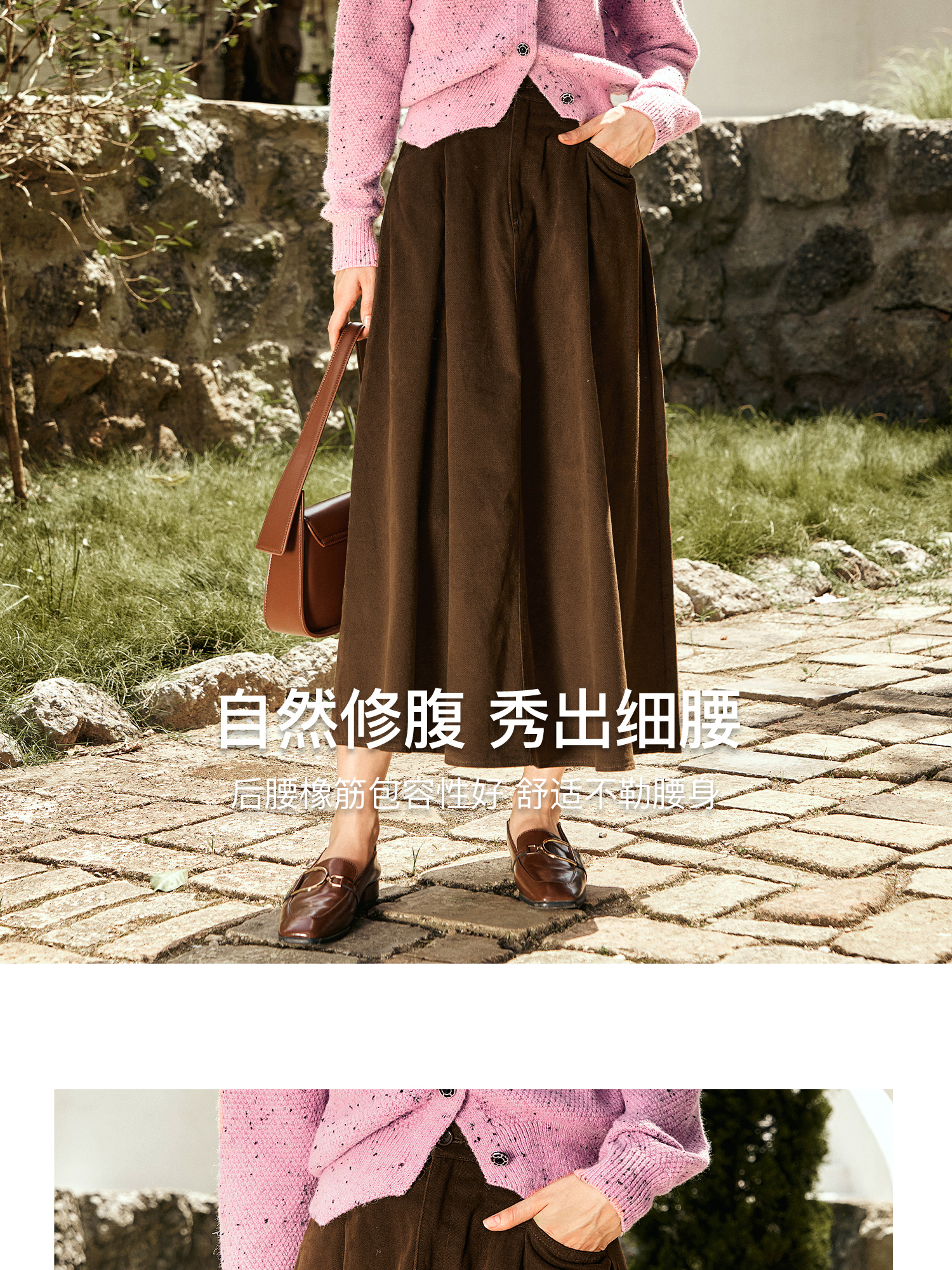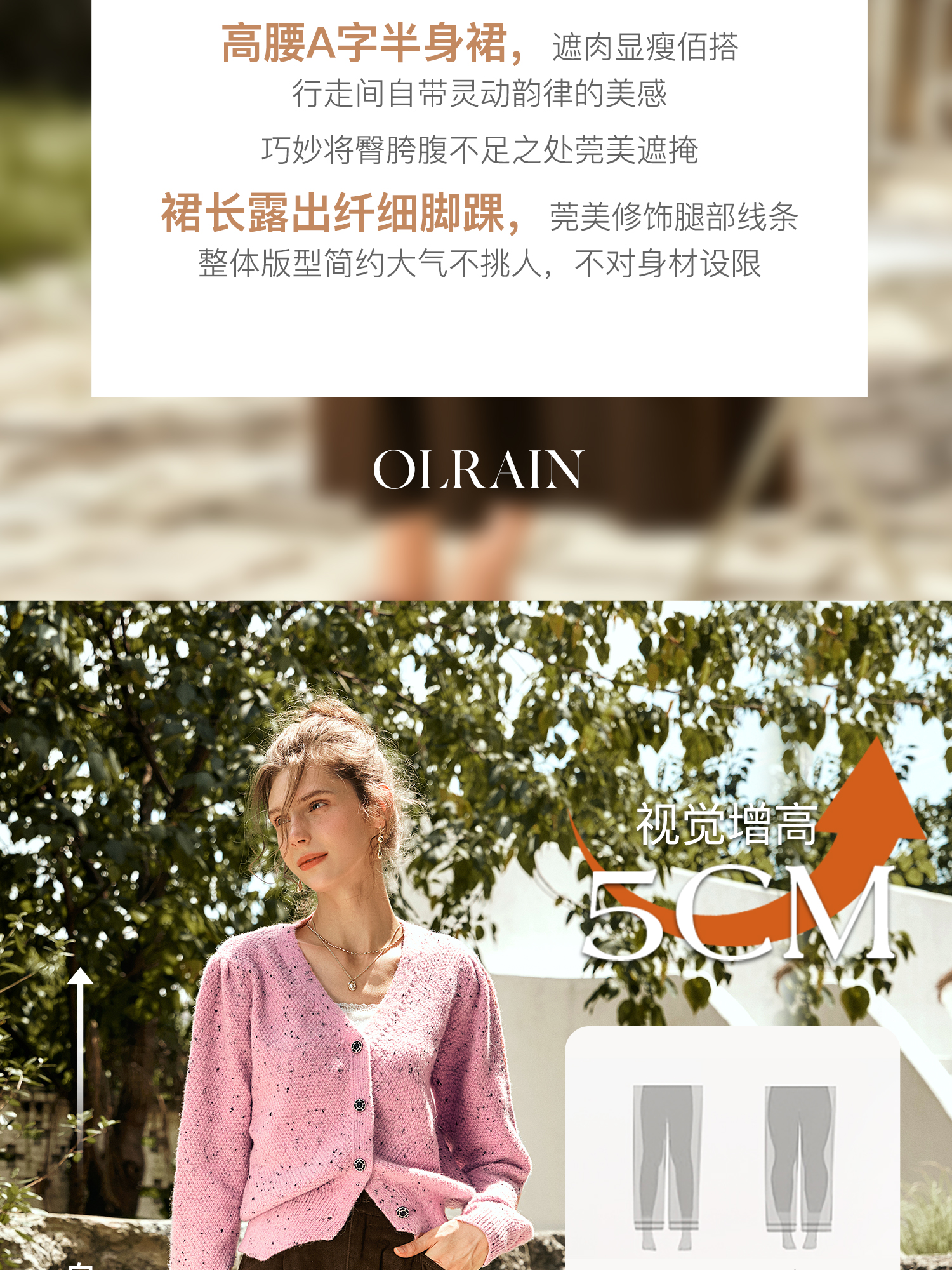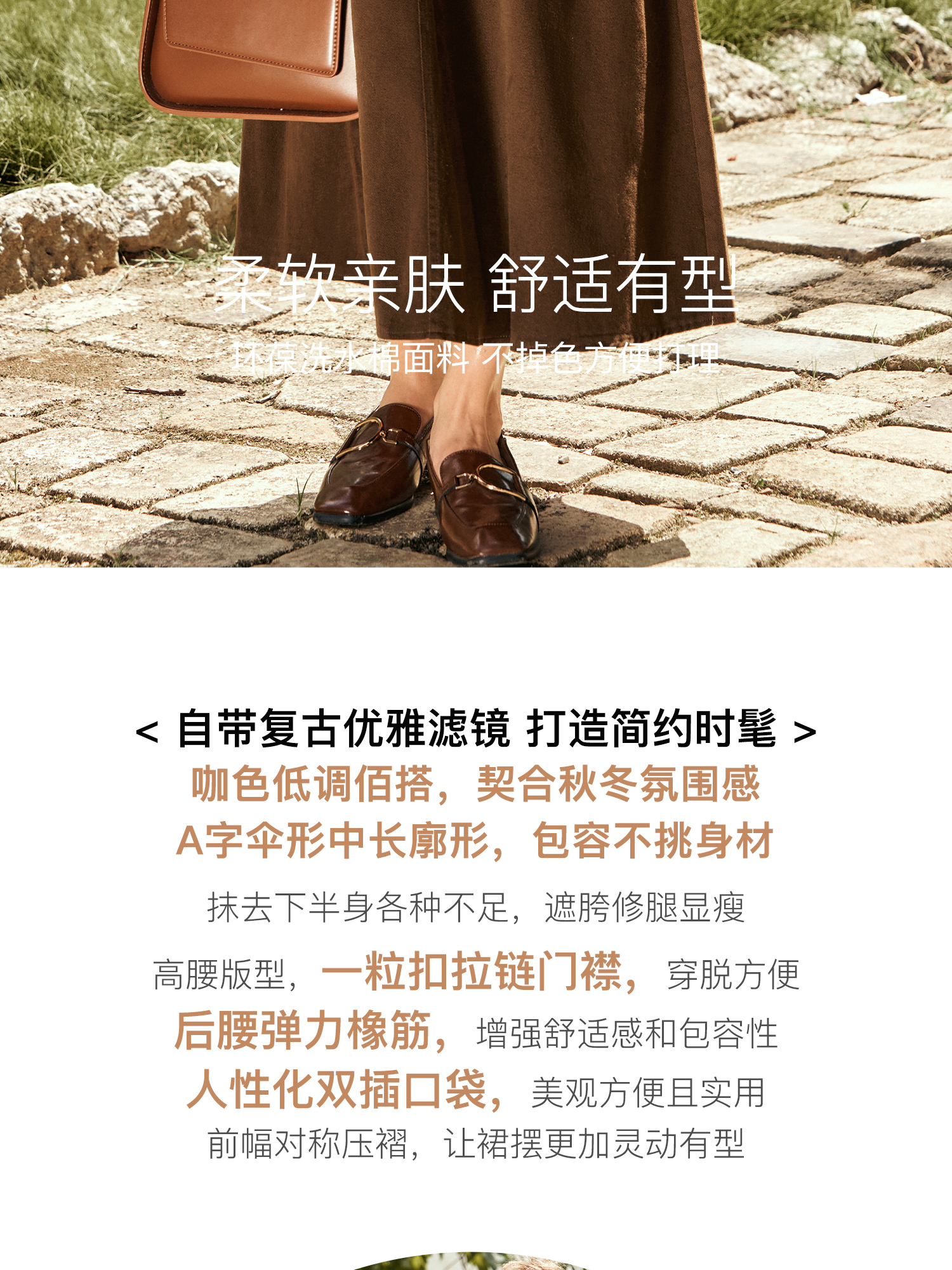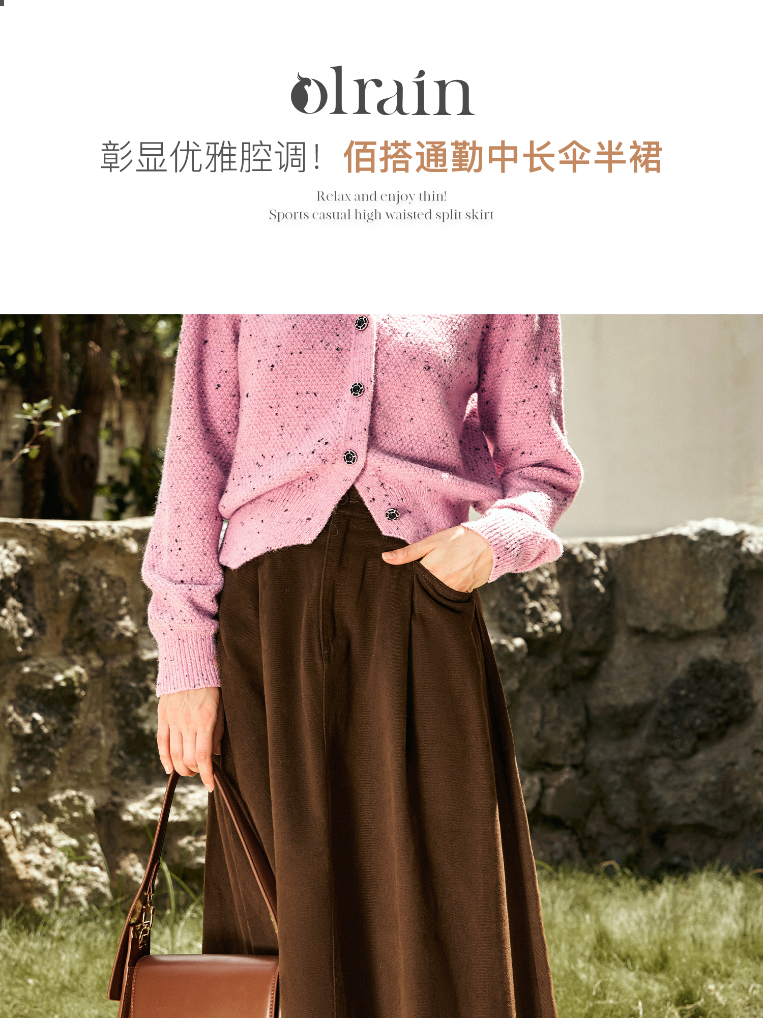 OLrain欧芮儿咖色半身裙女秋季2024年新款百搭通勤中长款伞裙