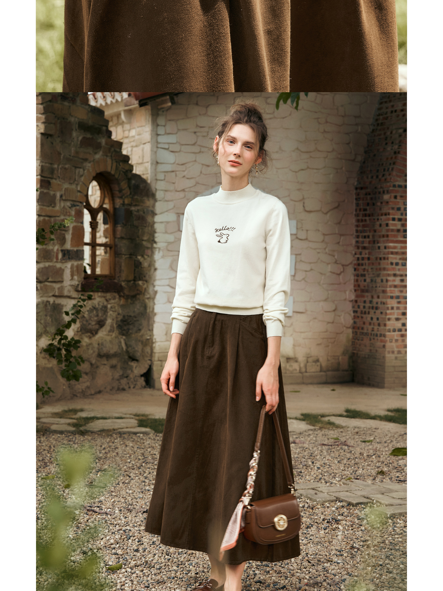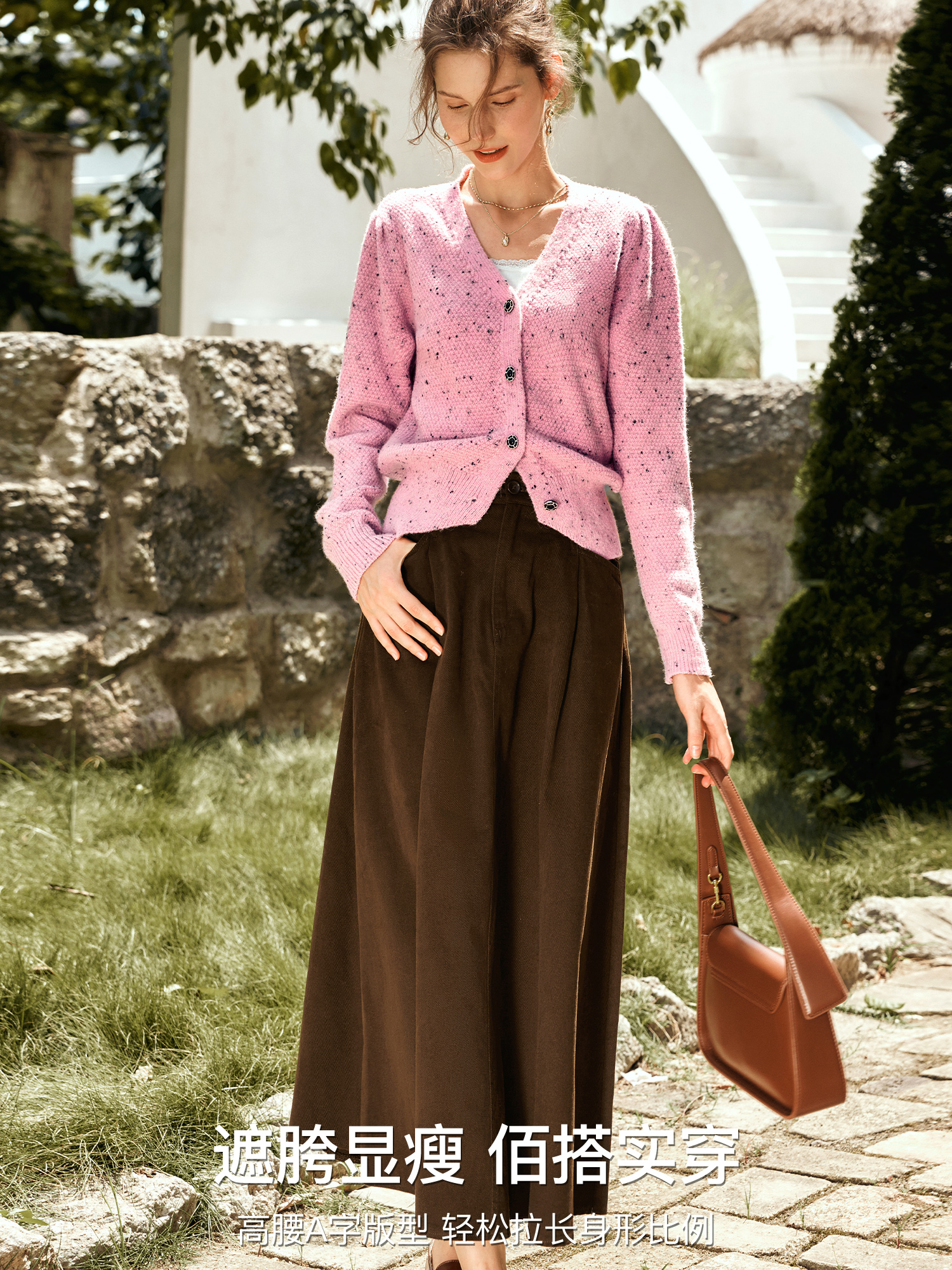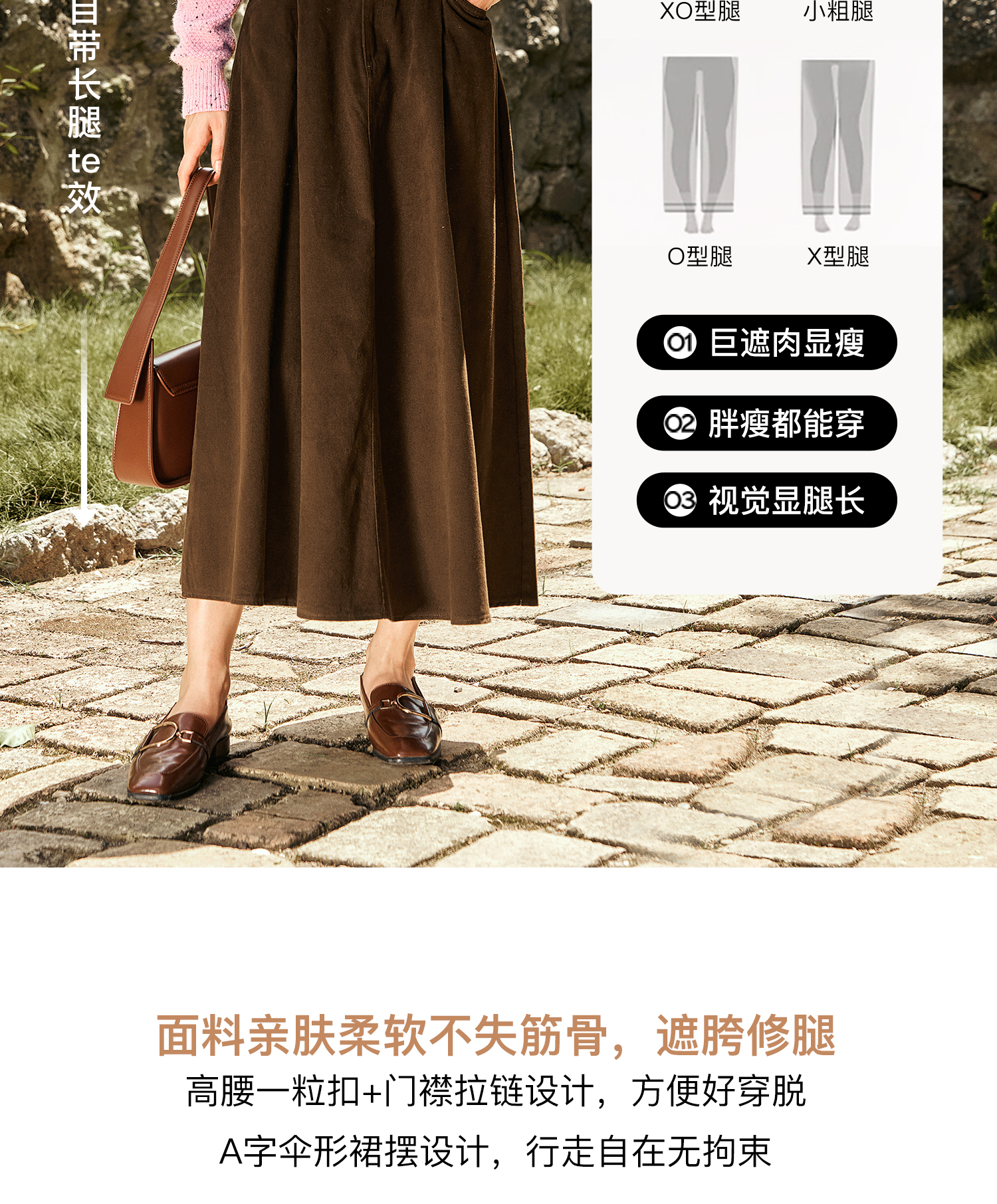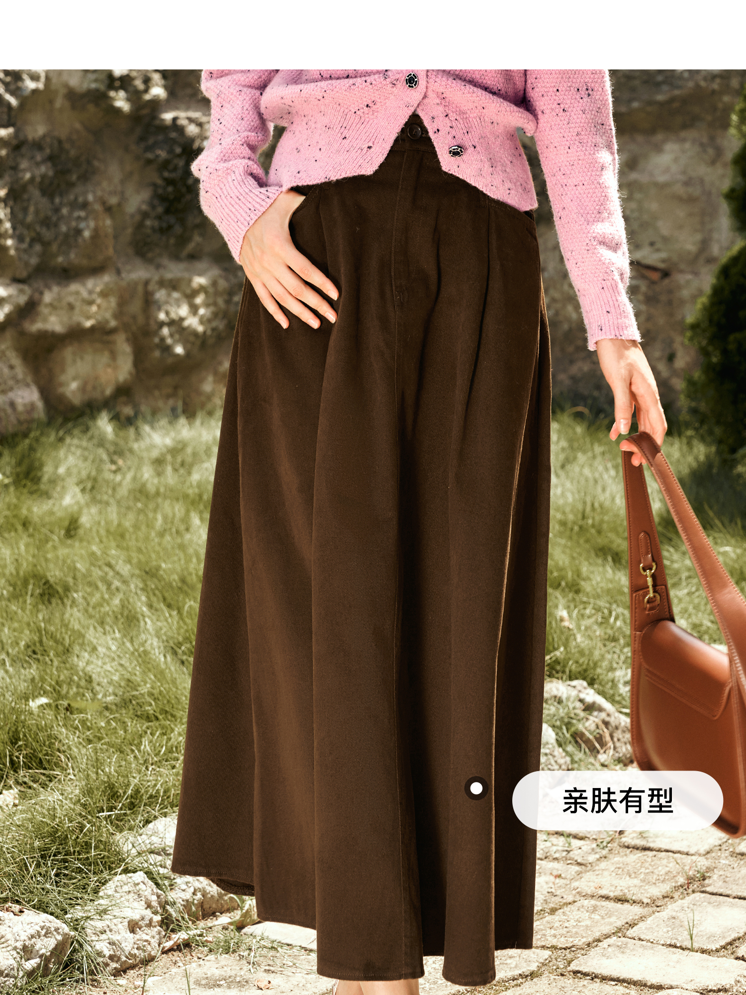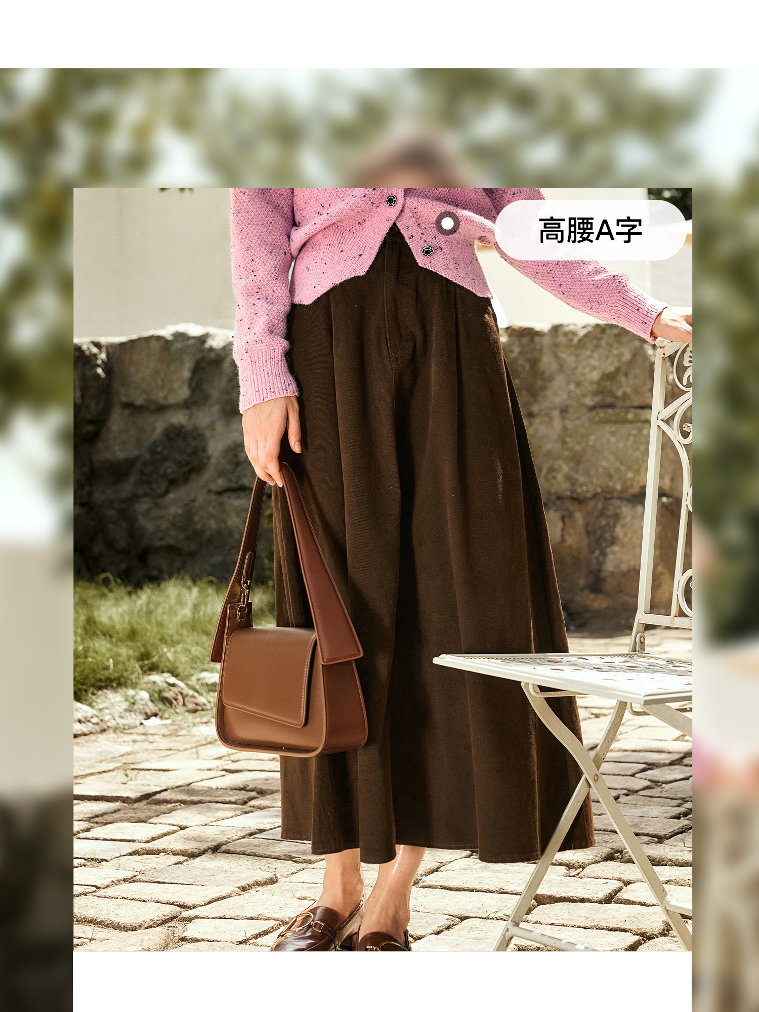 OLrain欧芮儿咖色半身裙女秋季2024年新款百搭通勤中长款伞裙