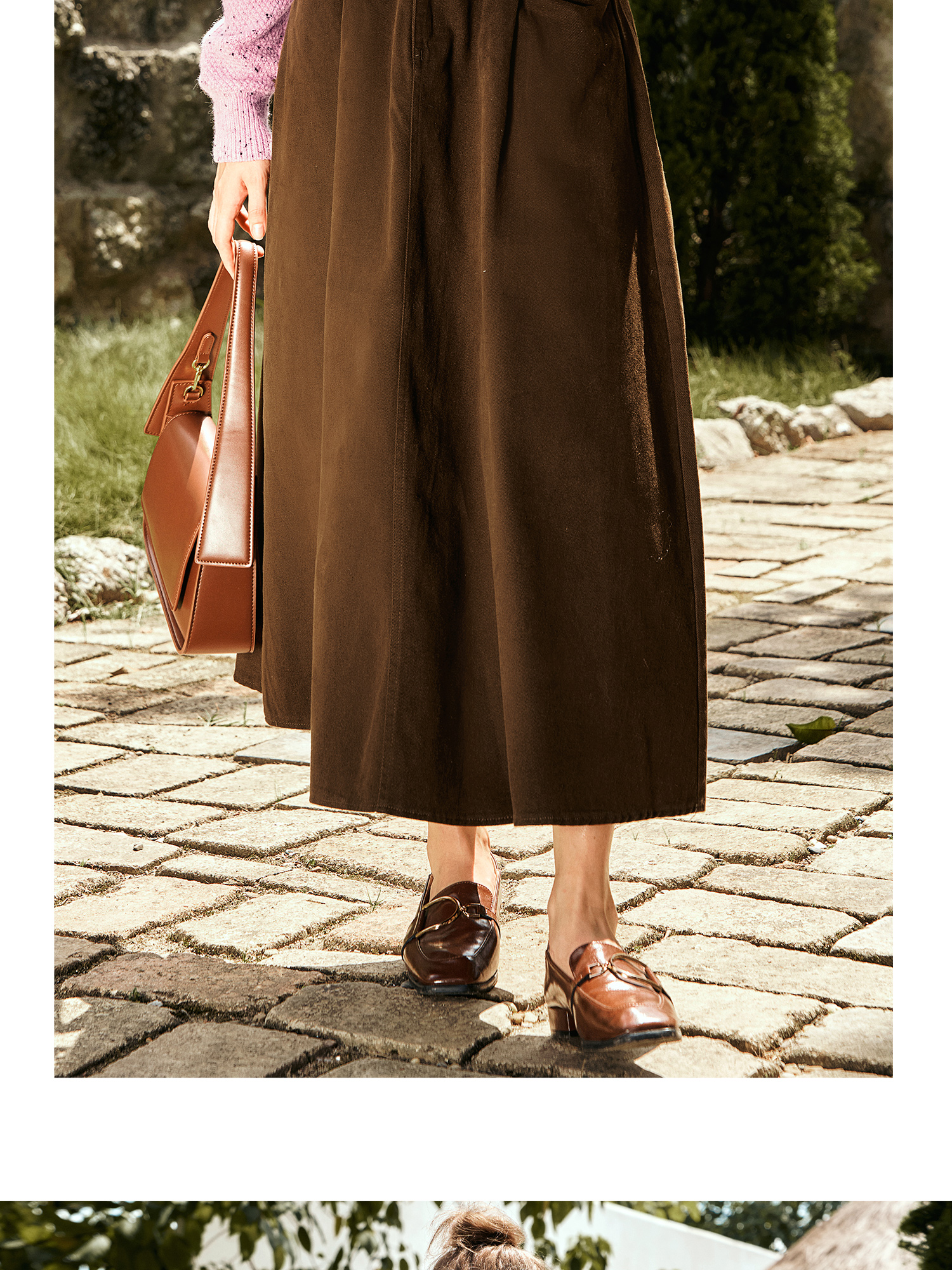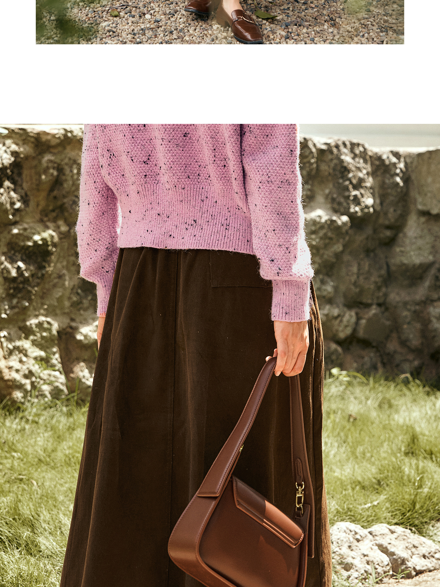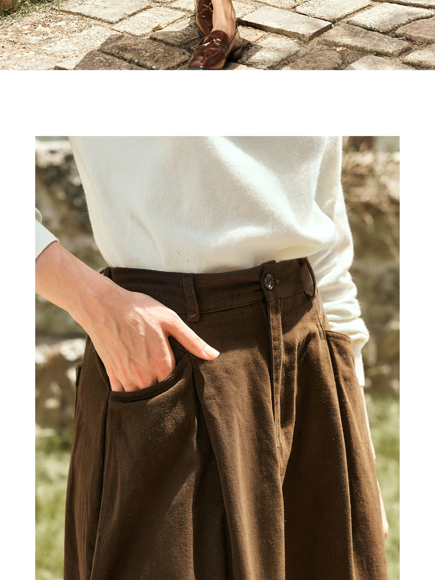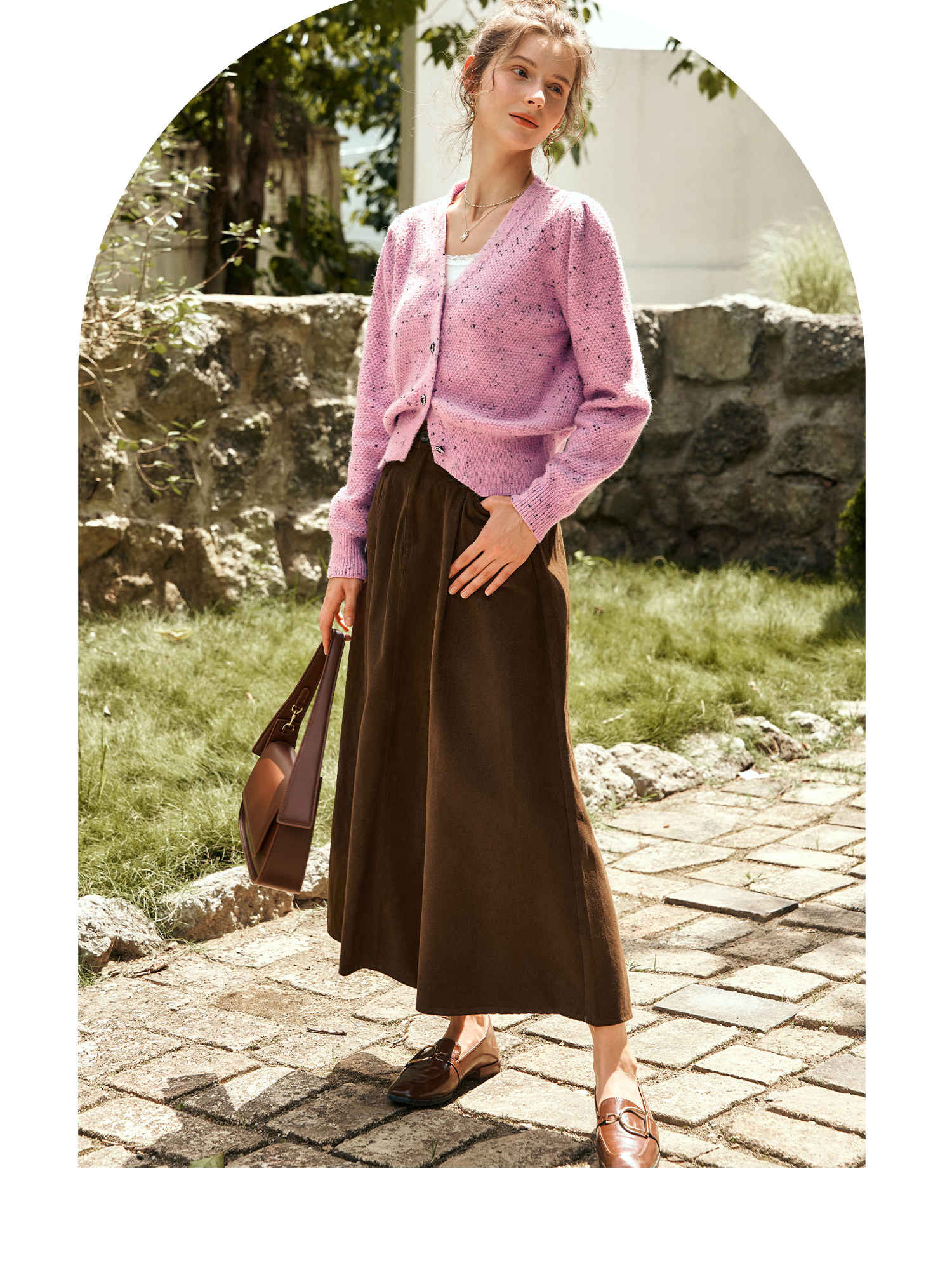 OLrain欧芮儿咖色半身裙女秋季2024年新款百搭通勤中长款伞裙