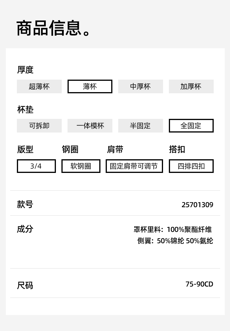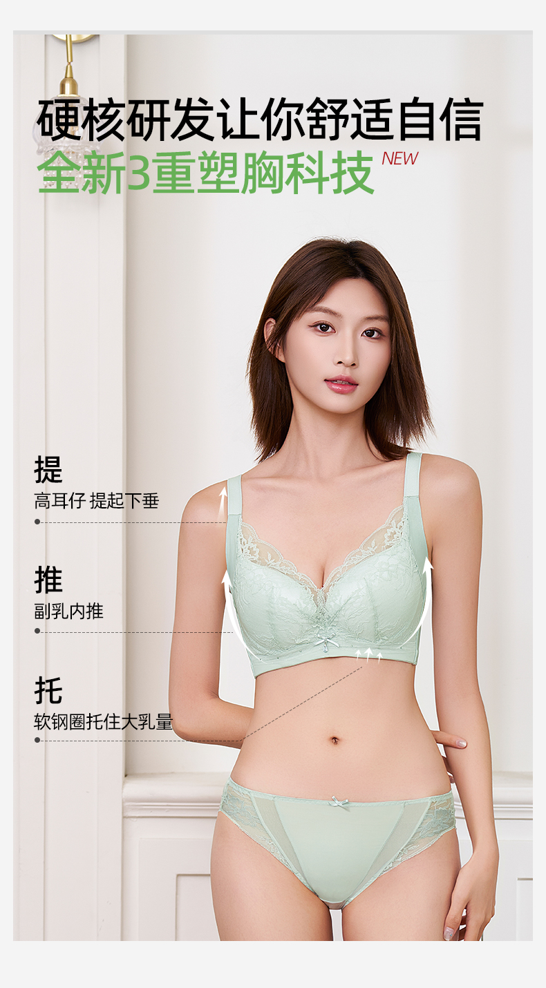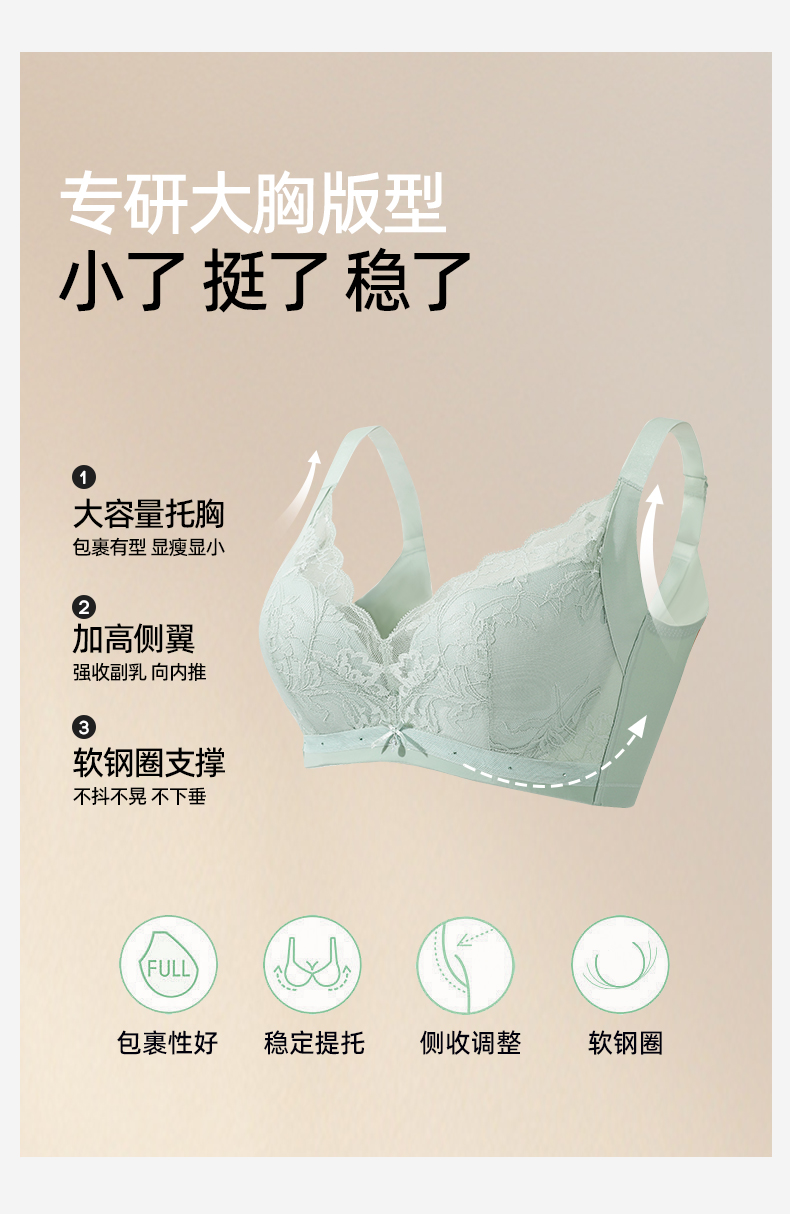 熳洁儿 7A抗菌大胸显小轻塑调整文胸均薄云感棉防下垂收副乳商场同款25701309