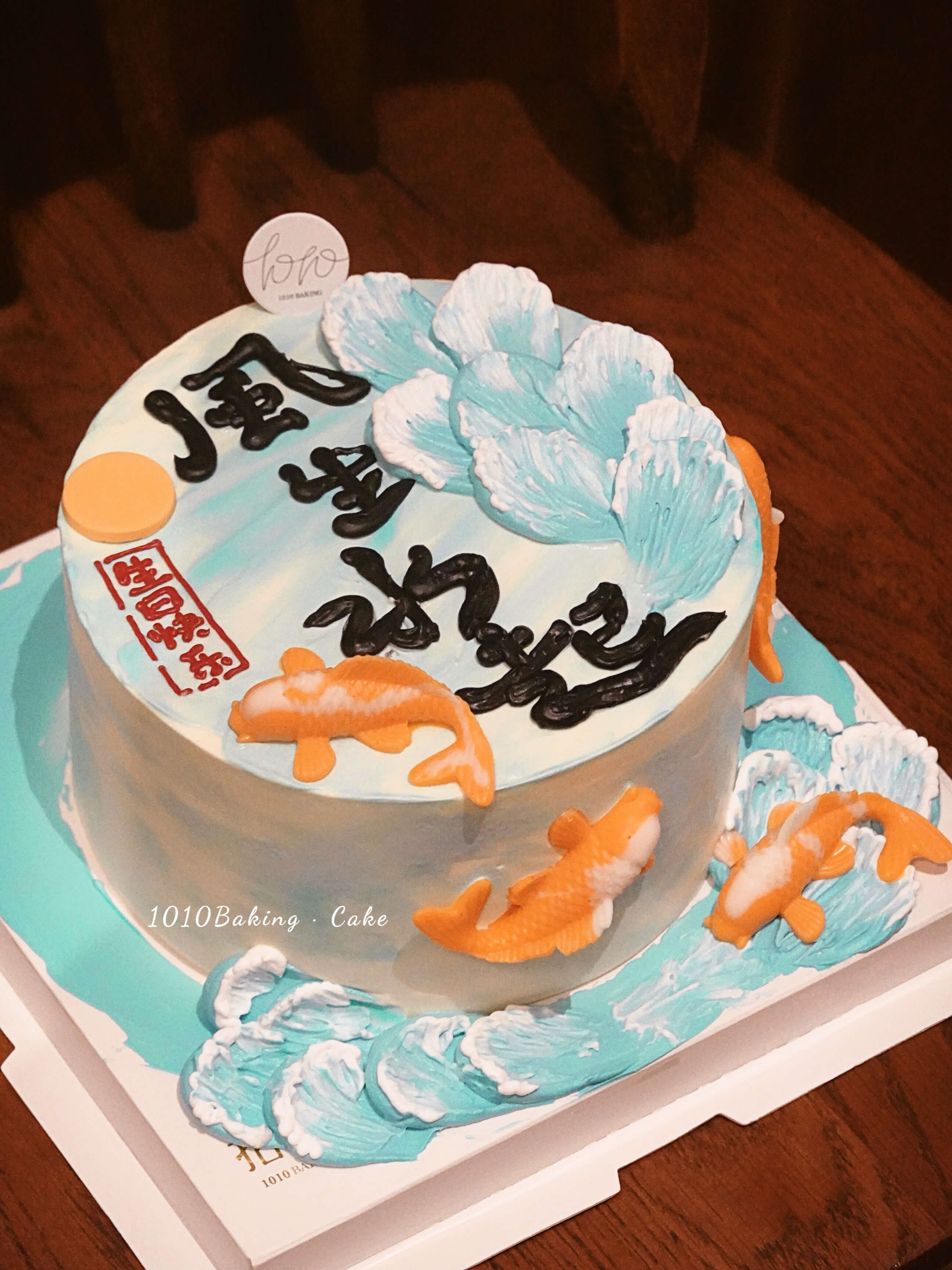 「锦鲤伴浪,风生水起」手绘文字·100%动物奶油(附图6寸·提前12小时预订)