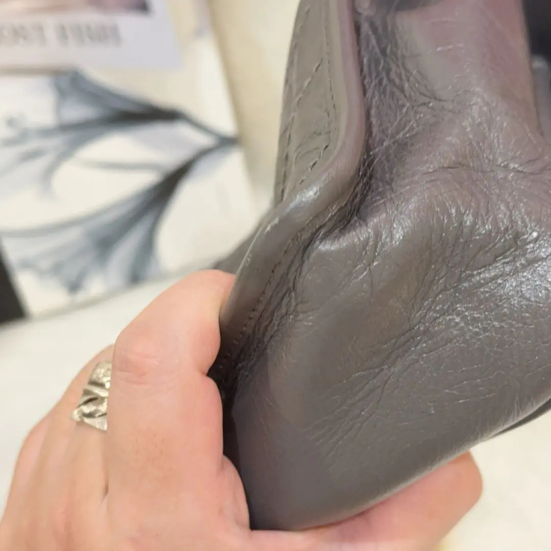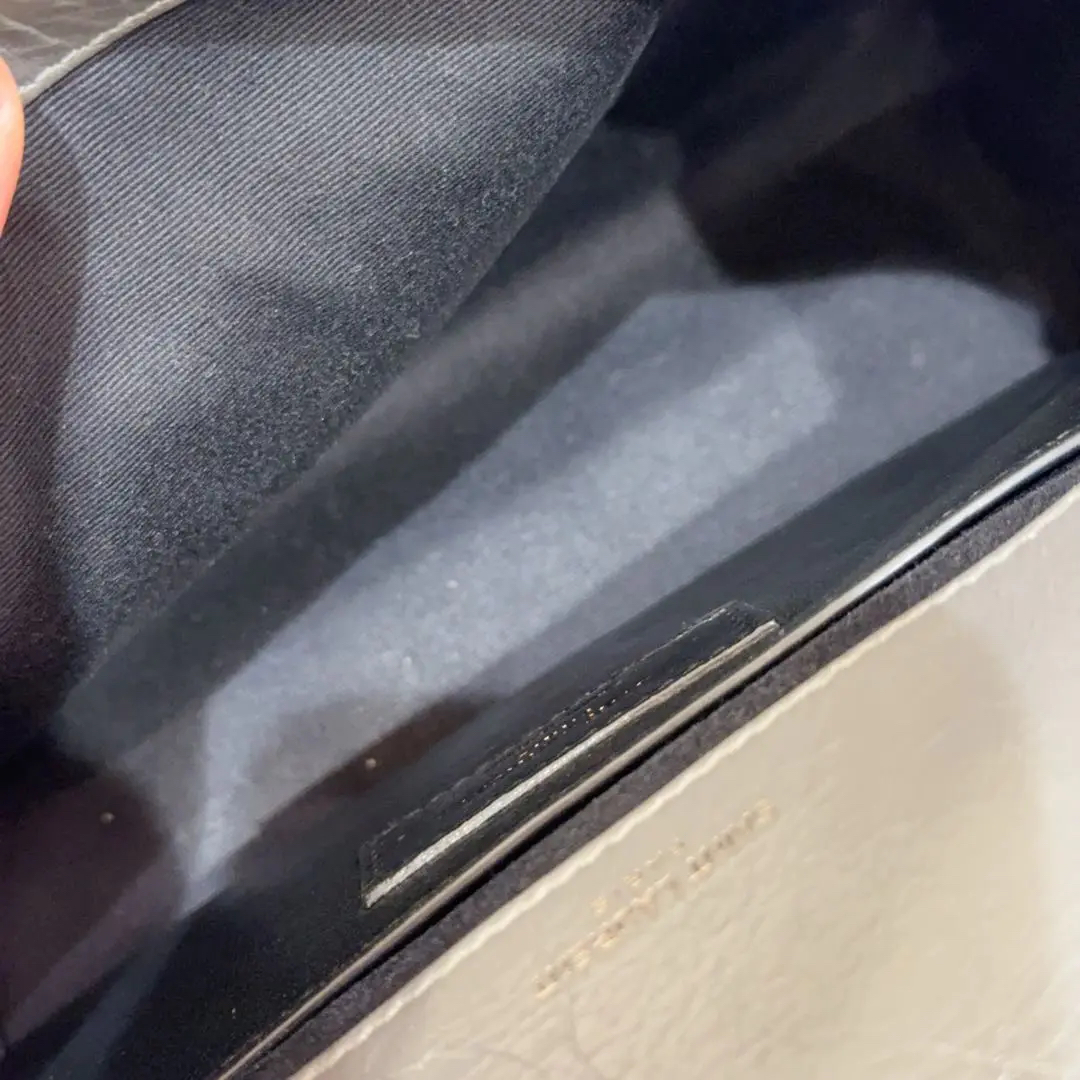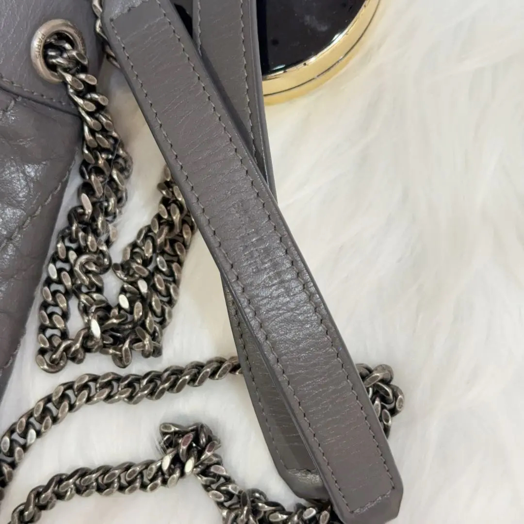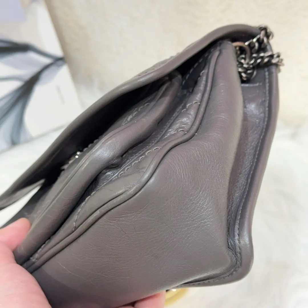 【商品详情】正品二手 YSL Niki 小号 灰色 D扣 油蜡牛皮 斜挎包🩶 98新 28×20 配件:说明书。复古褶皱设计 街头感十足