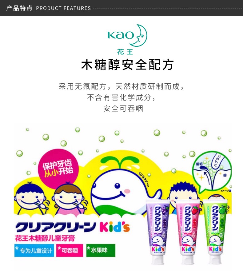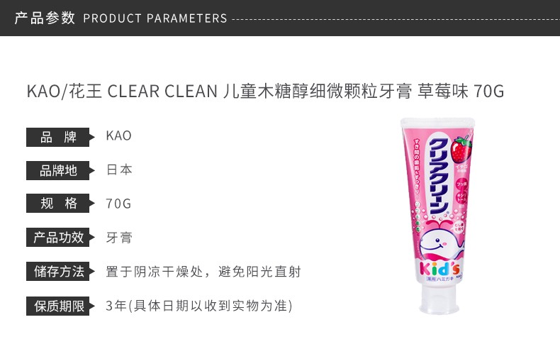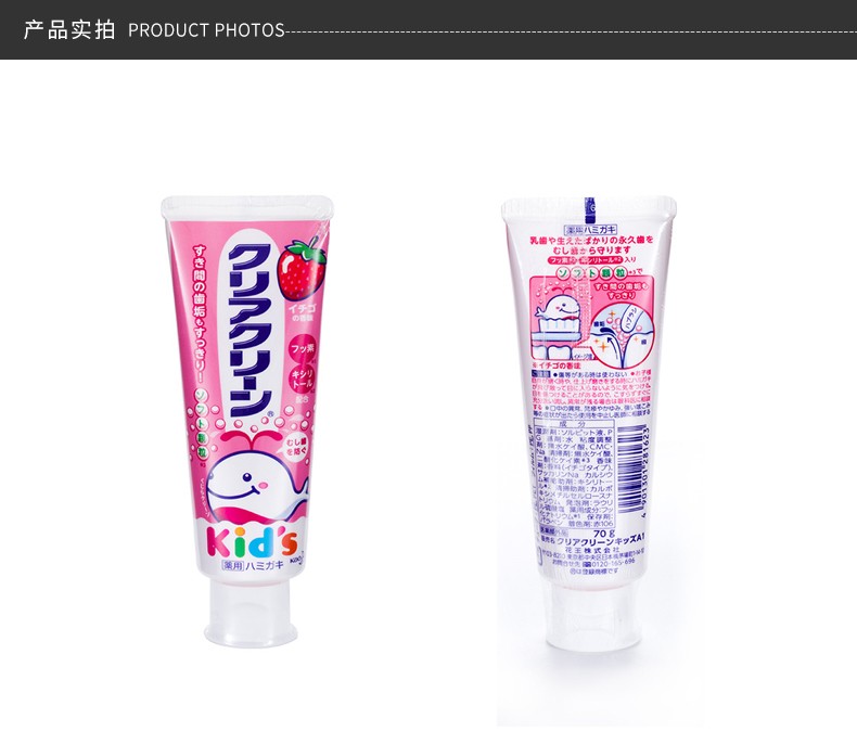 KAO/花王 CLEAR CLEAN 儿童木糖醇细微颗粒牙膏 草莓味 70GJPY带授权招加盟代理