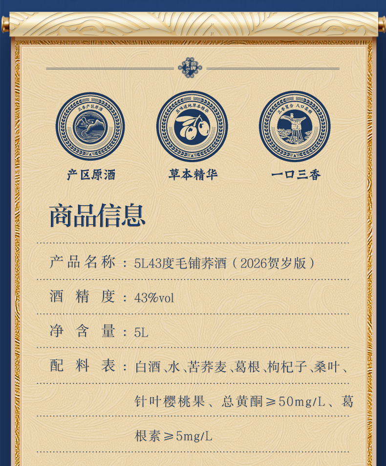 【2026新春贺岁版】43° 毛铺荞酒5L 大容量家庭分享装