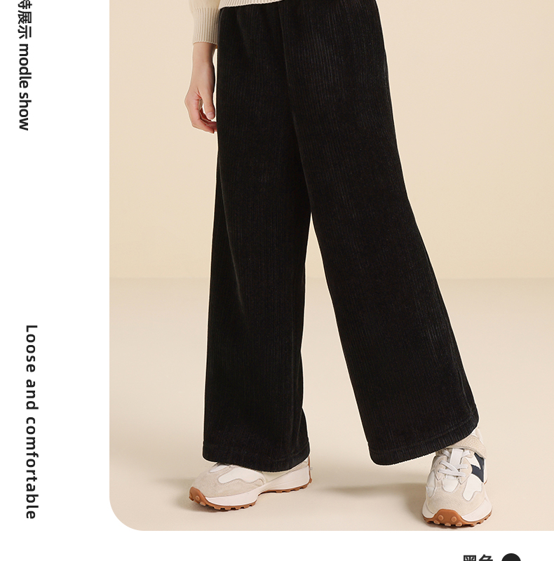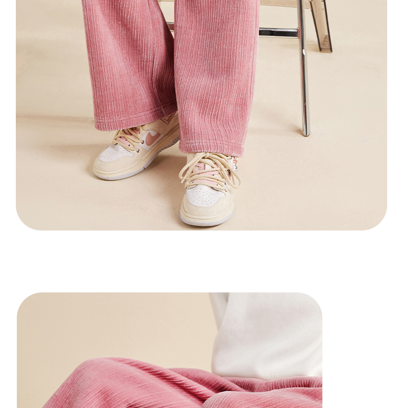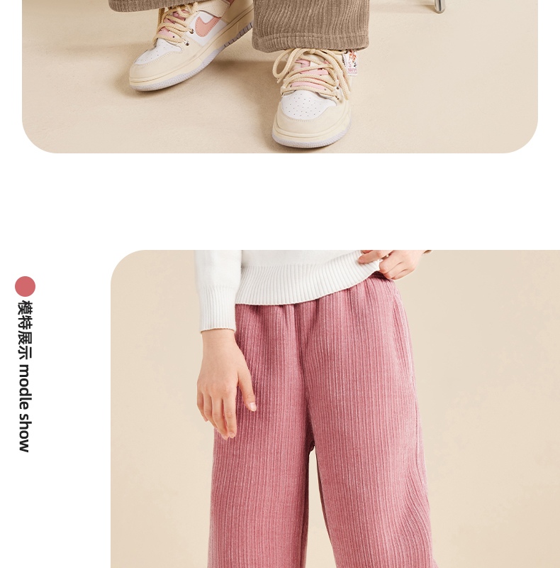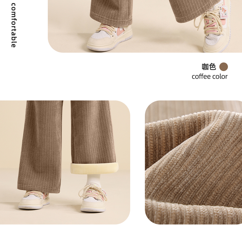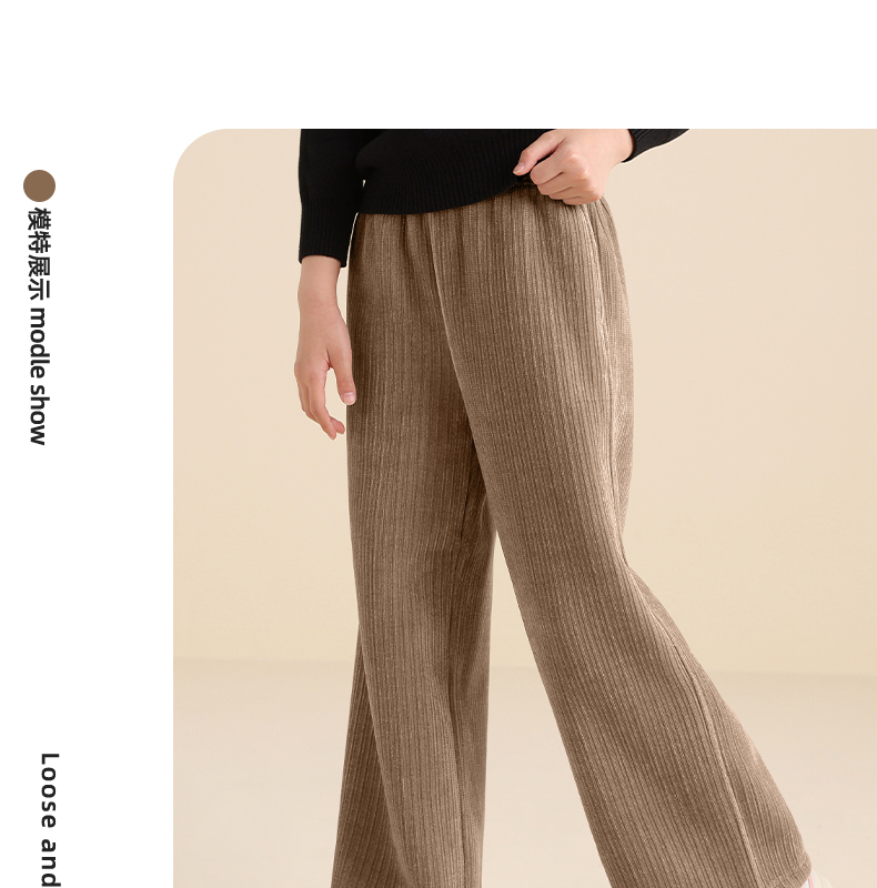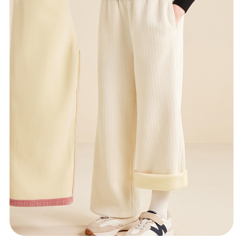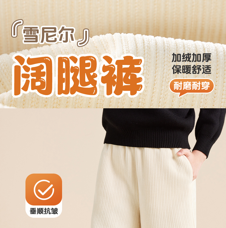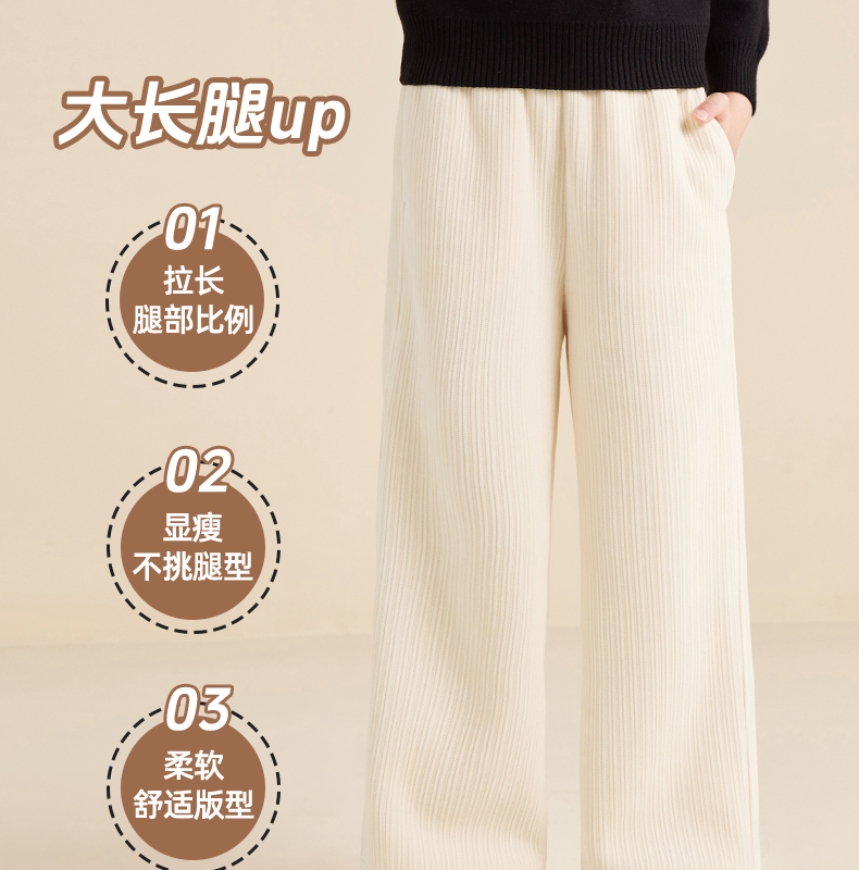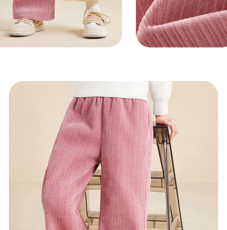 5秋冬款女童雪尼尔阔腿裤休闲垂感加绒加厚针织裤保暖