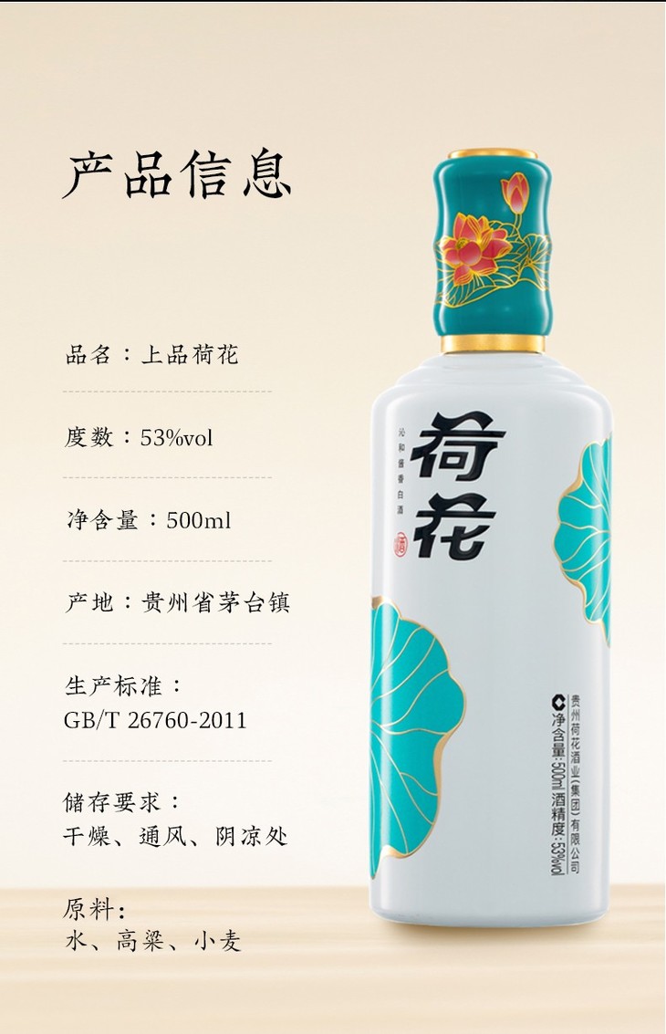 荷花 上品荷花 酱香型白酒 53度500ml*1瓶