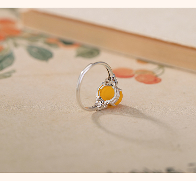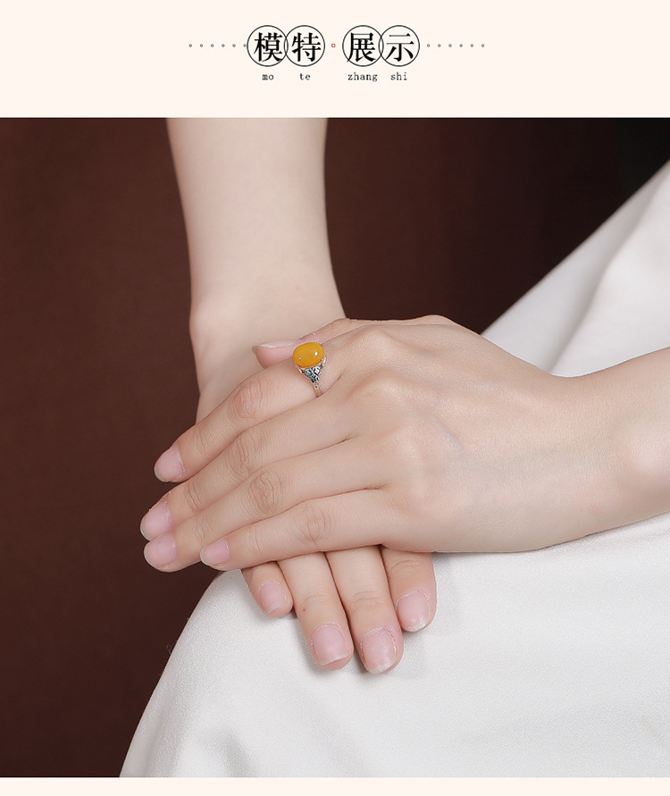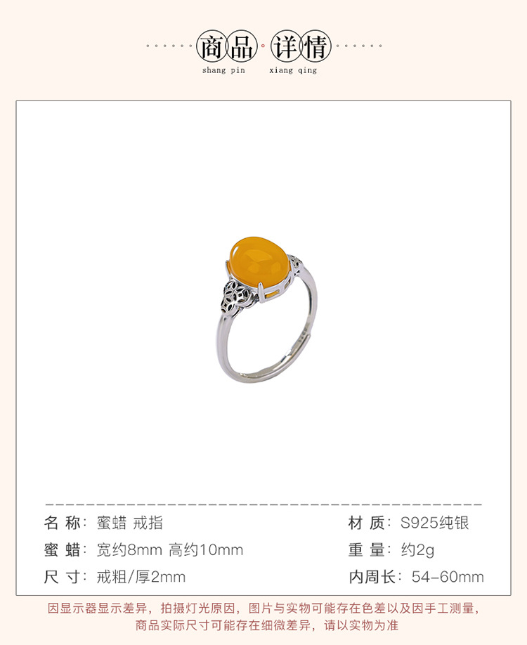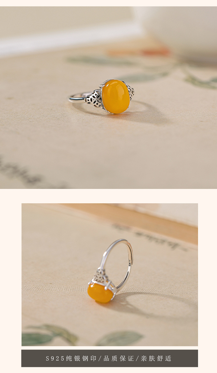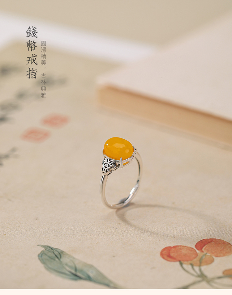 【财生】蜜蜡S925纯银蛋面椭圆钱币复古戒指【CW-JZ07114】