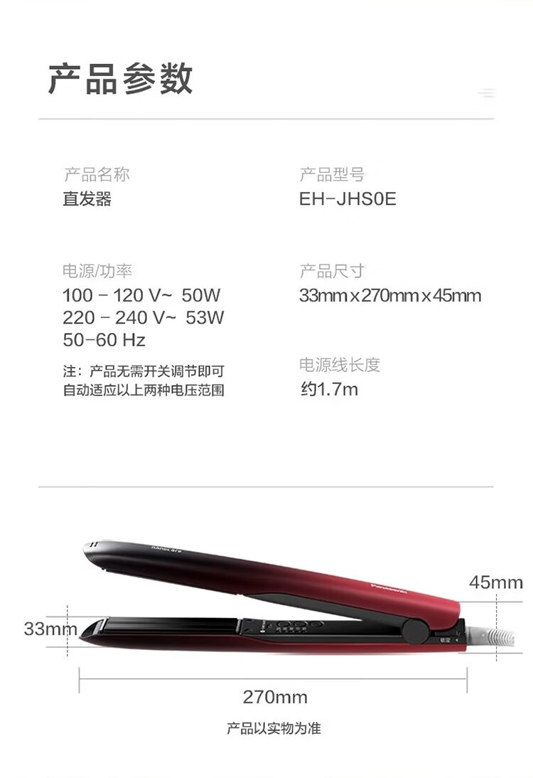【分仓直发包邮】松下(Panasonic)直板夹直发棒EH-MHS0E-W405