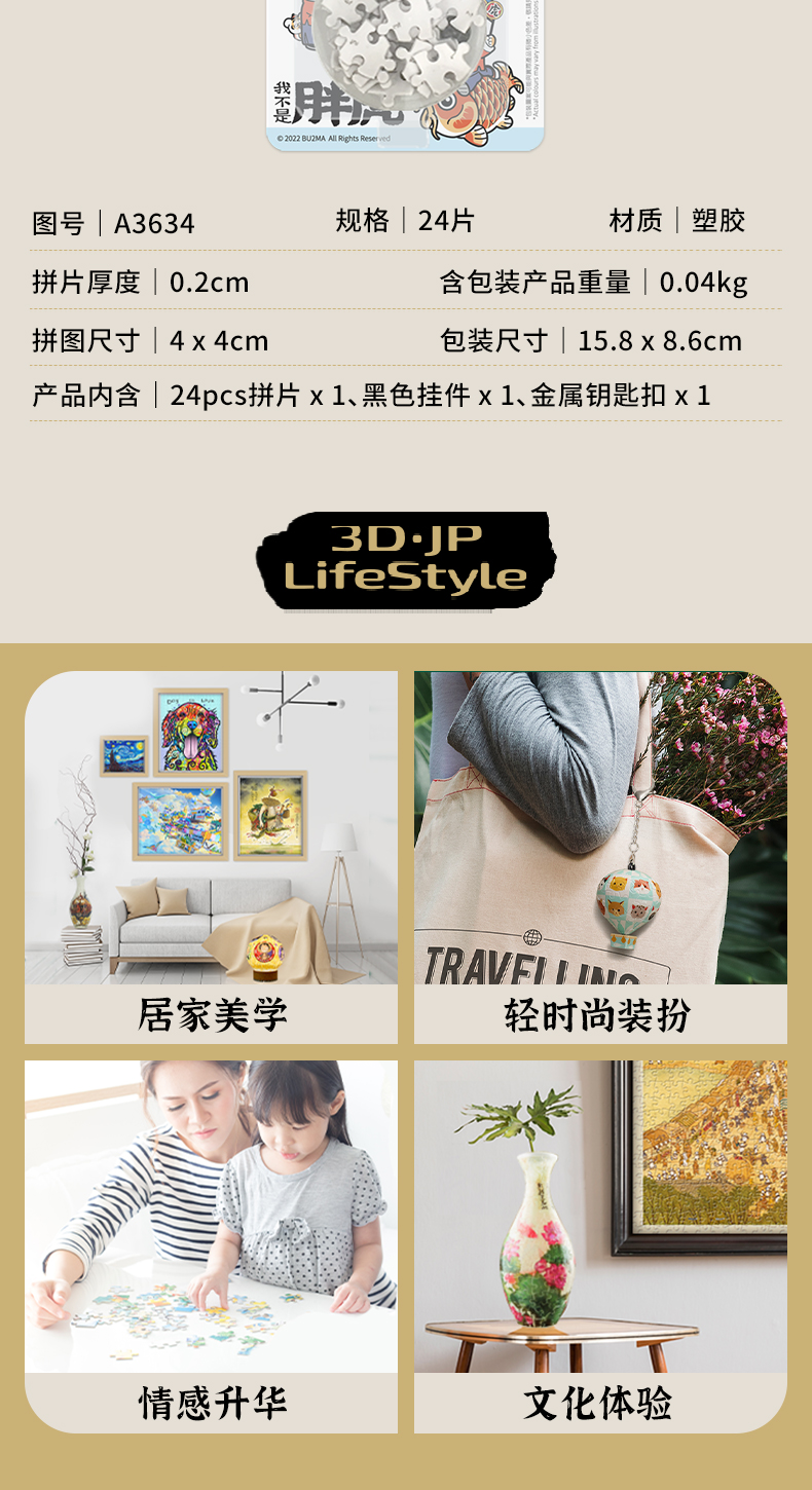 24片钥匙扣塑料拼图 A3634 我不是胖虎-年年有虎