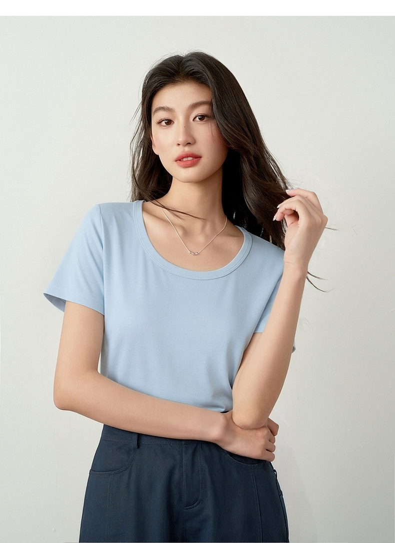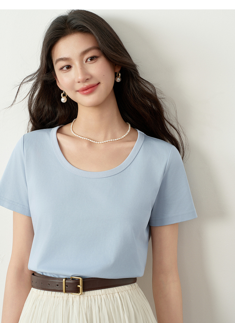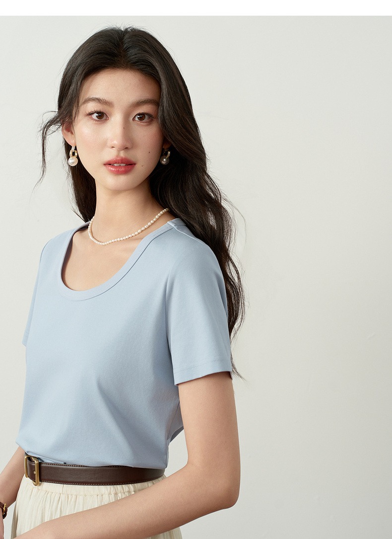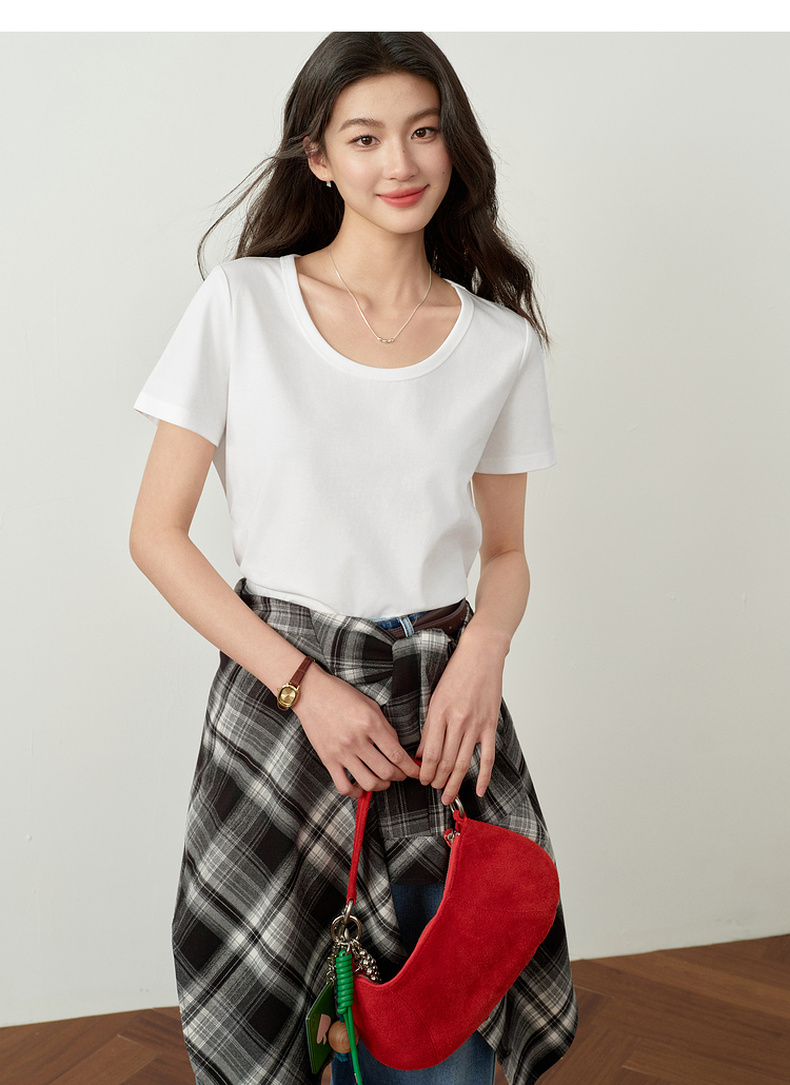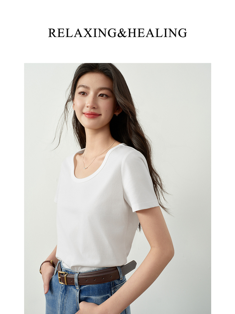 【严选】【满分T】诗凡黎索罗娜百搭U领T恤2026春季新款多色显瘦内搭短袖7H1400791