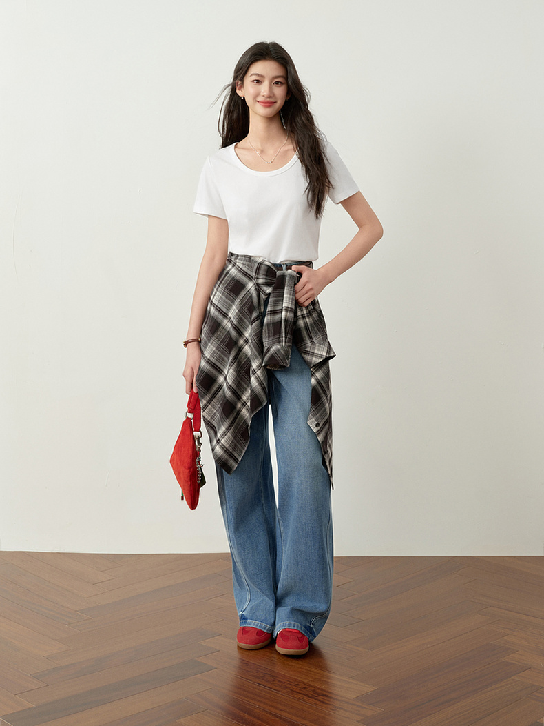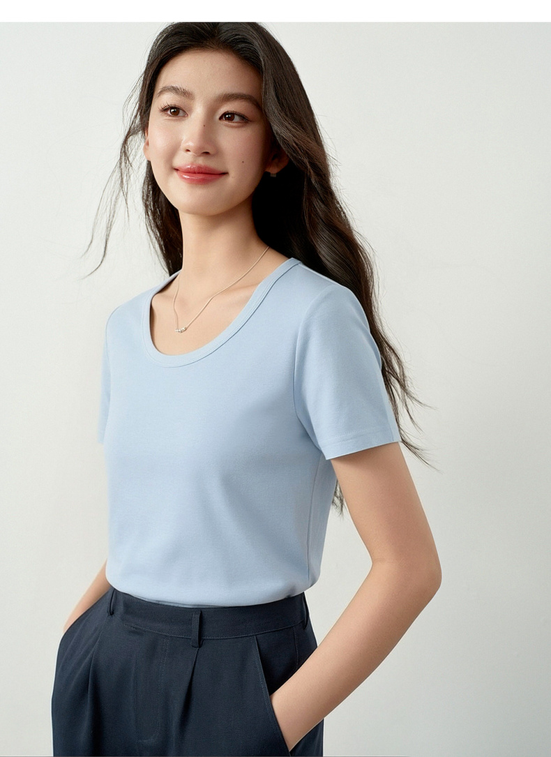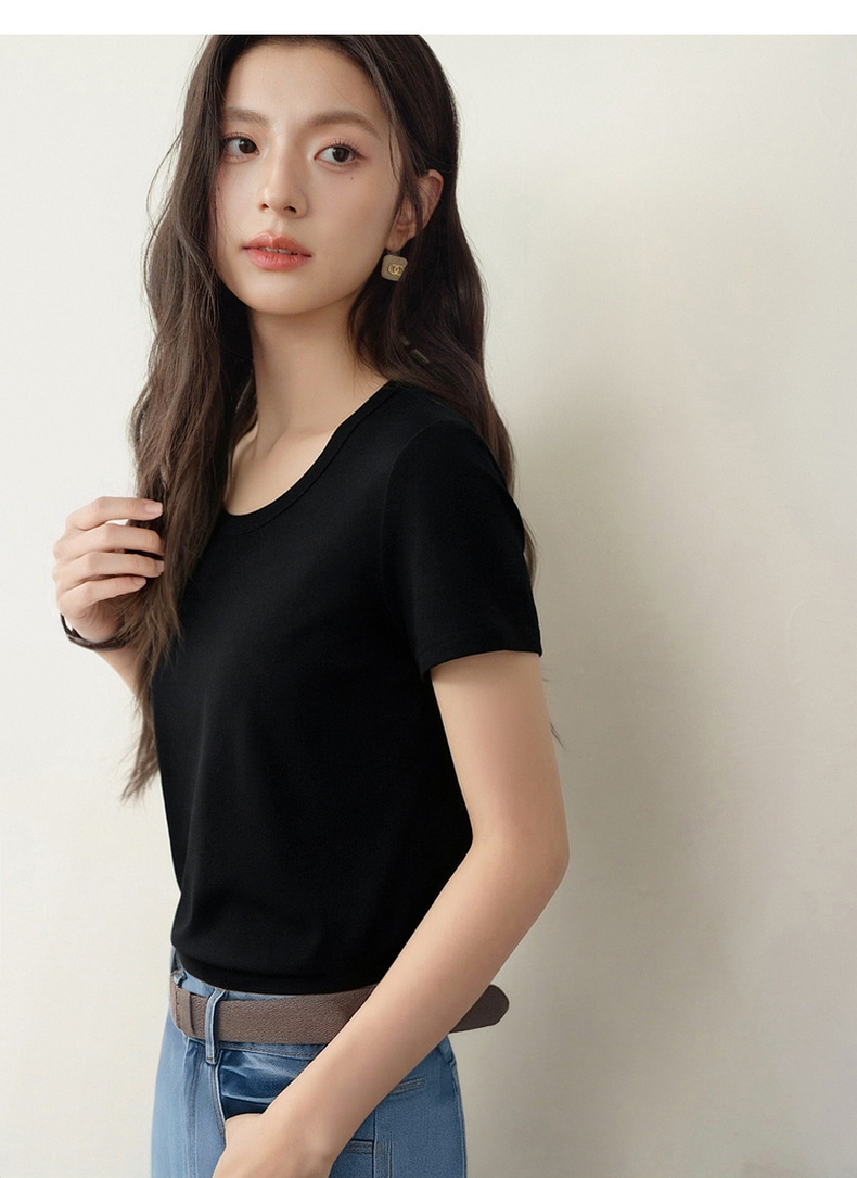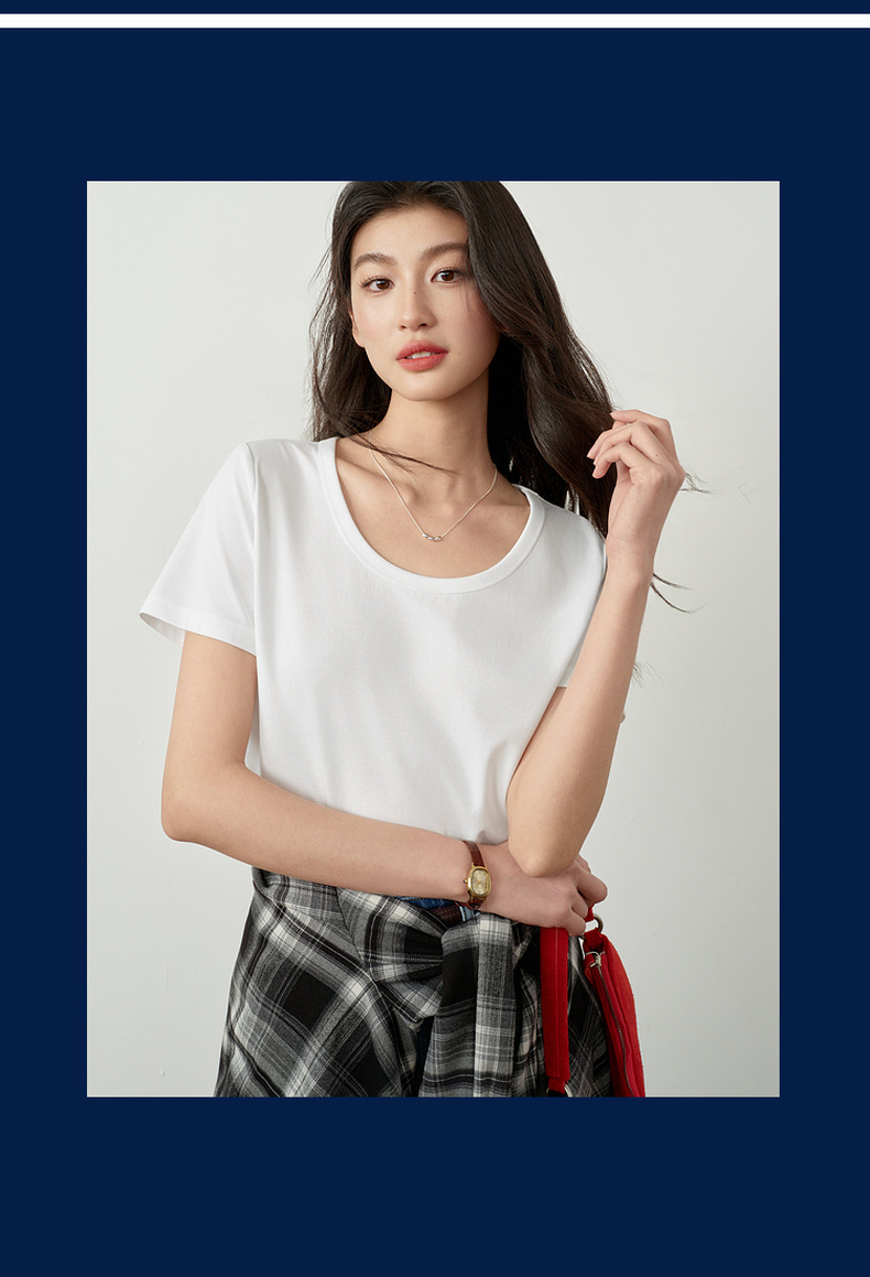 【严选】【满分T】诗凡黎索罗娜百搭U领T恤2026春季新款多色显瘦内搭短袖7H1400791