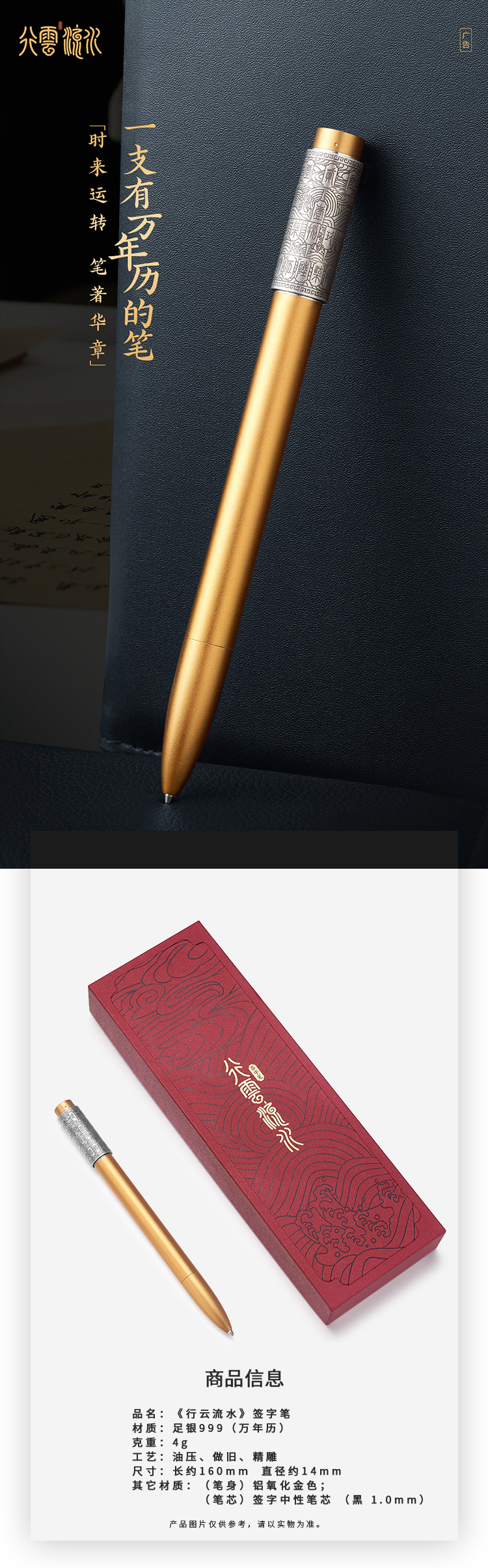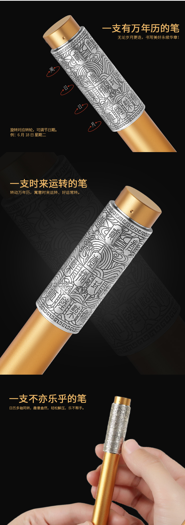 《行云流水》签字笔 足银万年历功能 专利工艺 轻松旋转 文趣解压 文化礼品 个性定制