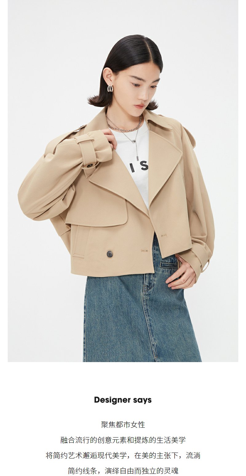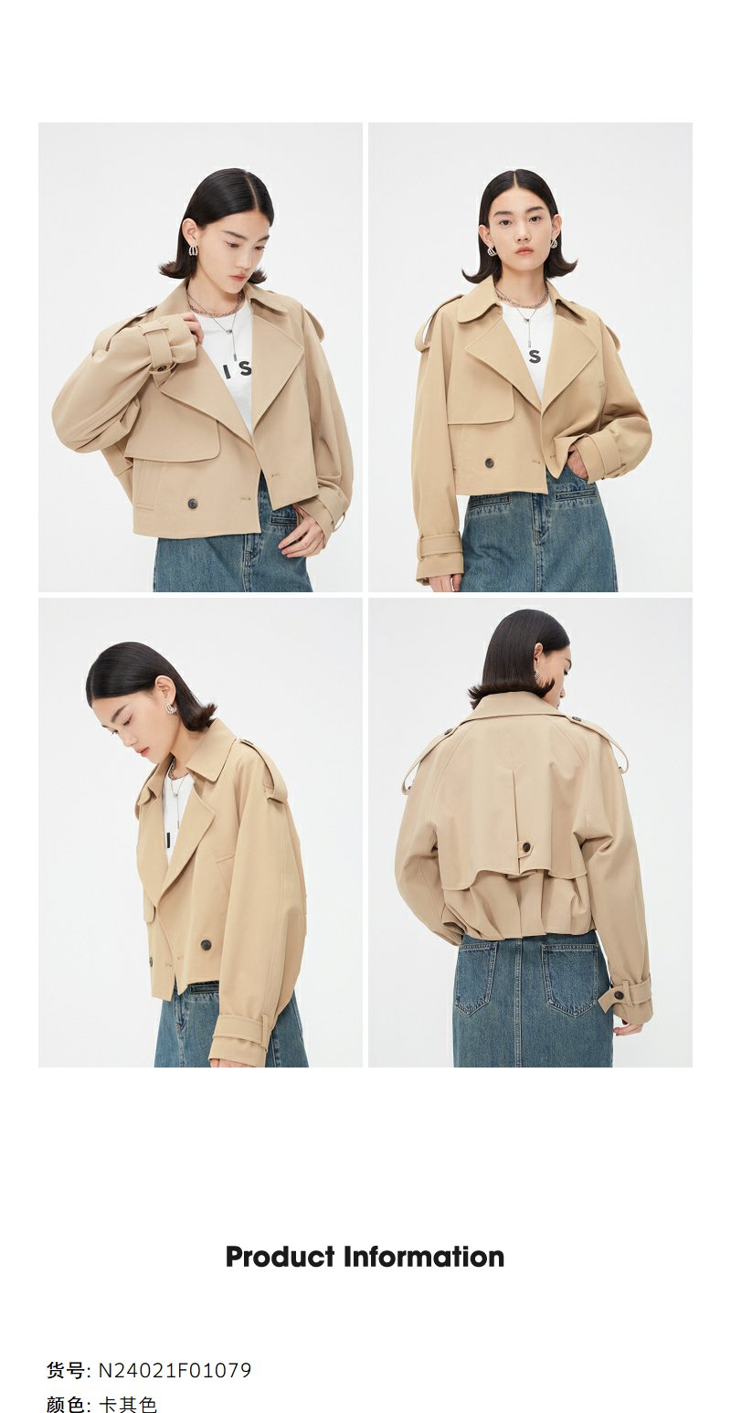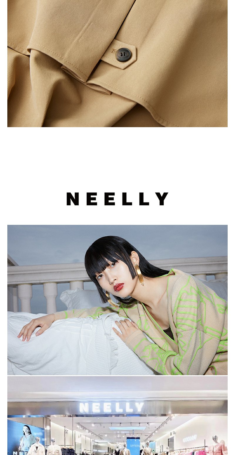 NEELLY纳俪商场同款春季卡其色风衣外套女短款英伦风翻领工装夹克N24021F01079