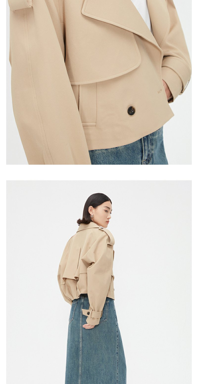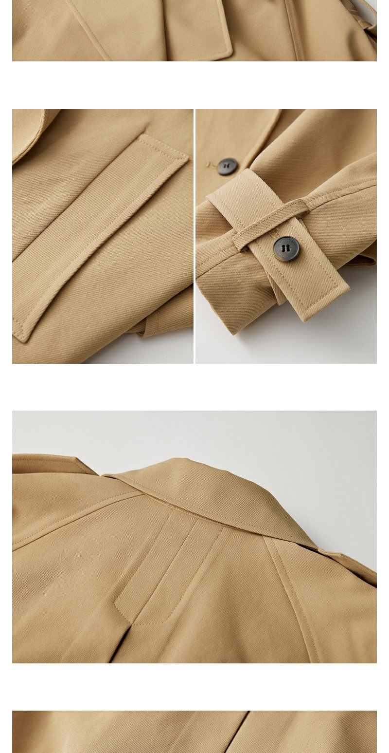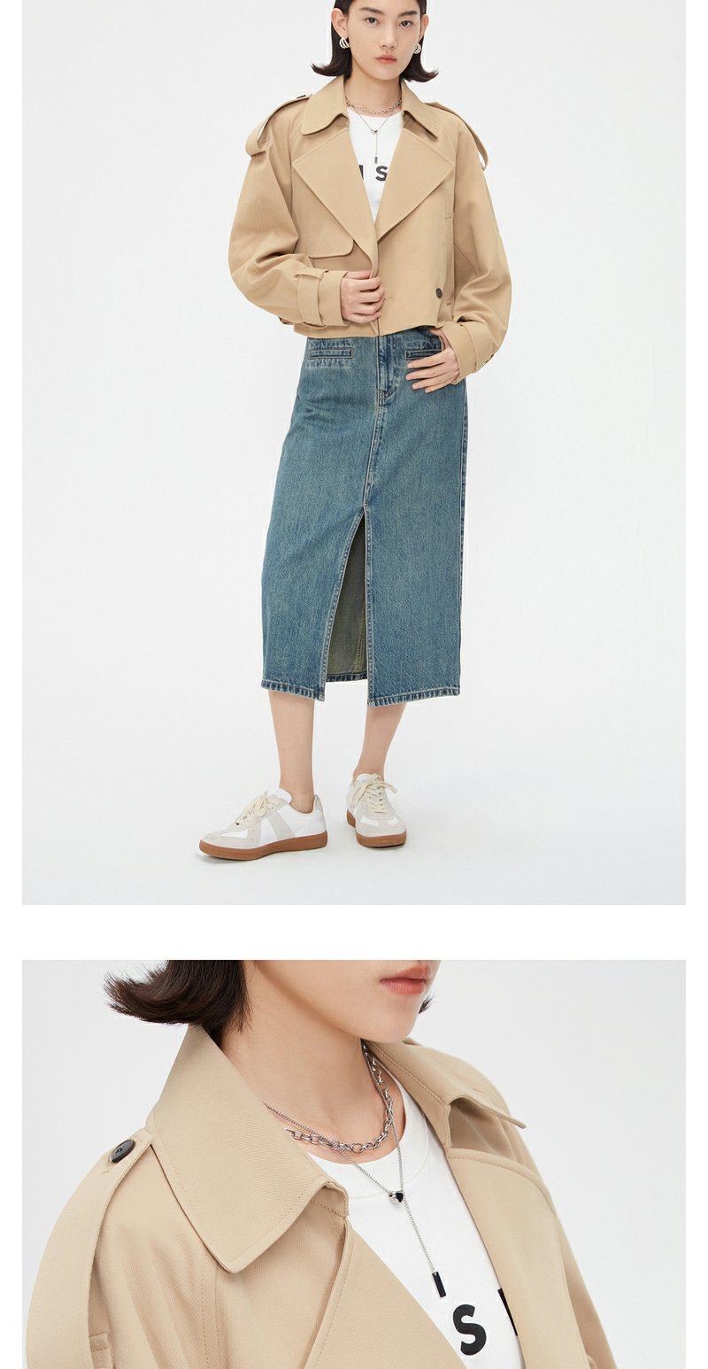NEELLY纳俪商场同款春季卡其色风衣外套女短款英伦风翻领工装夹克N24021F01079