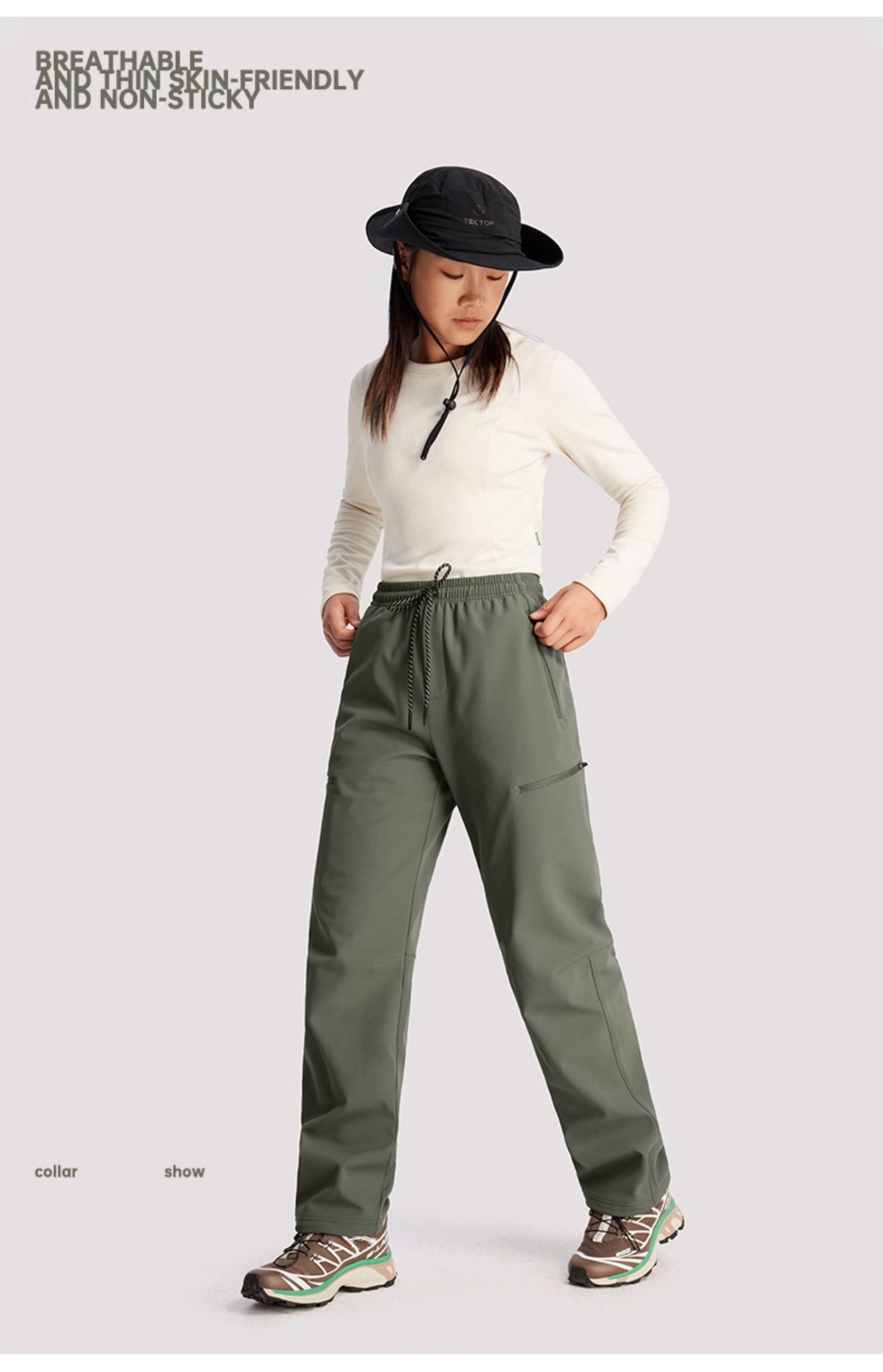 探拓户外加绒软壳裤男女款秋冬保暖长裤防风防泼水登山徒步冲锋裤