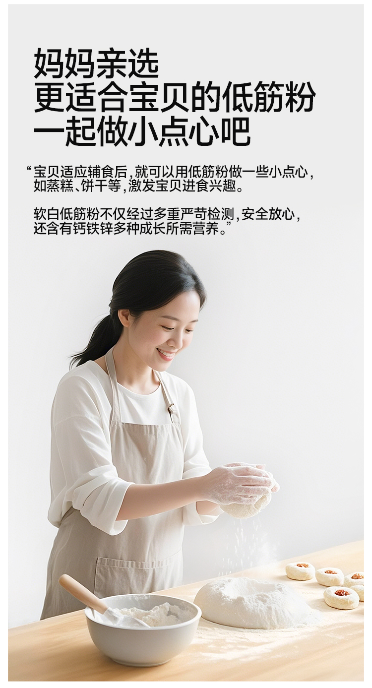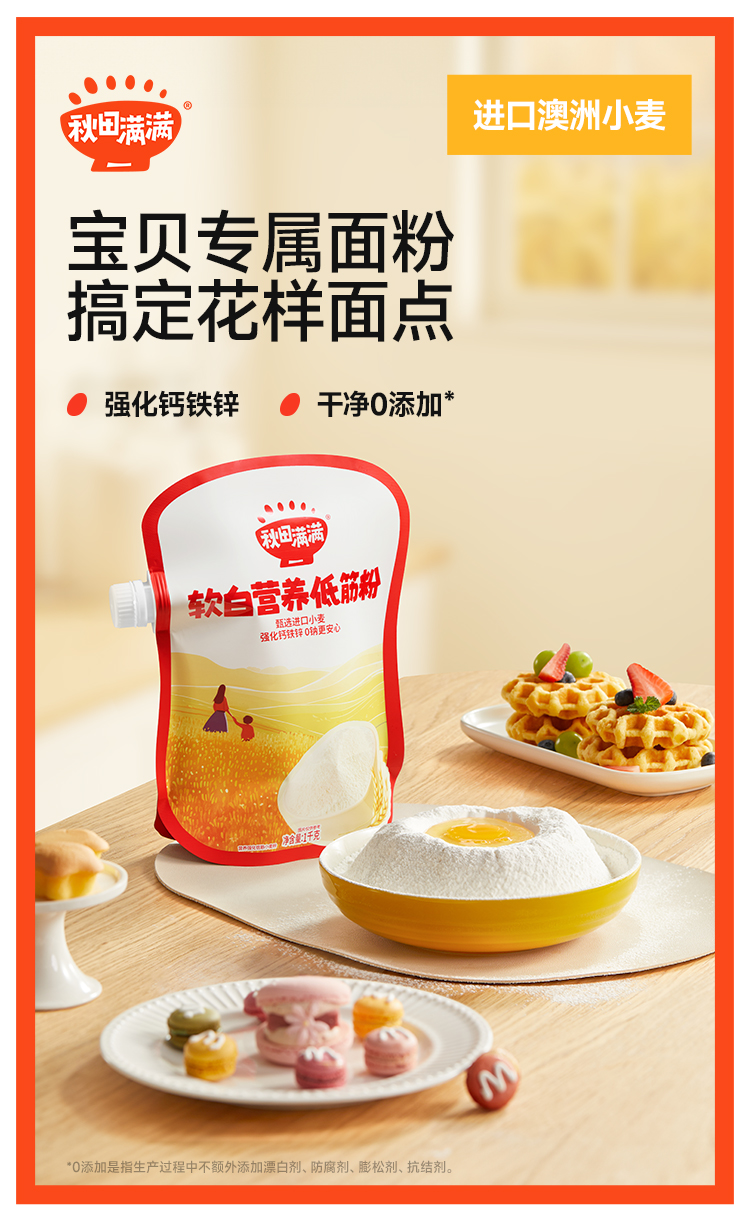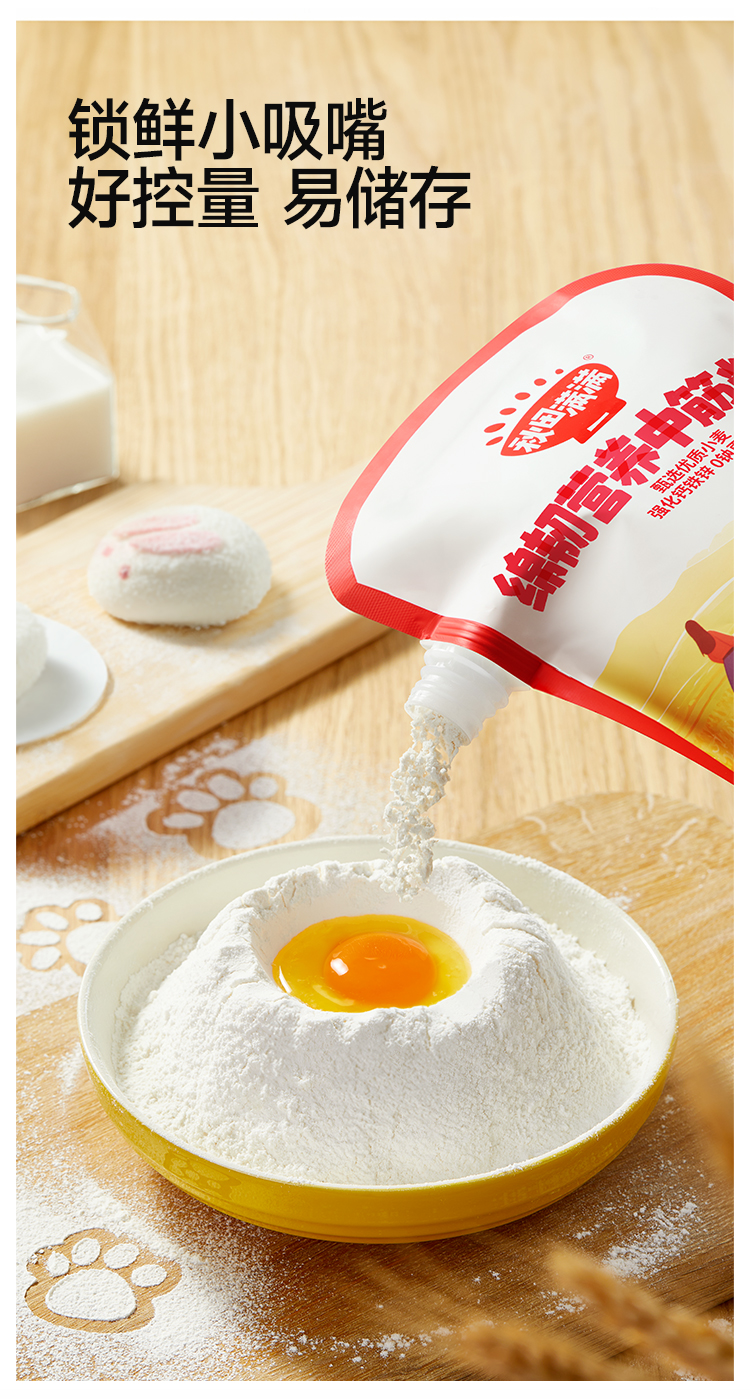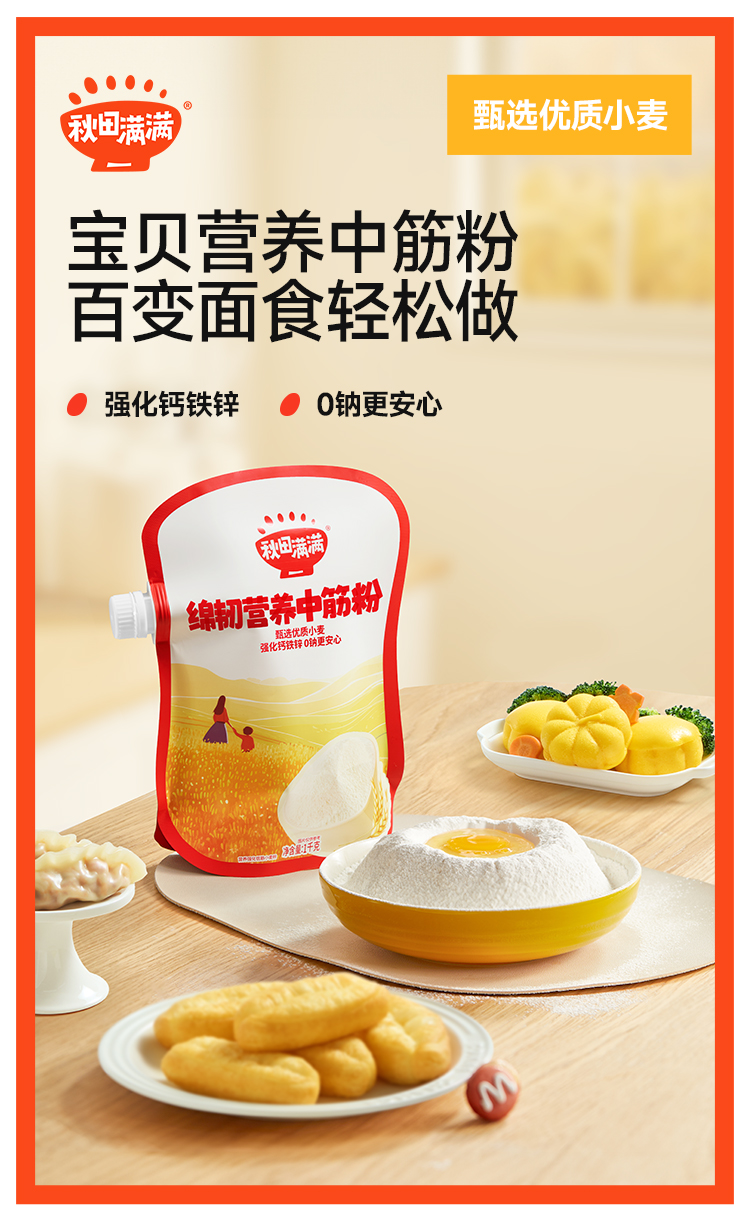 秋田满满软白营养低筋粉1kg袋装/绵韧营养中筋粉1kg 3岁+