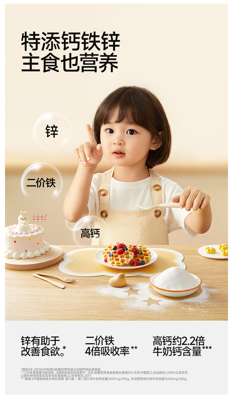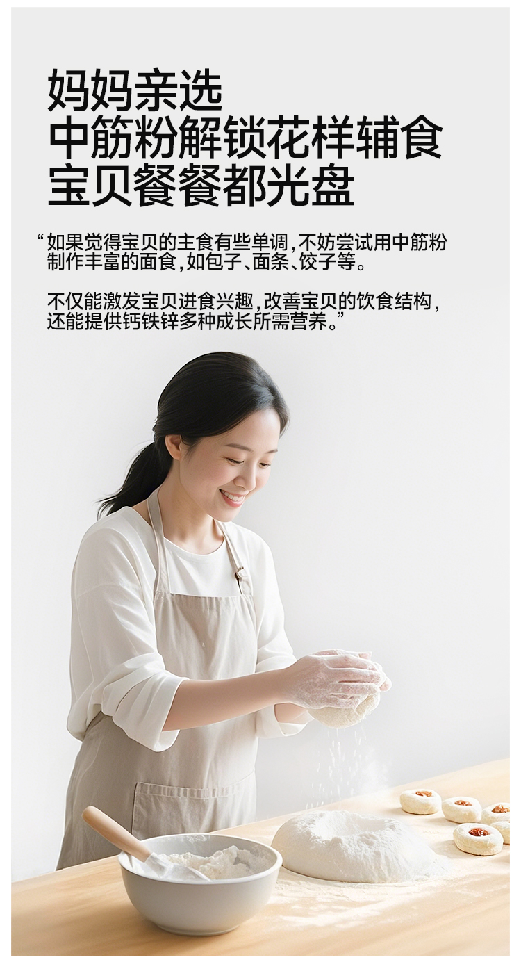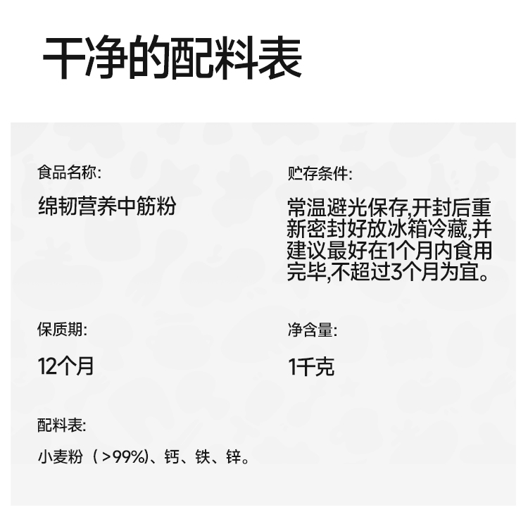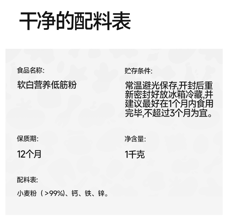 秋田满满软白营养低筋粉1kg袋装/绵韧营养中筋粉1kg 3岁+
