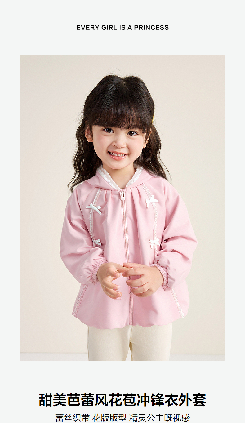 笛莎Deesha 童装女童外套2025秋新款女童甜美芭蕾风花苞冲锋衣外套