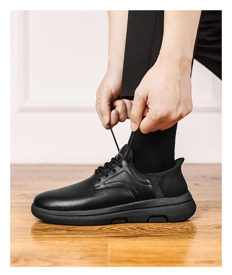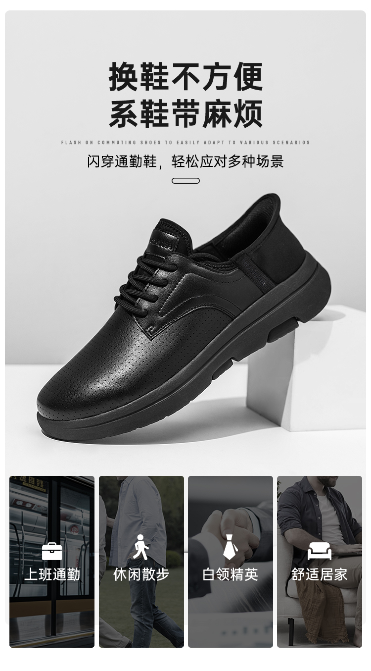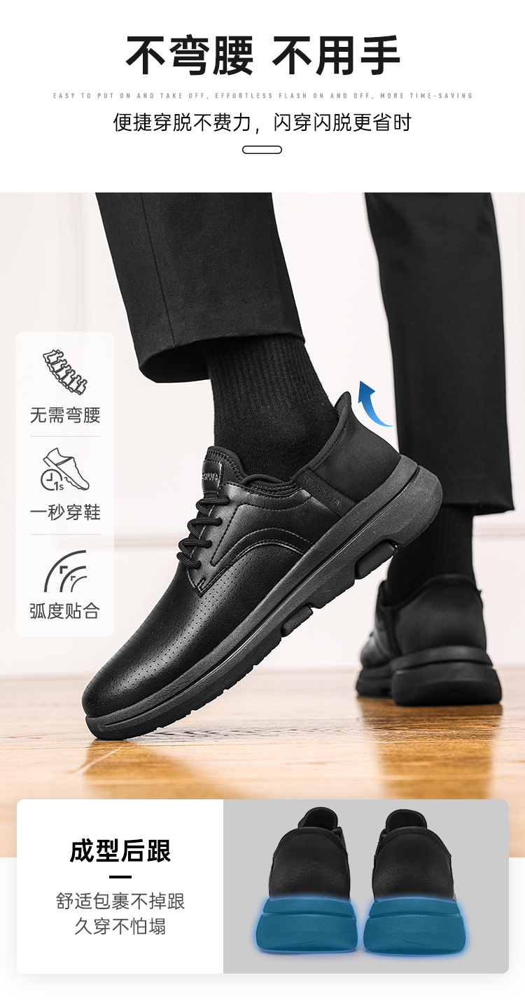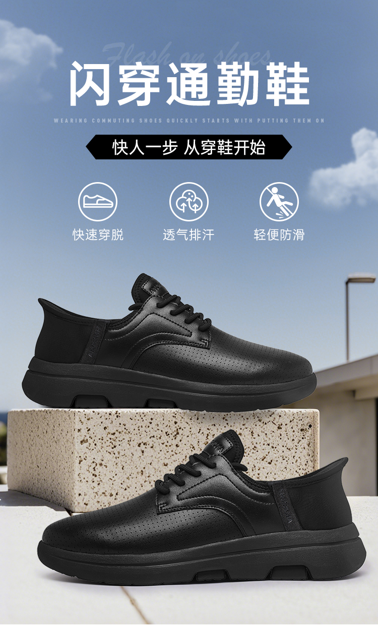 【实付满399送保温杯】【蜀黍家闪穿通勤鞋】轻便透气运动皮鞋一脚蹬镂空低帮休闲鞋XT502