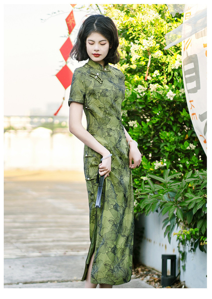 中国风新款优雅气质民族风复古改良旗袍长裙AHM-lyf3006