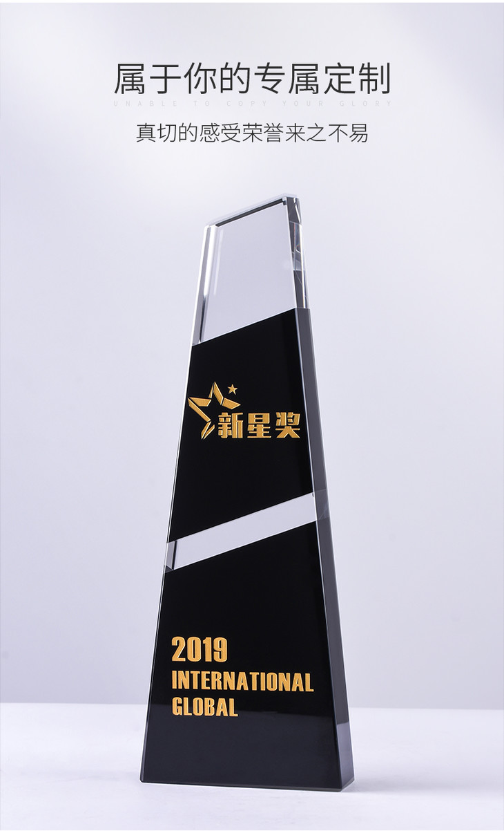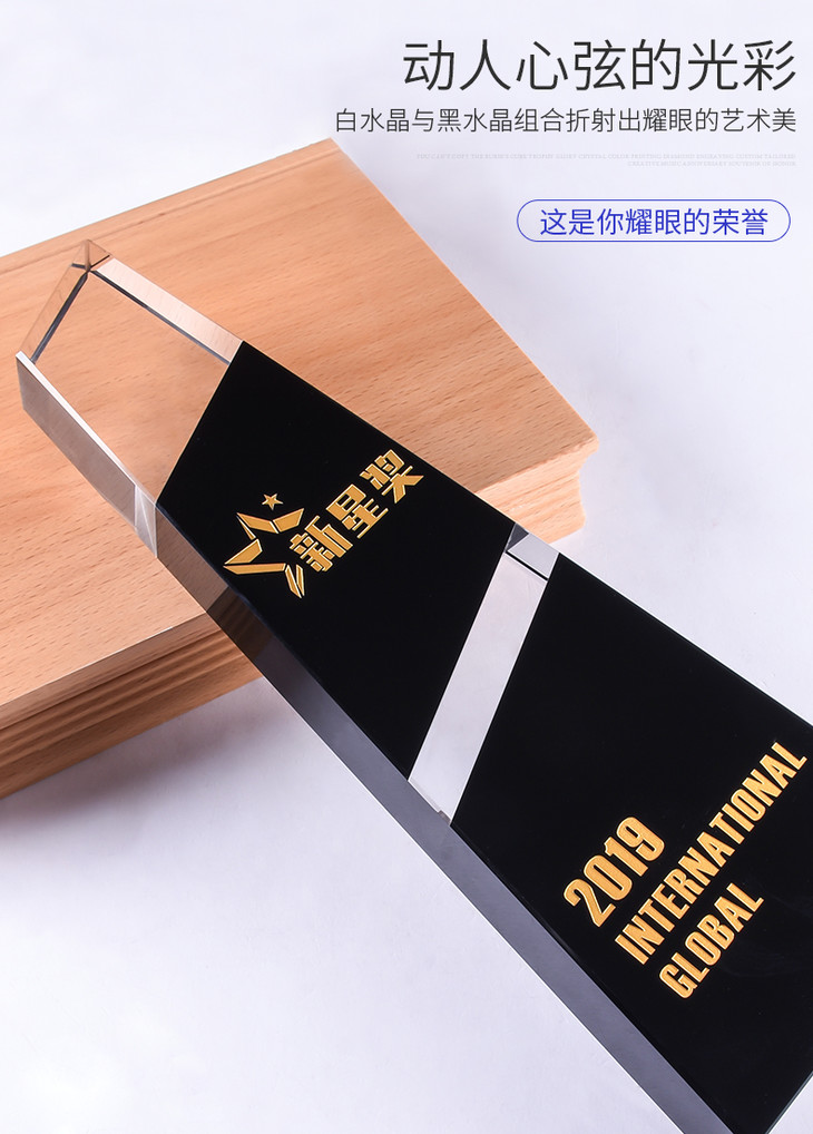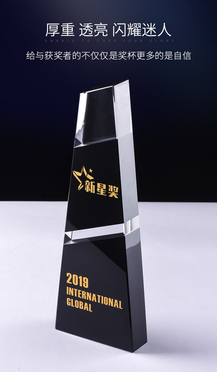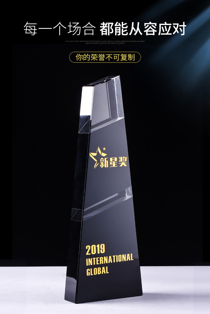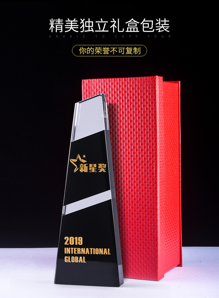 水晶奖杯定制定做企业荣誉黑色拼接梯形奖牌刻字颁奖纪念礼品制作