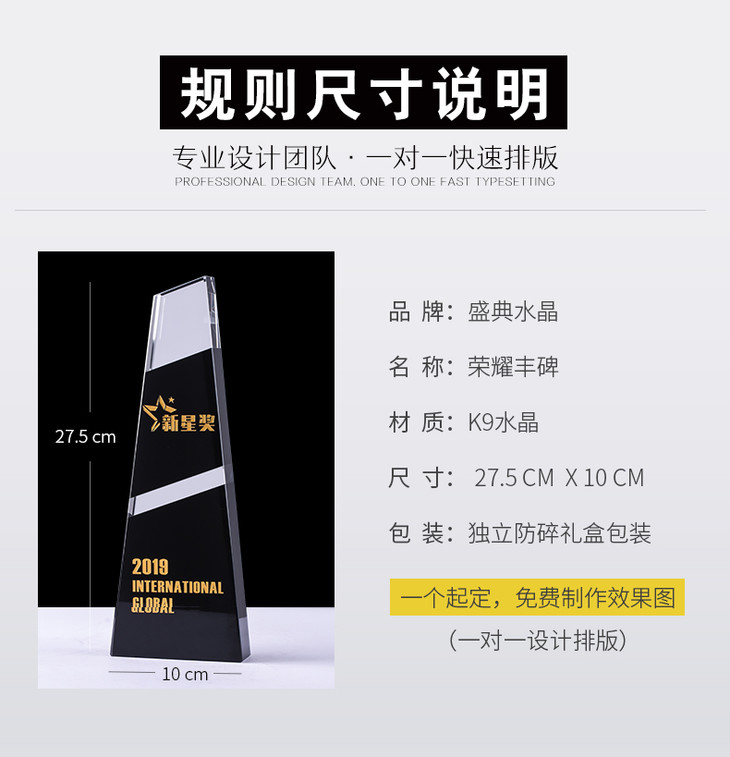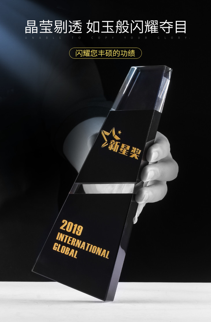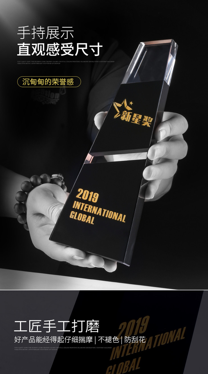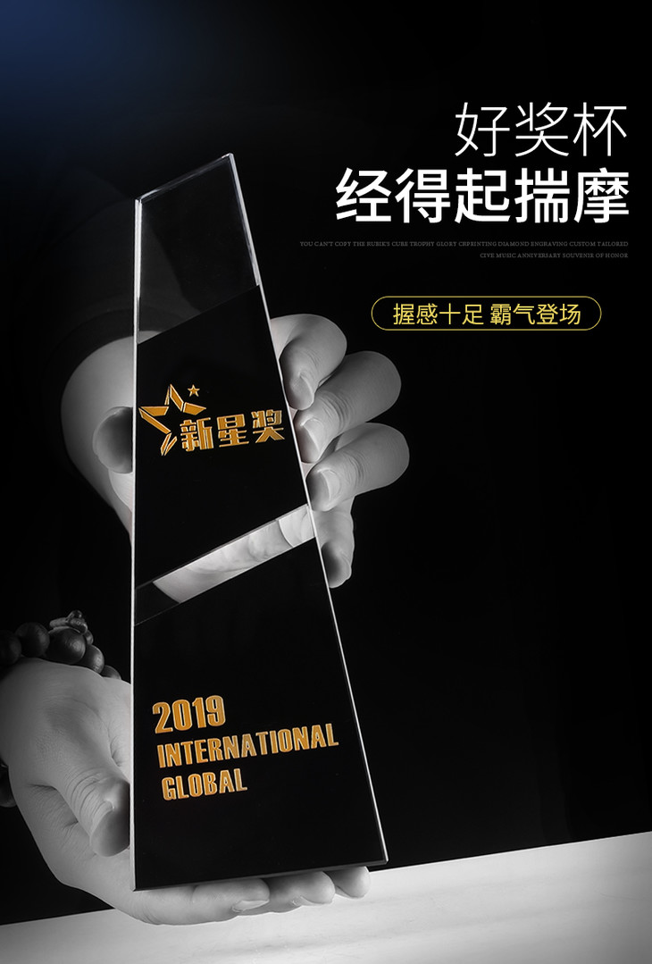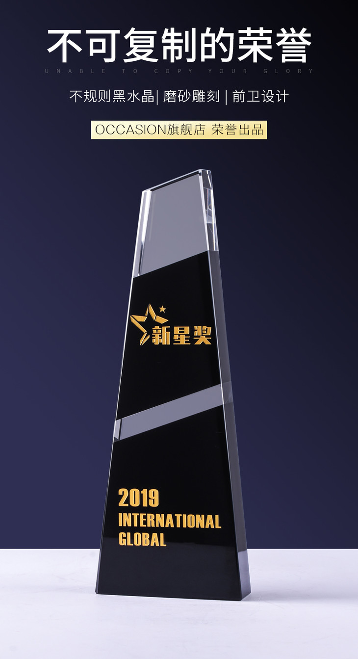 水晶奖杯定制定做企业荣誉黑色拼接梯形奖牌刻字颁奖纪念礼品制作