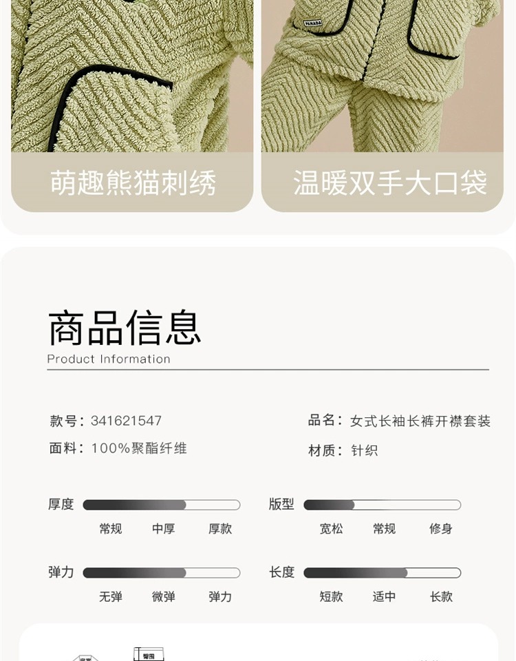 康妮雅女式长袖长裤开襟套装 53G62T035