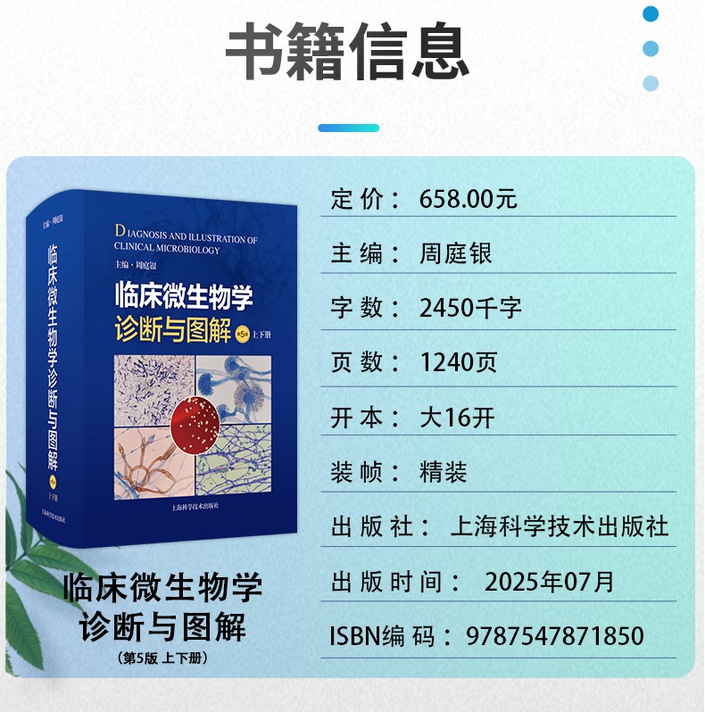 (全2册)临床微生物学诊断与图解(第5五版 上下册)周庭银 主编 临床微生物诊断参考书籍微生物学9787547871850上海科学技术出版社
