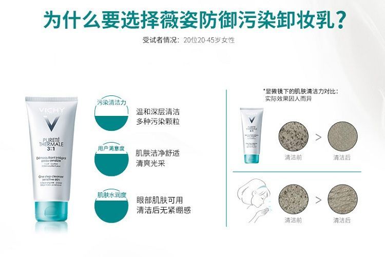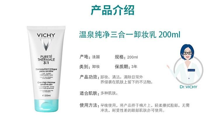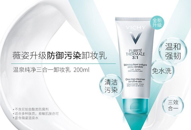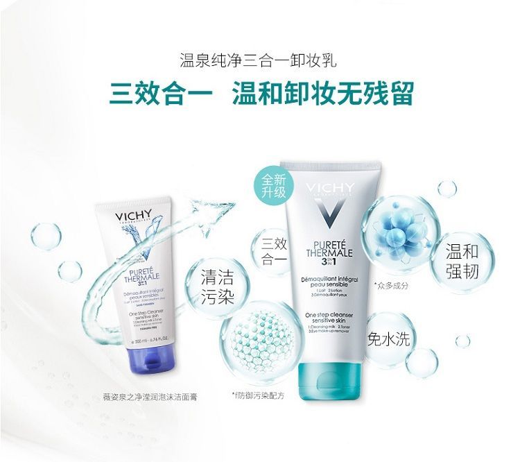 【预售】薇姿温泉纯净三合一卸妆乳100ml温和保湿深层清洁毛孔