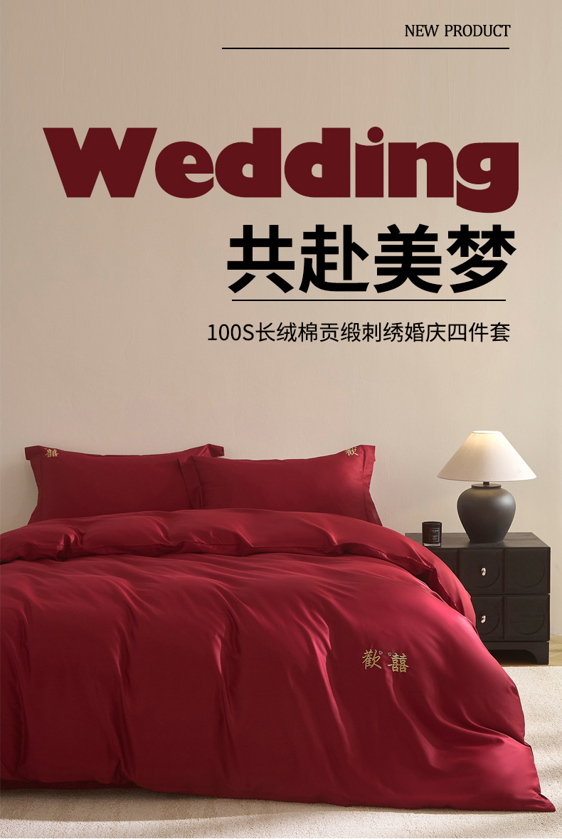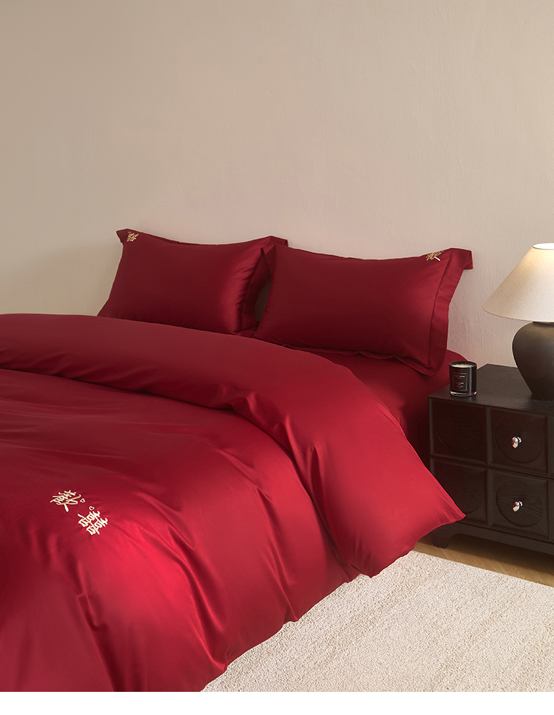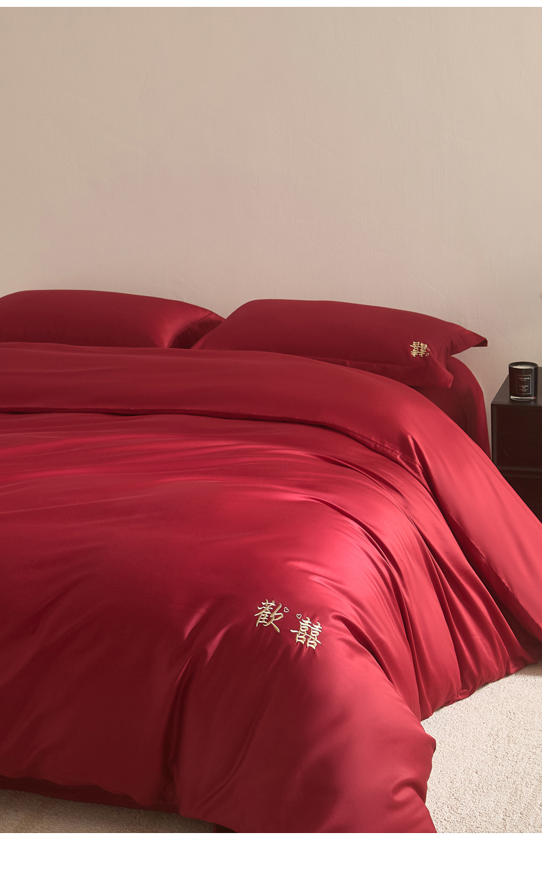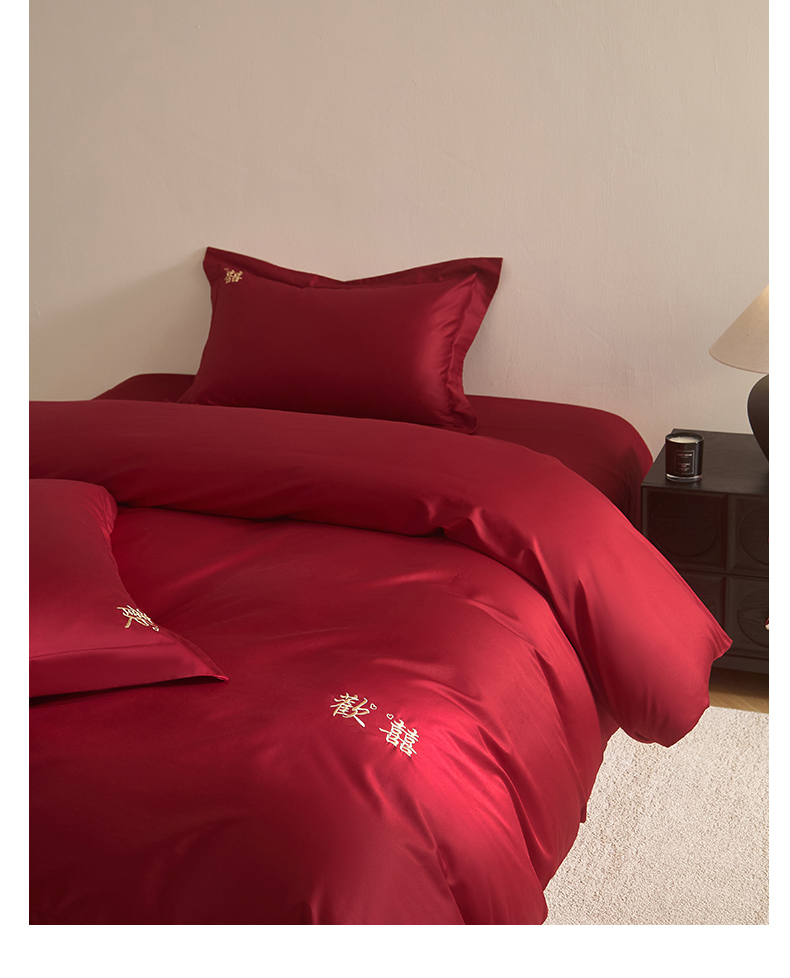 【品牌直发】加倍生活 100支长绒棉贡缎刺绣婚庆四件套-歡囍系列 5色可选