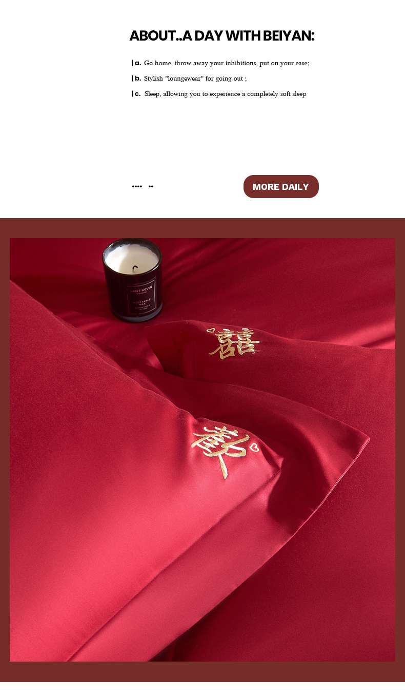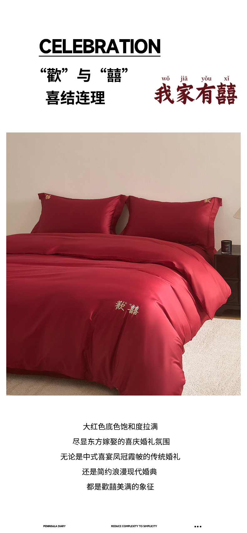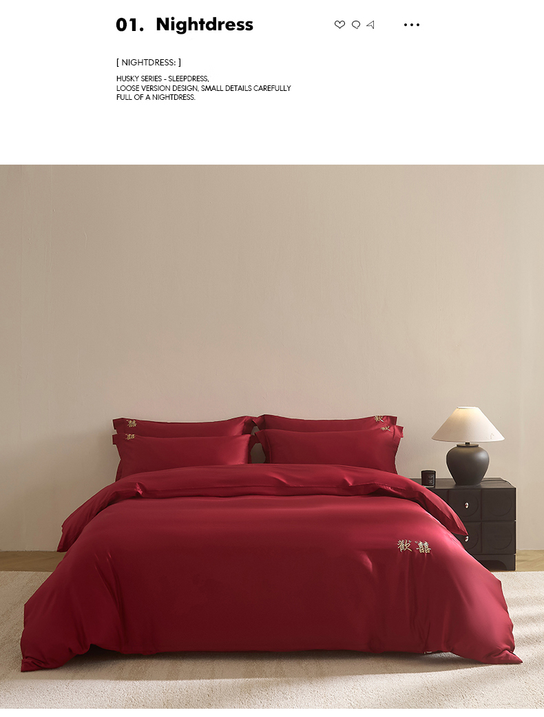 【品牌直发】加倍生活 100支长绒棉贡缎刺绣婚庆四件套-歡囍系列 5色可选