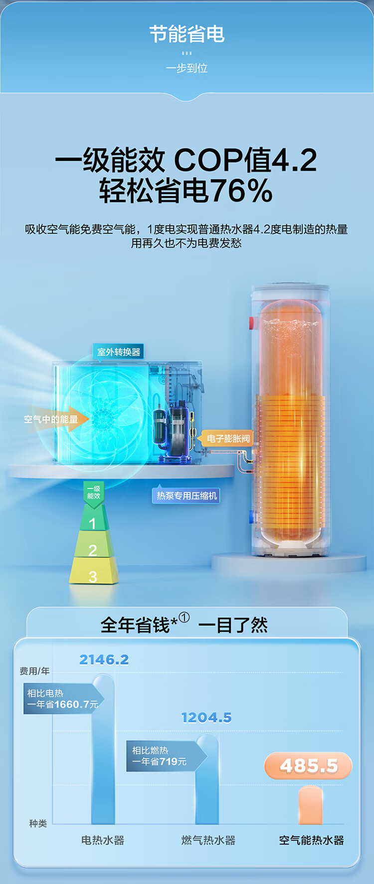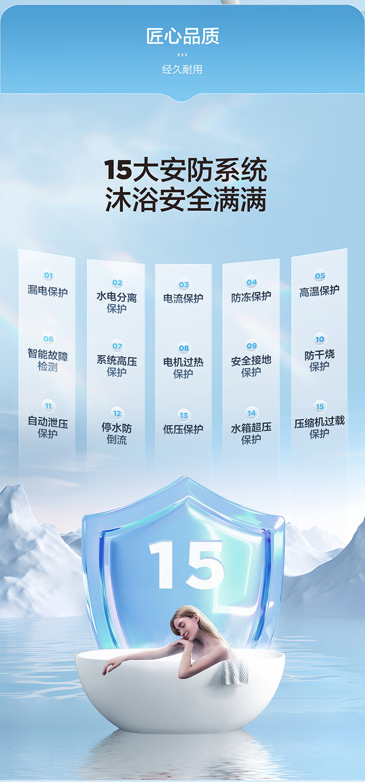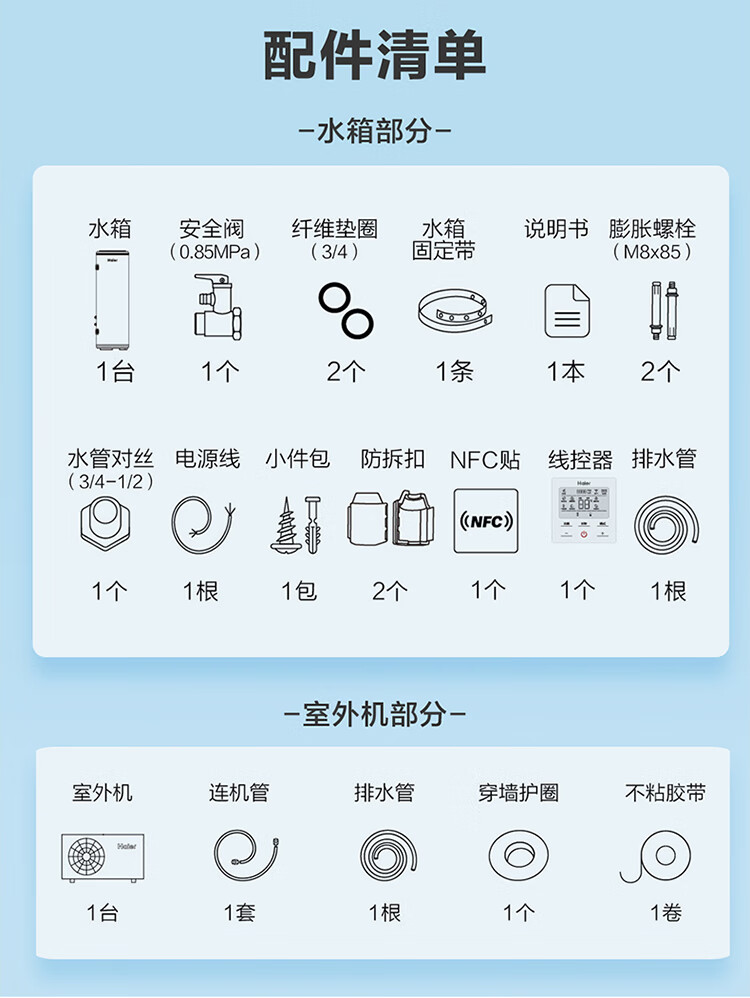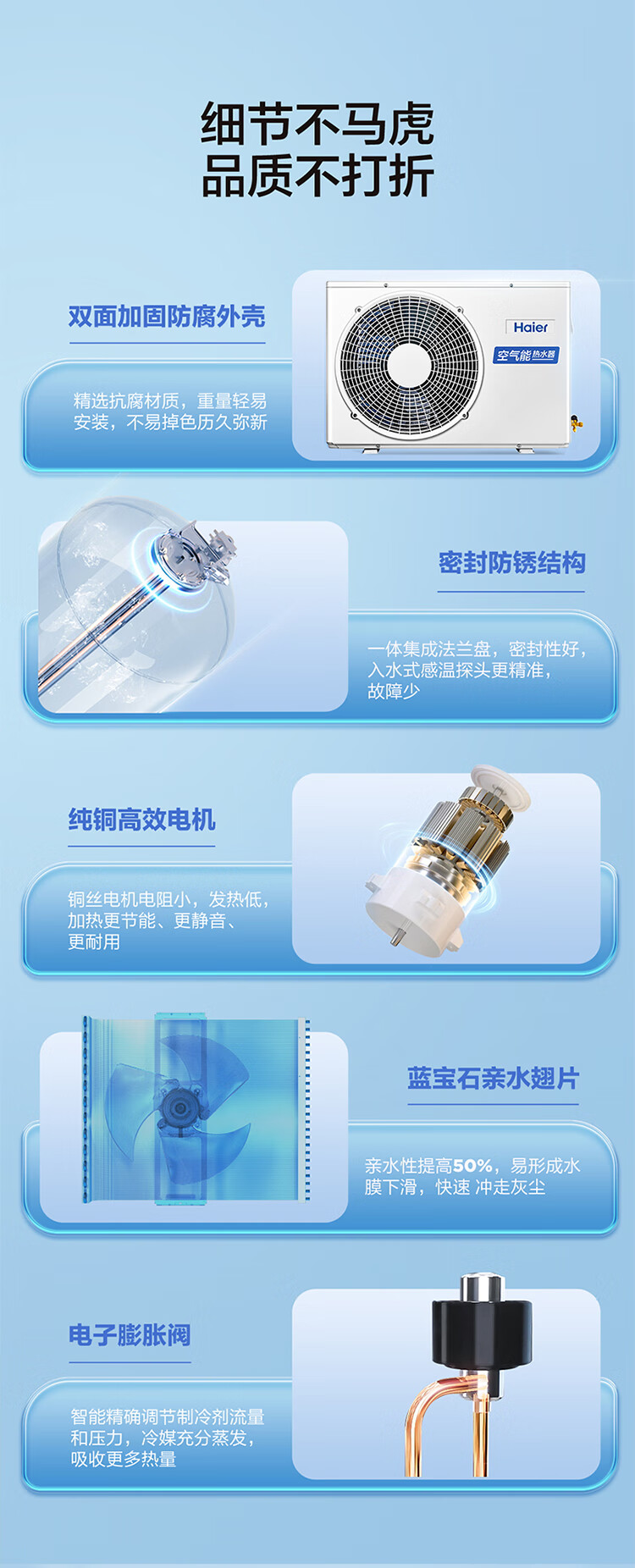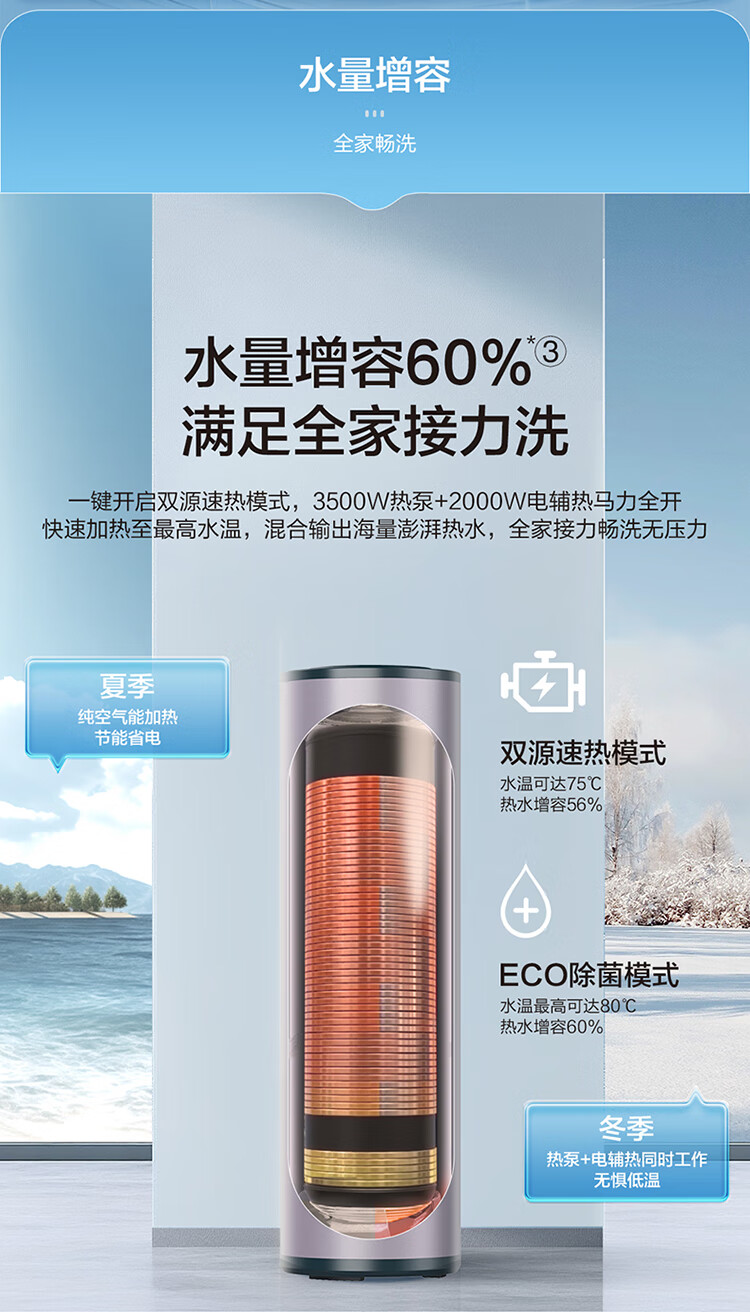 海尔(Haier)空气能热水器200升超一级能效大水量1.5匹电辅80℃高水温R32冷媒多重除菌 KF75/200-AE7CU1