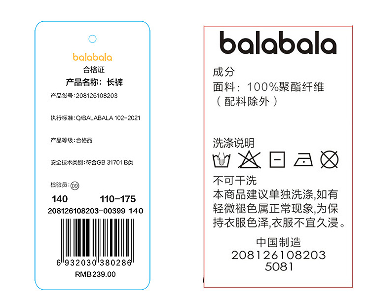 【balaOne】巴拉巴拉童装儿童裤子男女童2025新款春秋宽松束脚裤