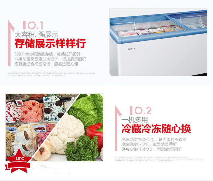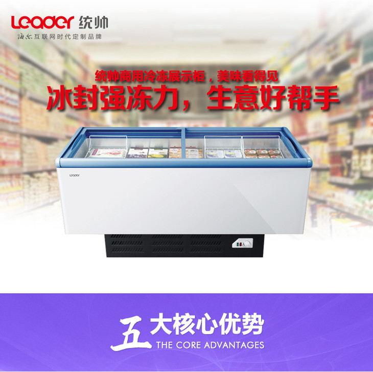 海尔Leader SCSD-565TS冷藏冷冻转换冰柜 商用展示柜 冷冻柜 海鲜柜 岛柜