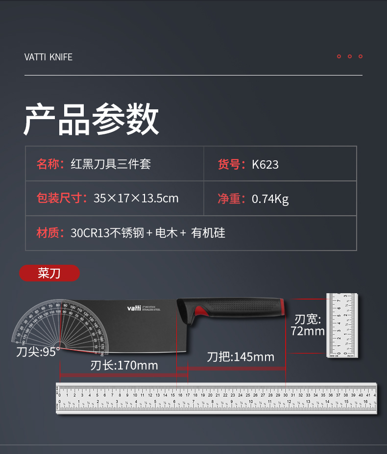 华帝红黑系列刀具三件套K623