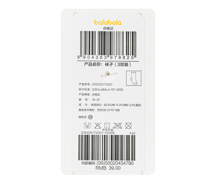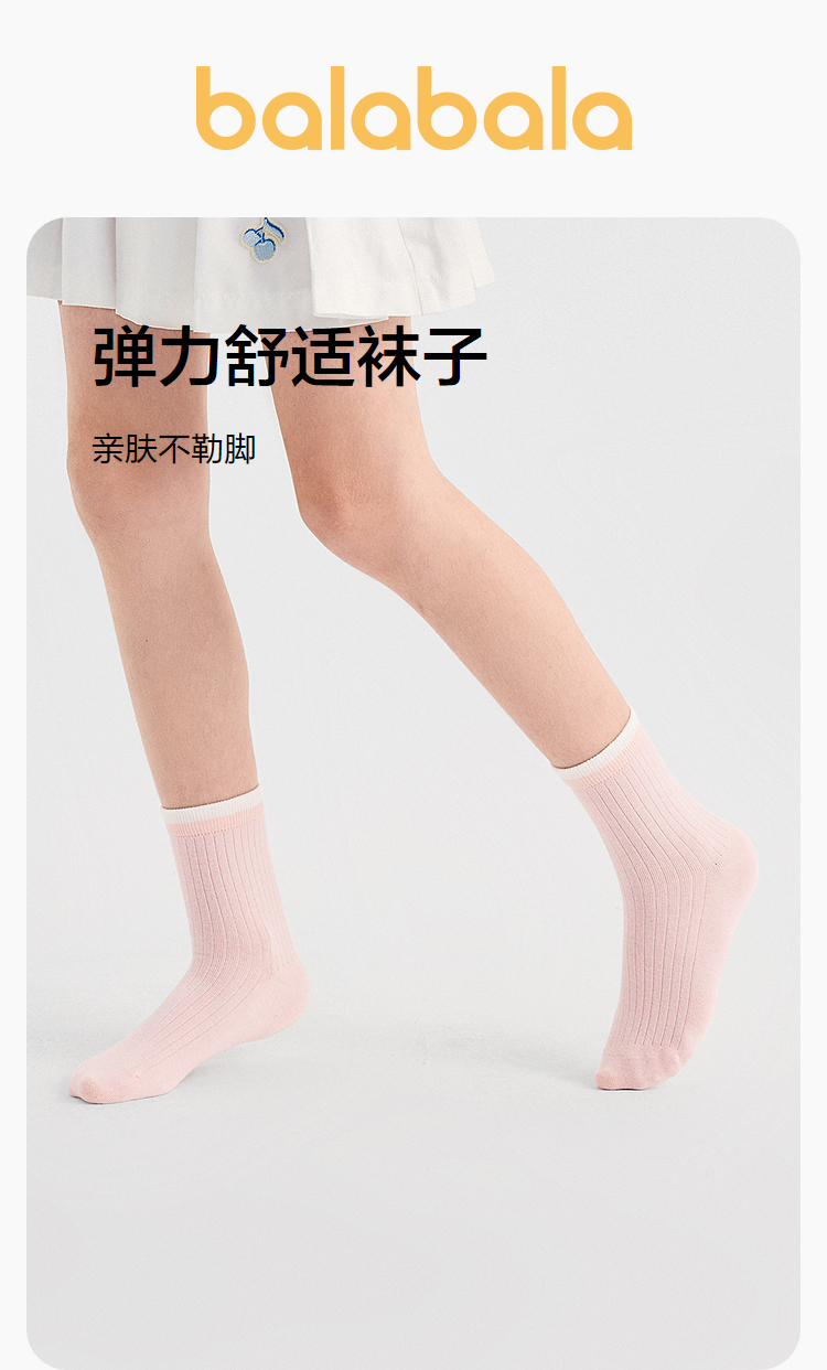 【商场同款】巴拉巴拉女童袜子秋新品儿童中筒袜舒弹不勒脚三双装