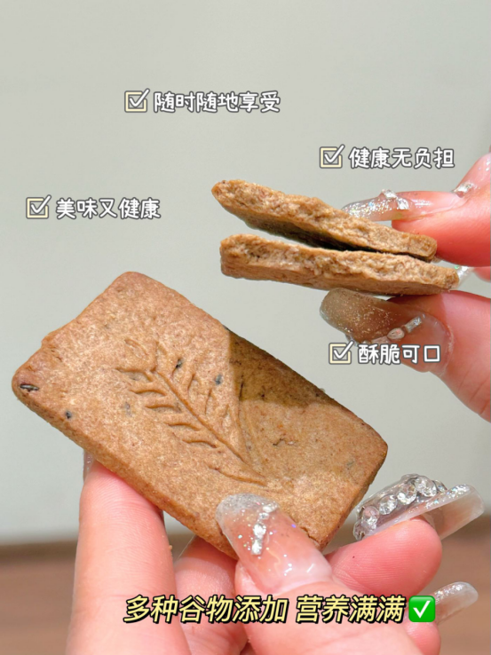 办公室下午茶、健身前垫垫肚子、出门旅游的小干粮😋 无论是作为打工人的下午茶 或者减脂期的解馋零食 又或者控糖期的加餐零食 都很合适!请嘴馋姐妹,直接锁死这个饼干❗❗❗ ✔老人和小朋友都可以吃,多吃几块都没负担 这个超级推荐啊 每片饼干上肉眼可见的满满的黑芝麻粒,超级顶饿。 高蛋白高膳食纤维,感觉又健康了一点,嘿嘿 酥酥脆脆,满嘴谷物浓香!