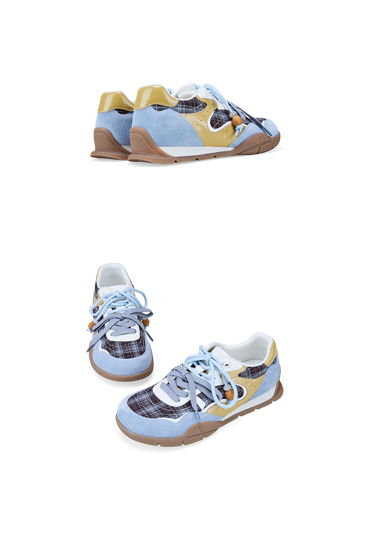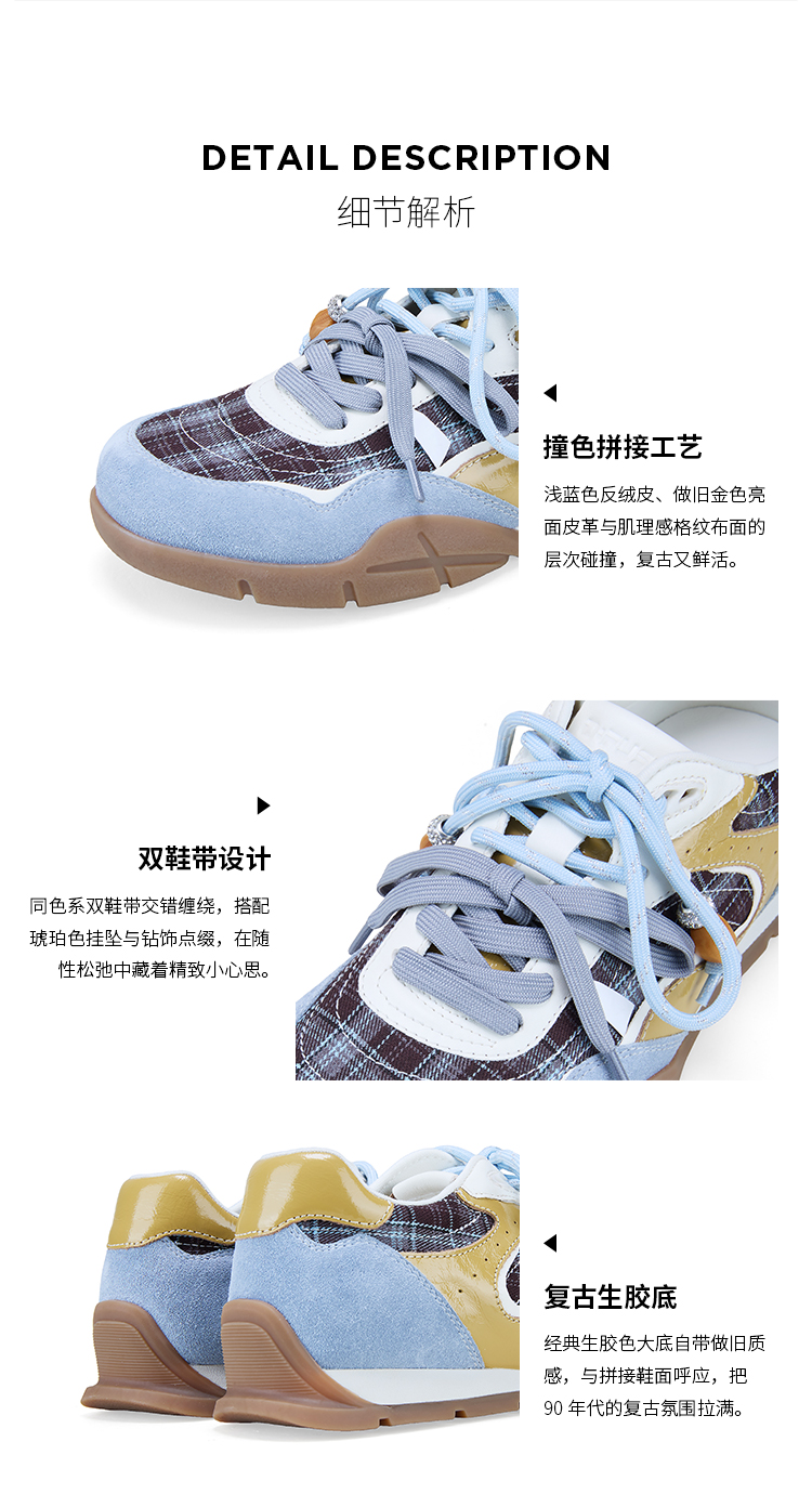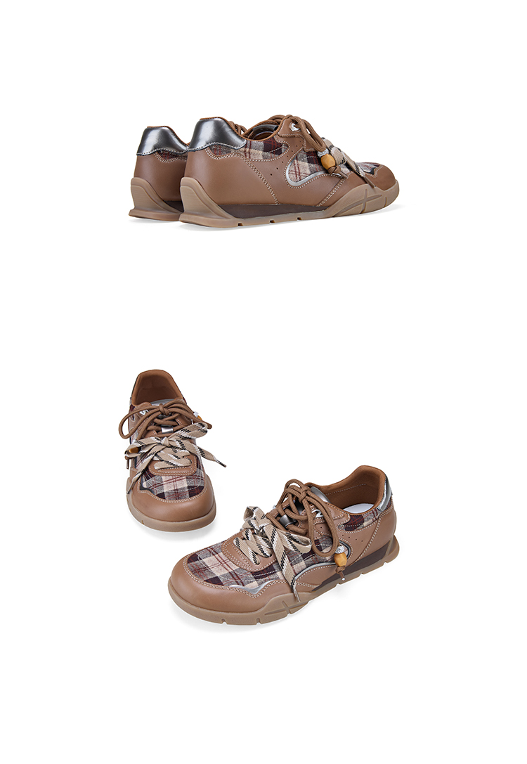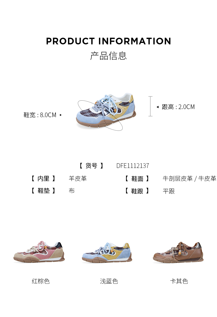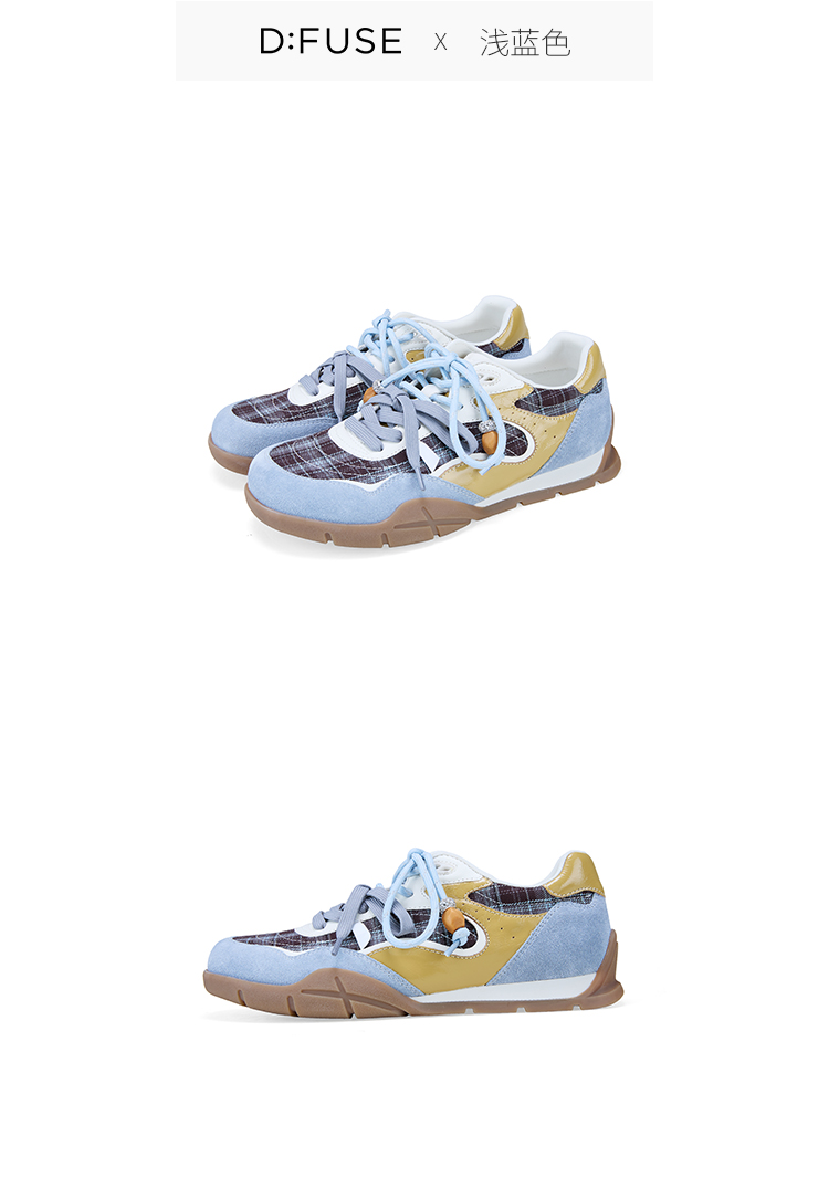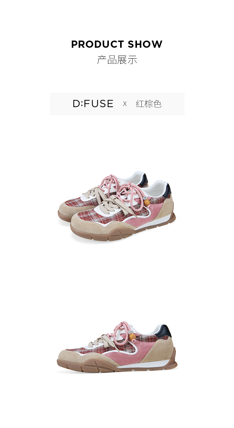 Dfuse迪芙斯2026春季新款反绒皮格纹拼接双鞋带复古德训鞋运动鞋DFE1112137