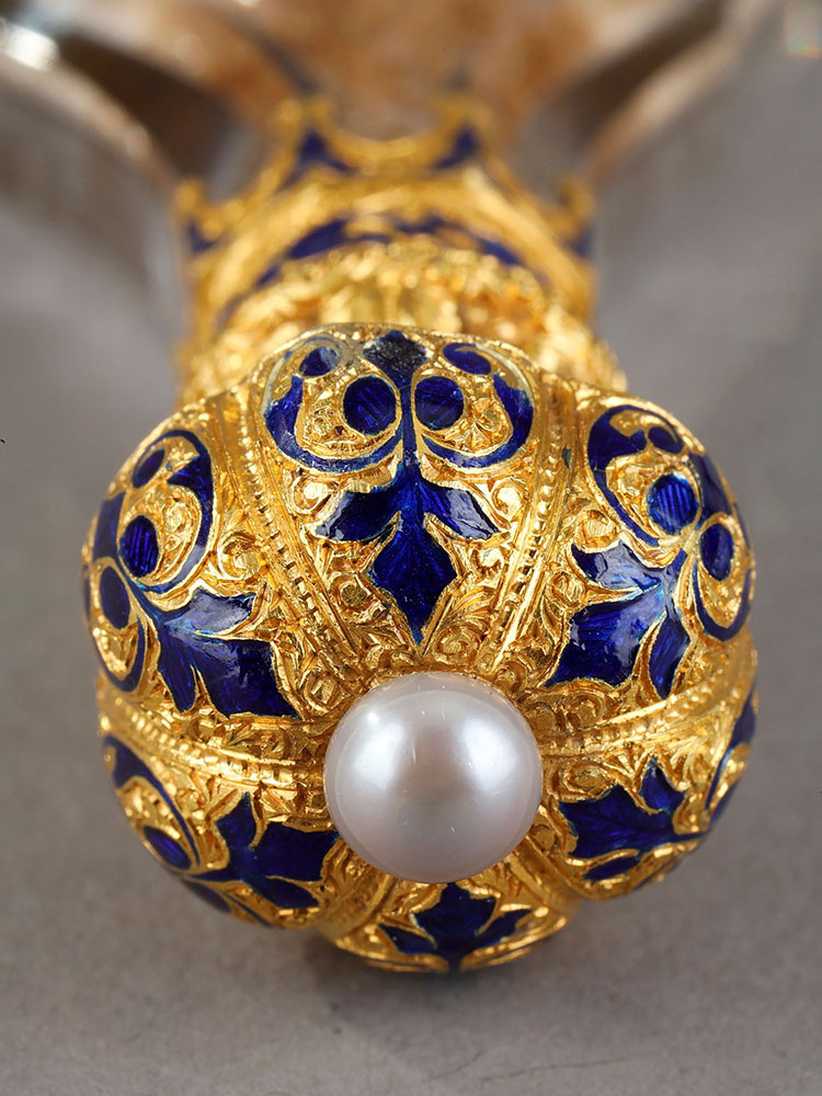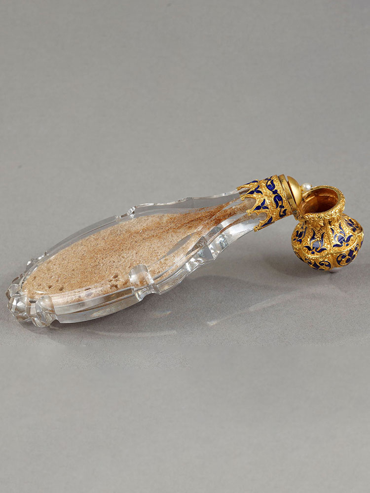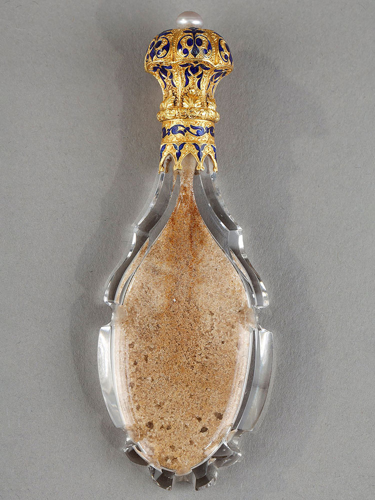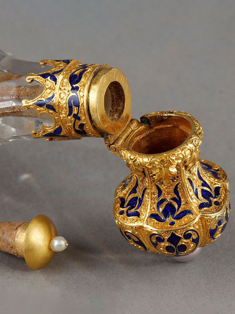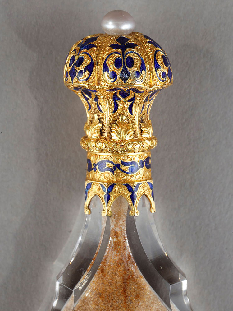 19 世纪中期法国出品珐琅彩绘镶嵌珍珠水晶嗅盐瓶/香水瓶