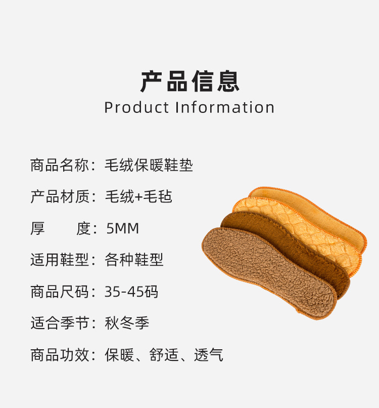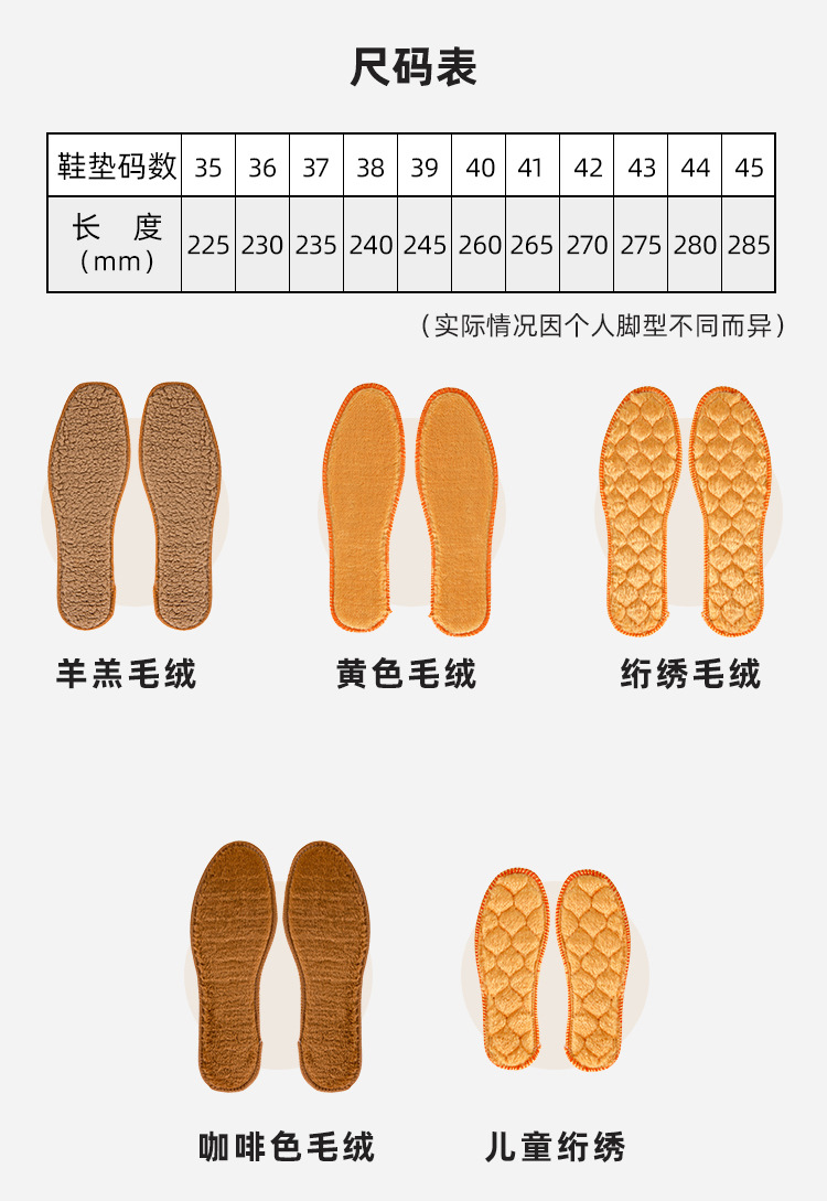 【20双鞋垫】 黄金绒秋冬保暖加厚加绒压花皮毛一体保温吸汗透气鞋垫