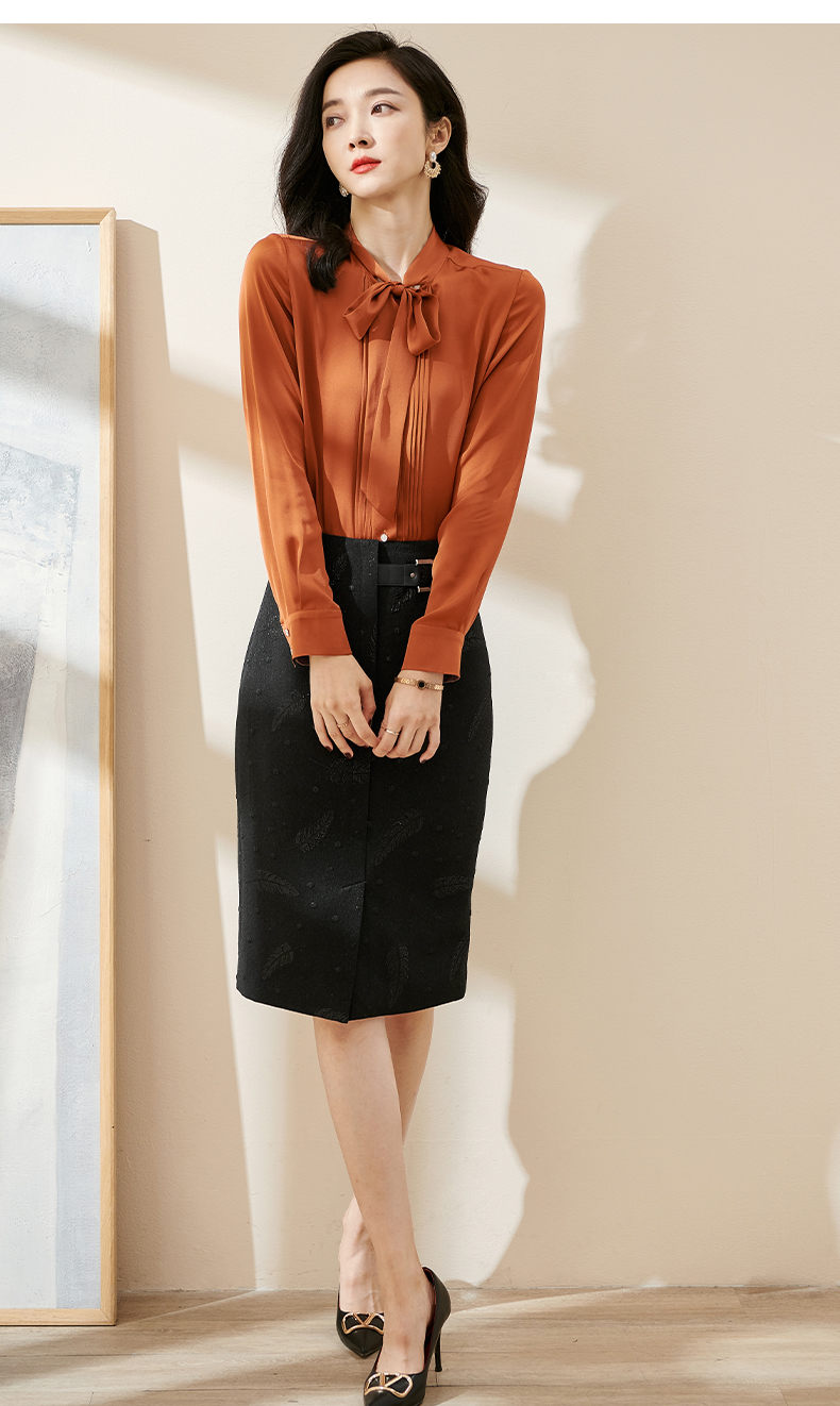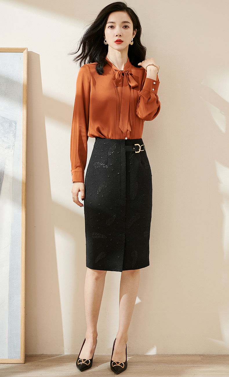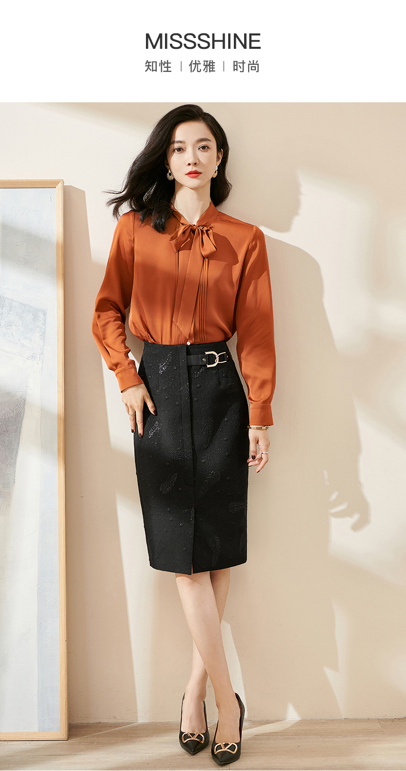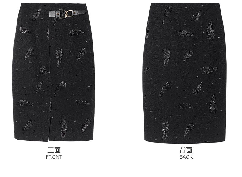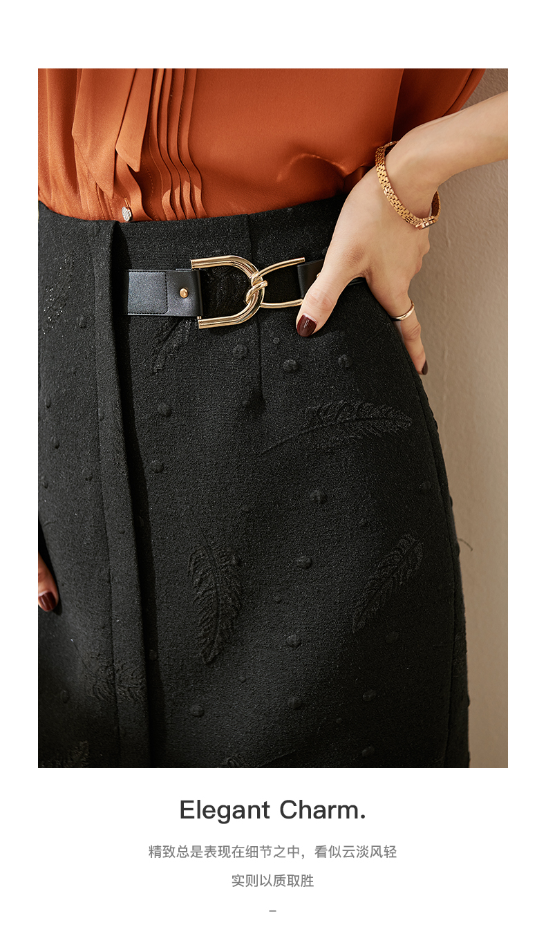 剩S 米思阳2024秋季新款时尚设计感修身显瘦包臀裙提花黑色半身裙0003