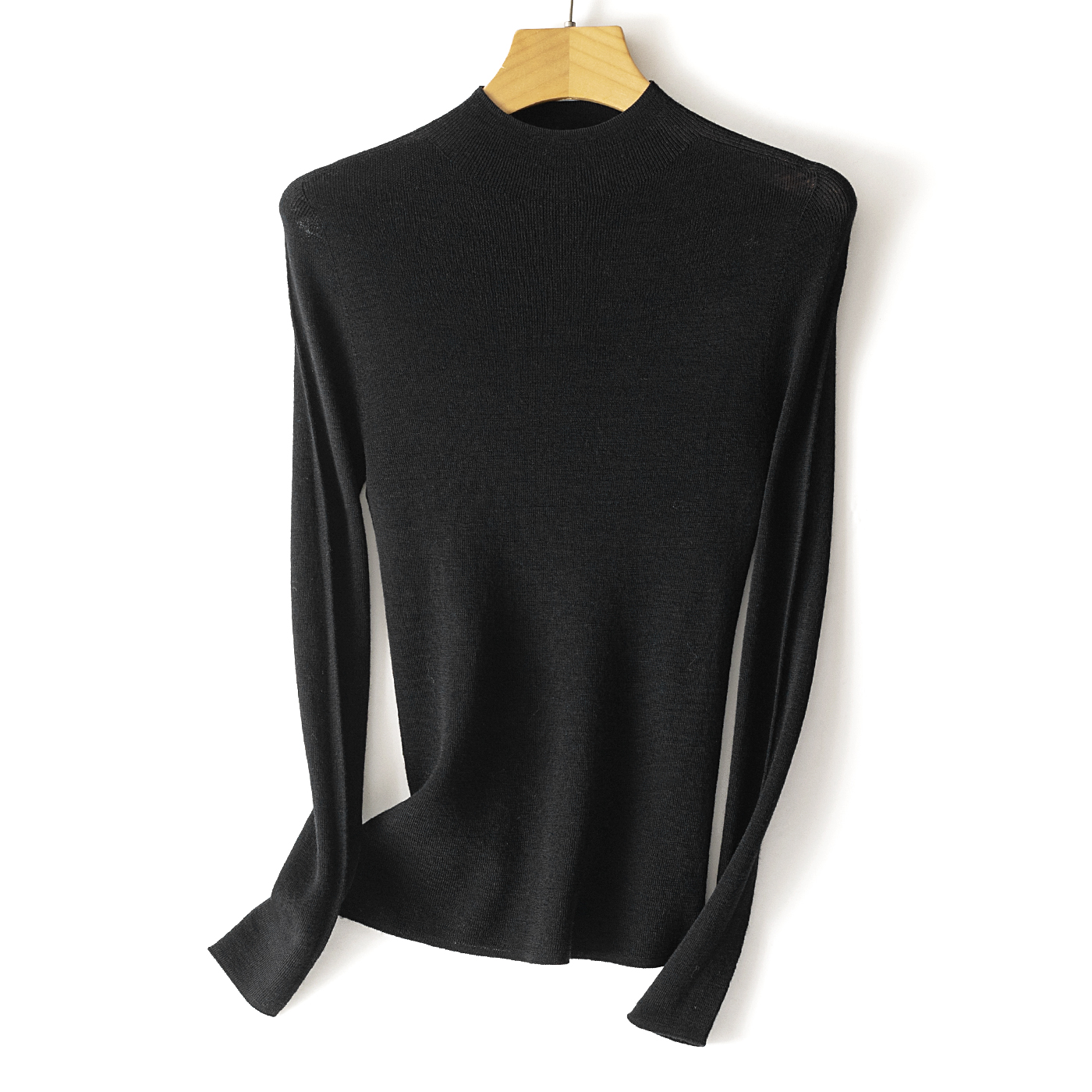 岛津18针无缝一体,针法细腻平整,1*1细坑条弹力衫,高弹力可容纳更大的维度,细腻的纱线使得非常亲肤柔软。
