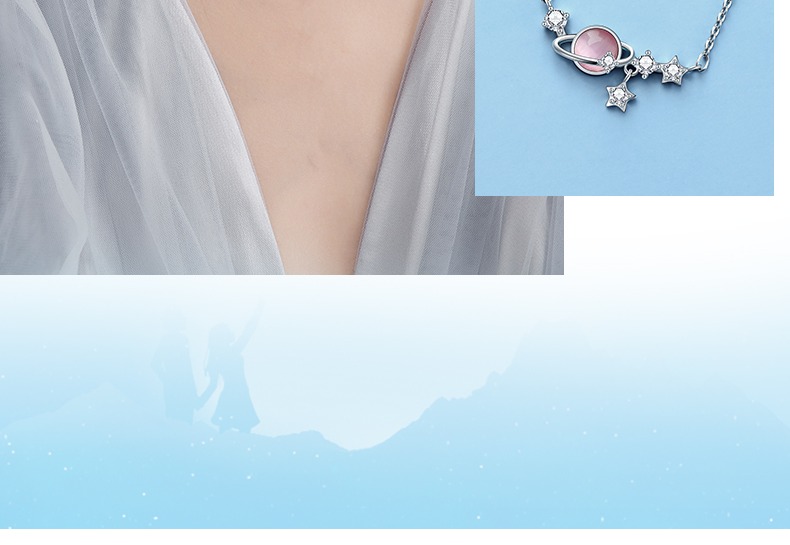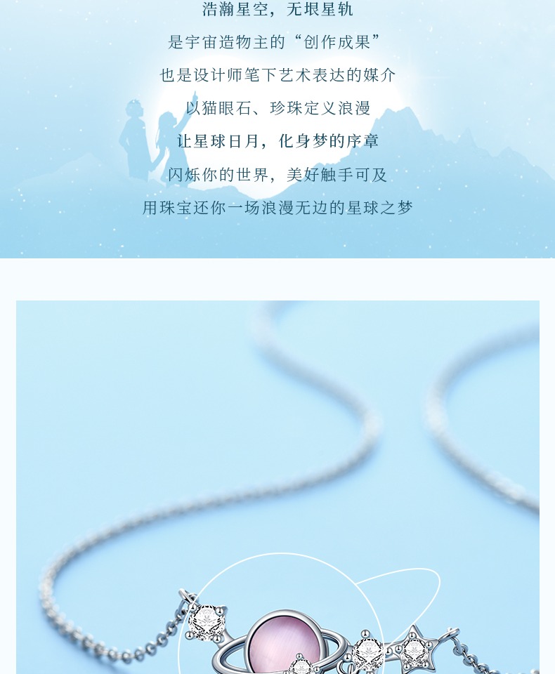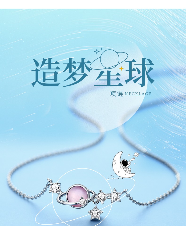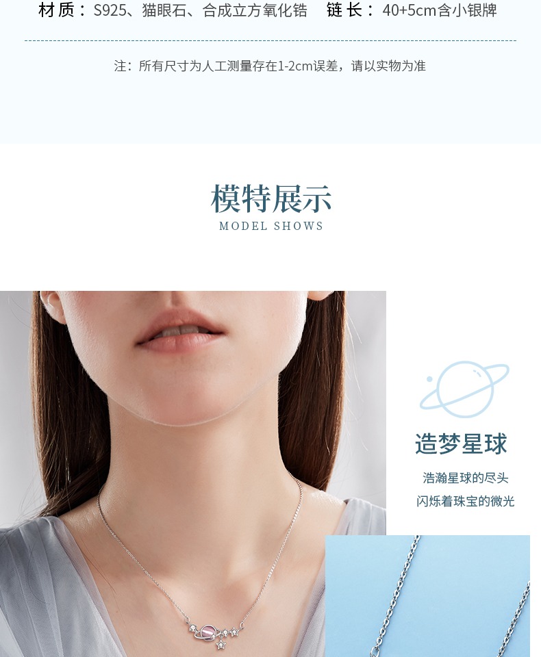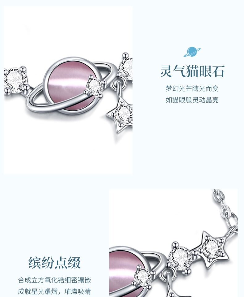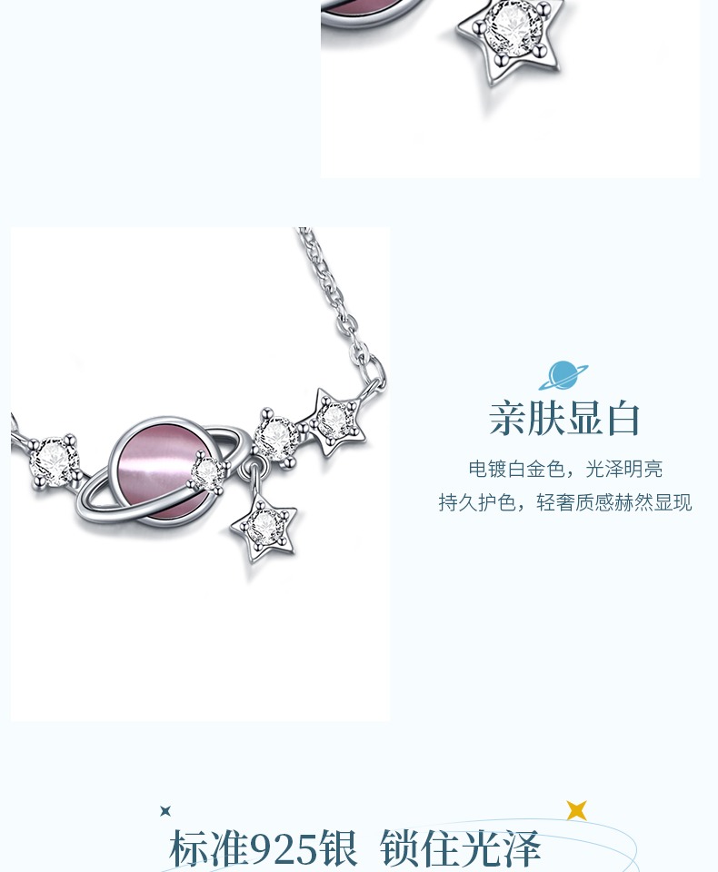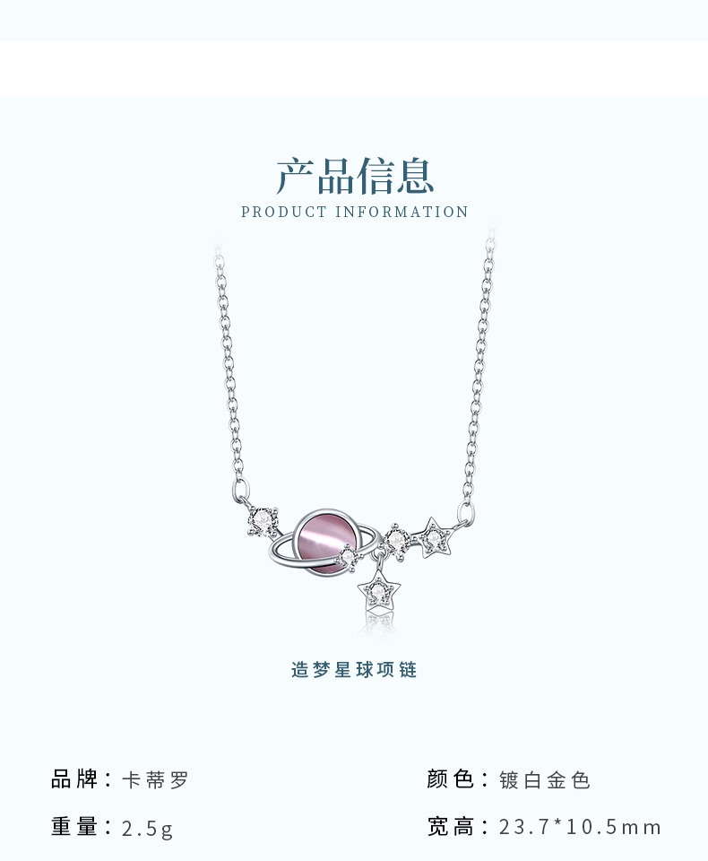 卡蒂罗KADER 造梦星球项链 玻璃猫眼气质锁骨链 白金色个性百搭 星辰大海 项链 女款