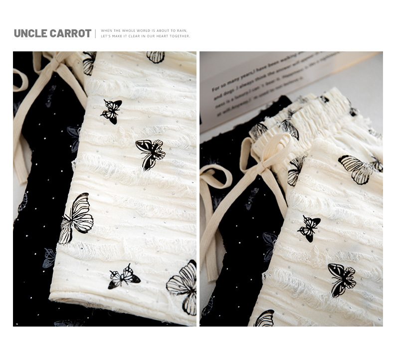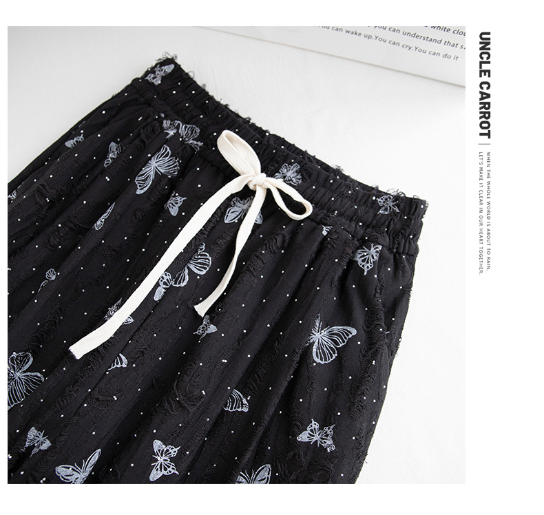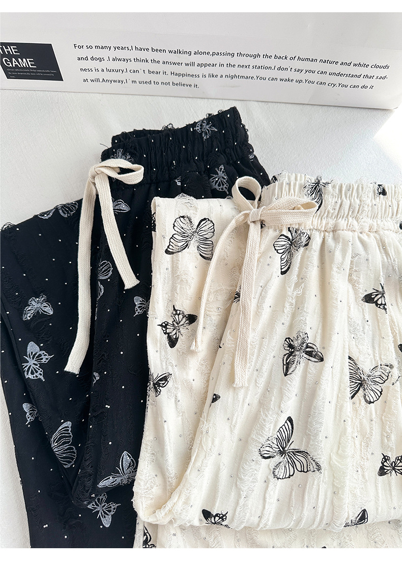 【YW】无忧购新中式蝴蝶阔腿裤女夏季新款高腰垂感宽松慵懒白色破洞直筒裤LB41012(截单后3-5天发货)