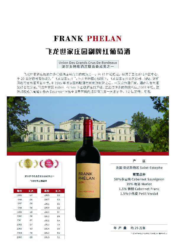 2013 飞龙世家庄园副牌红葡萄酒 Frank Phelan
