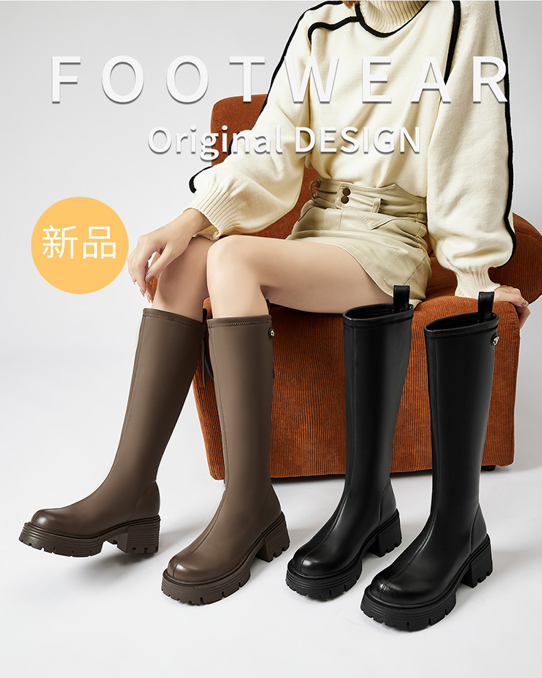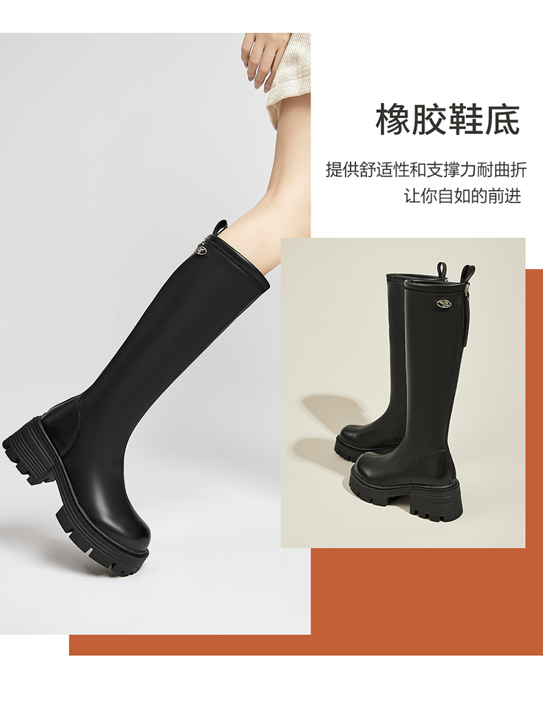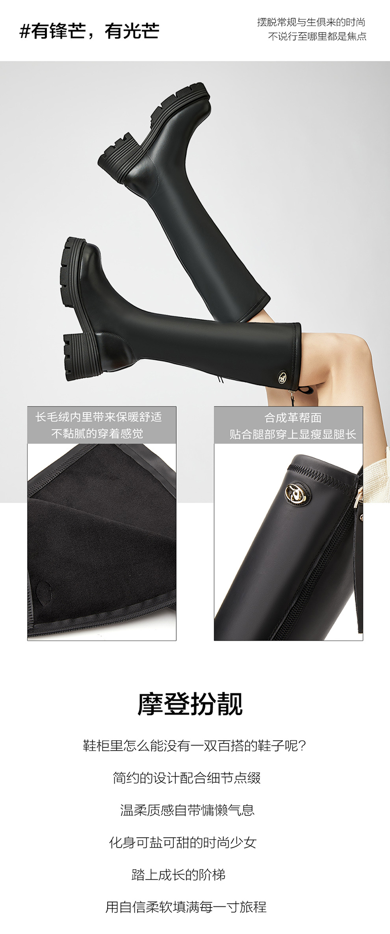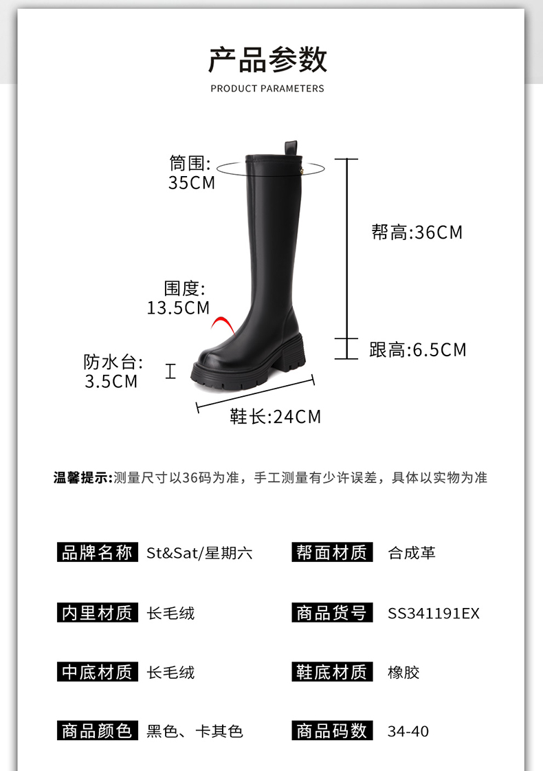 星期六复古擦色鞋头绒里显瘦美腿长靴SS341191EX