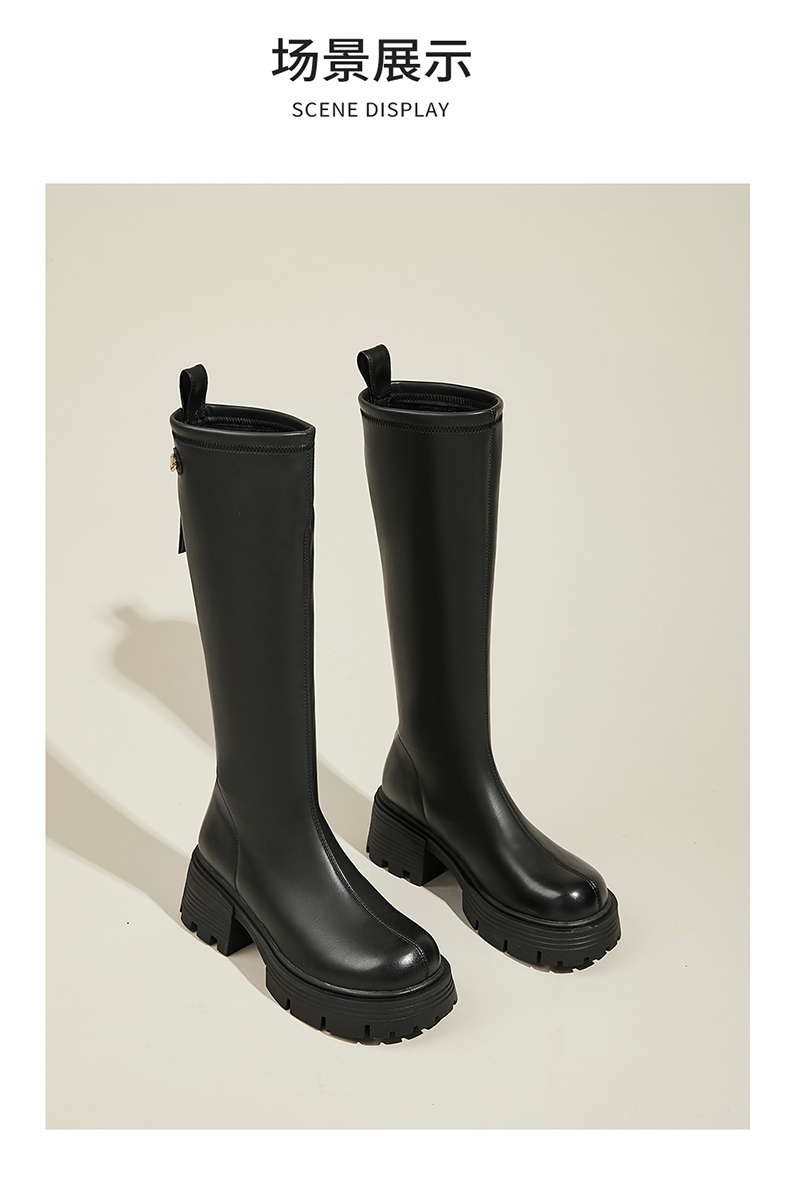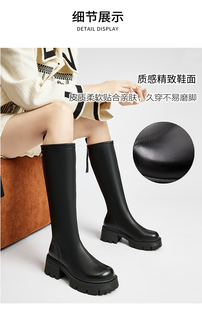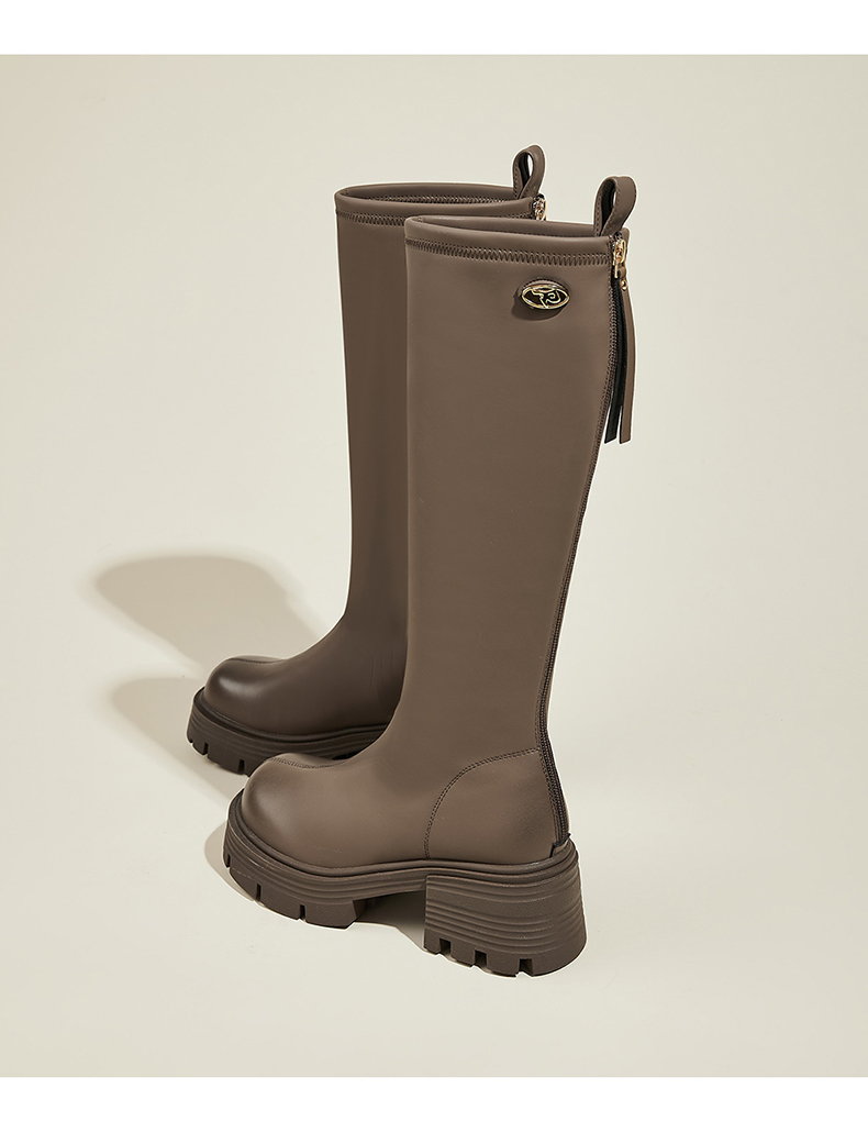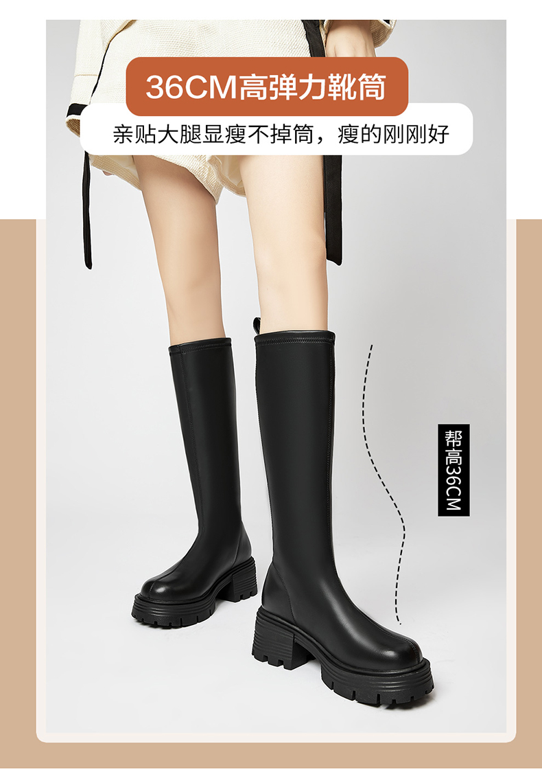 星期六复古擦色鞋头绒里显瘦美腿长靴SS341191EX